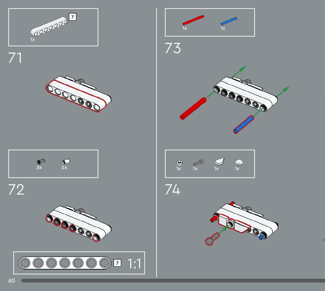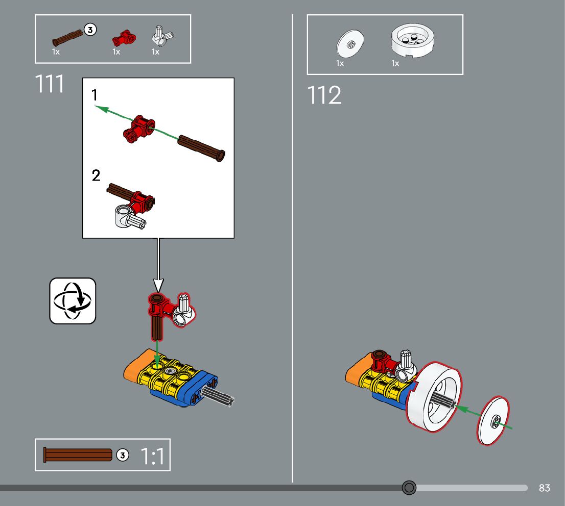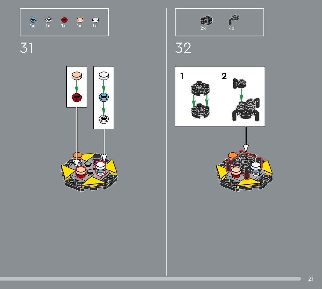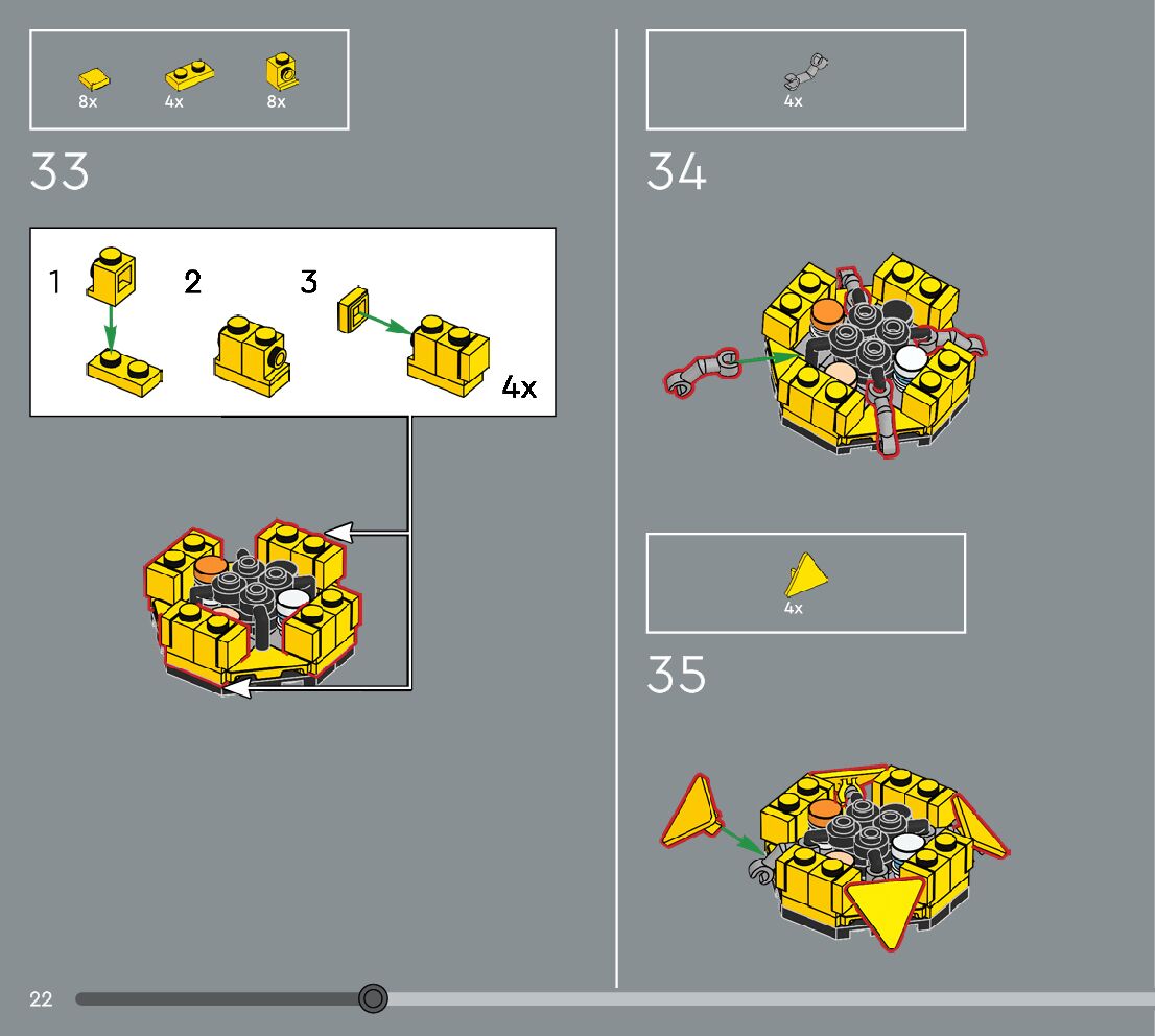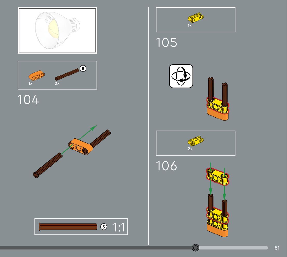 The assembly guide is prepared in a very understandable way for children and adult LEGO enthusiasts. A total of 100 picture galleries are shown, explaining the step-by-step construction stages for 1 different structures.