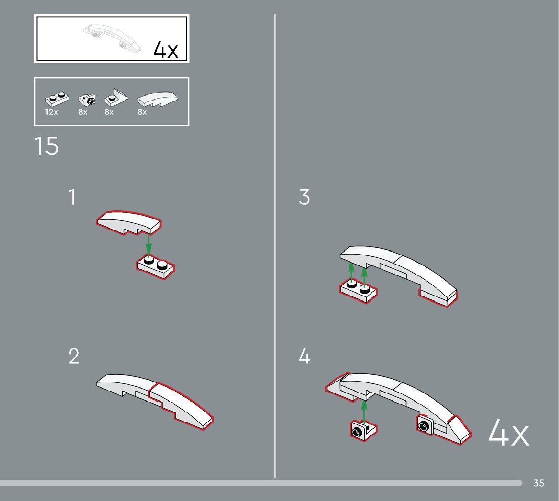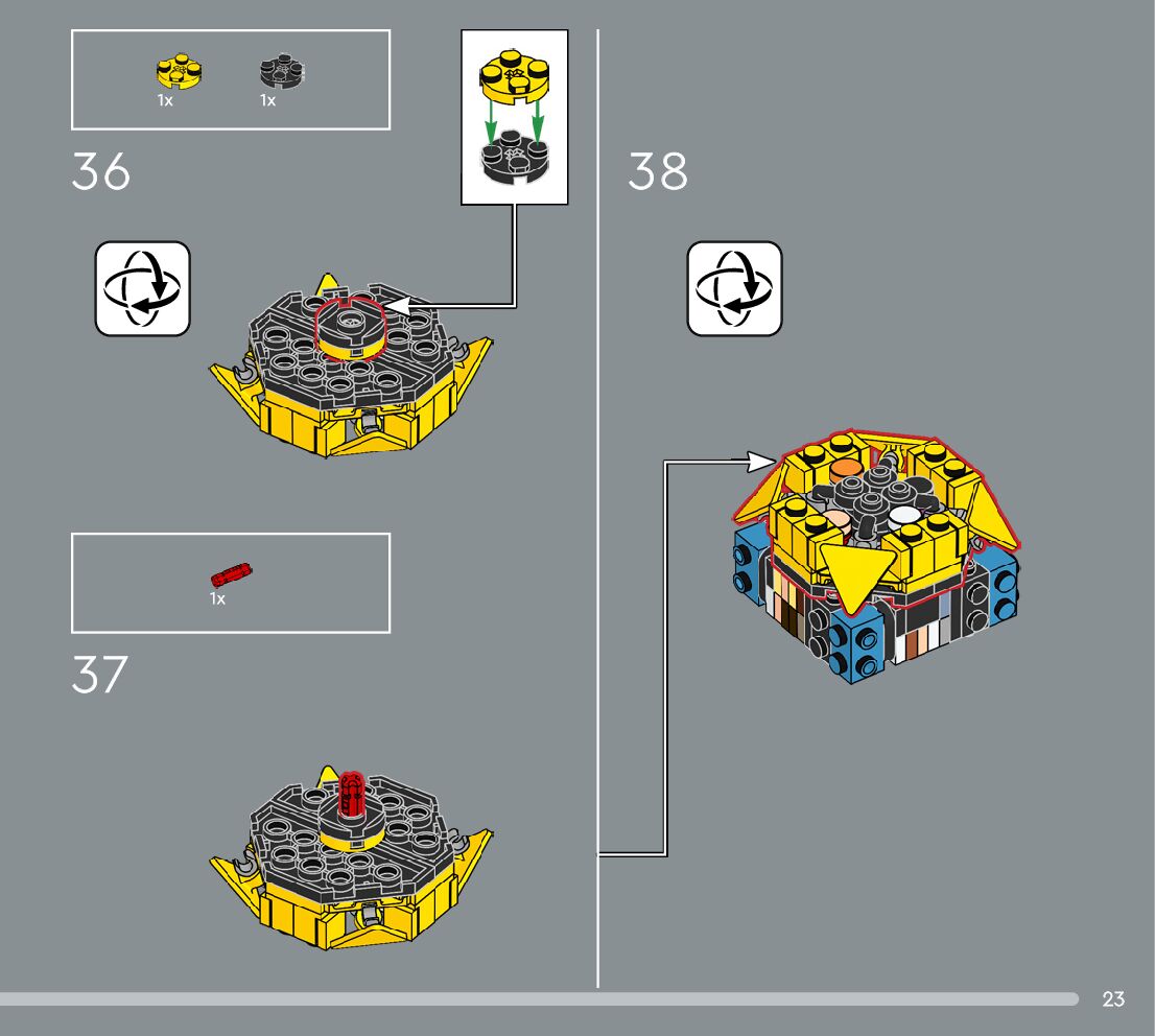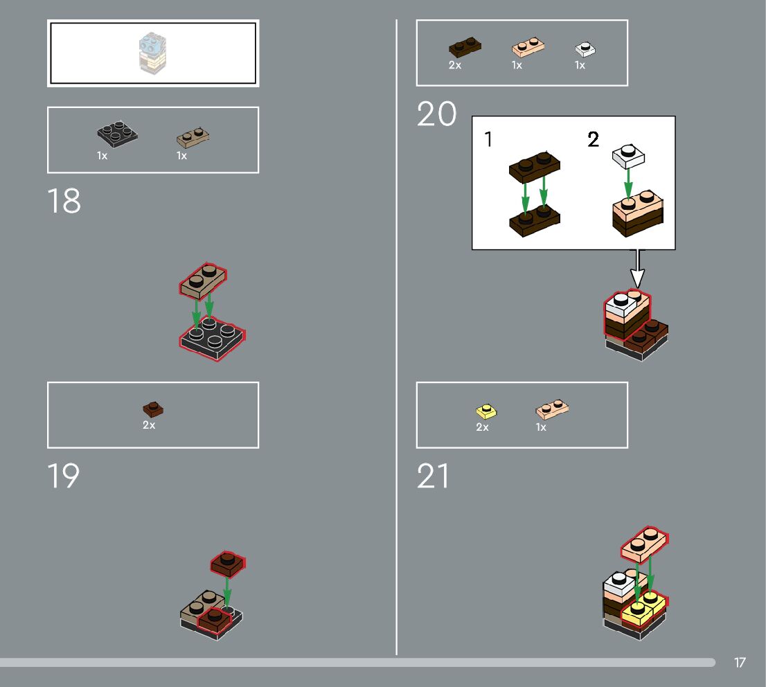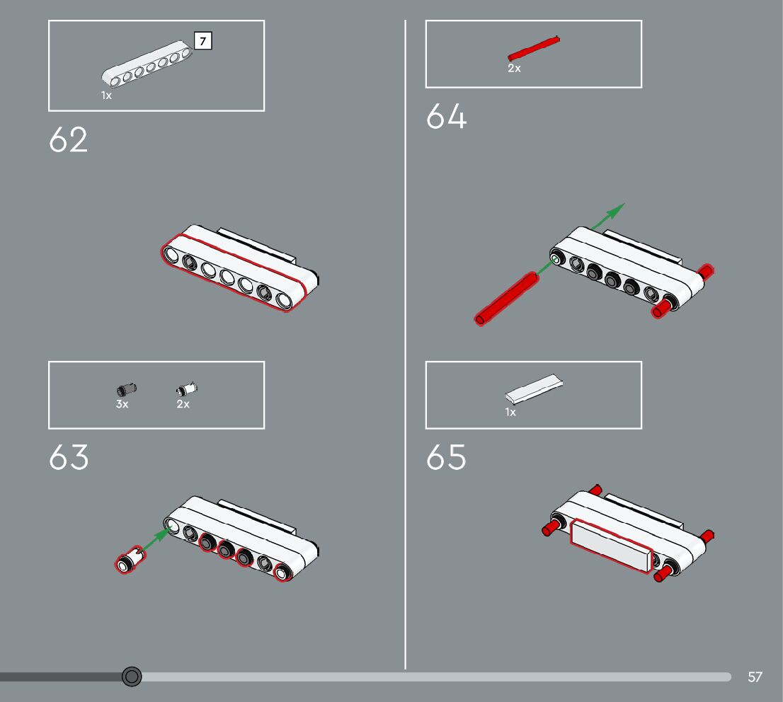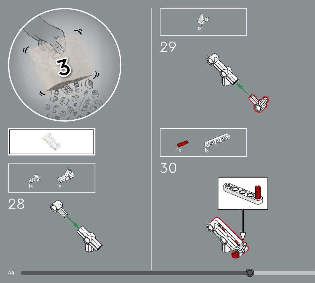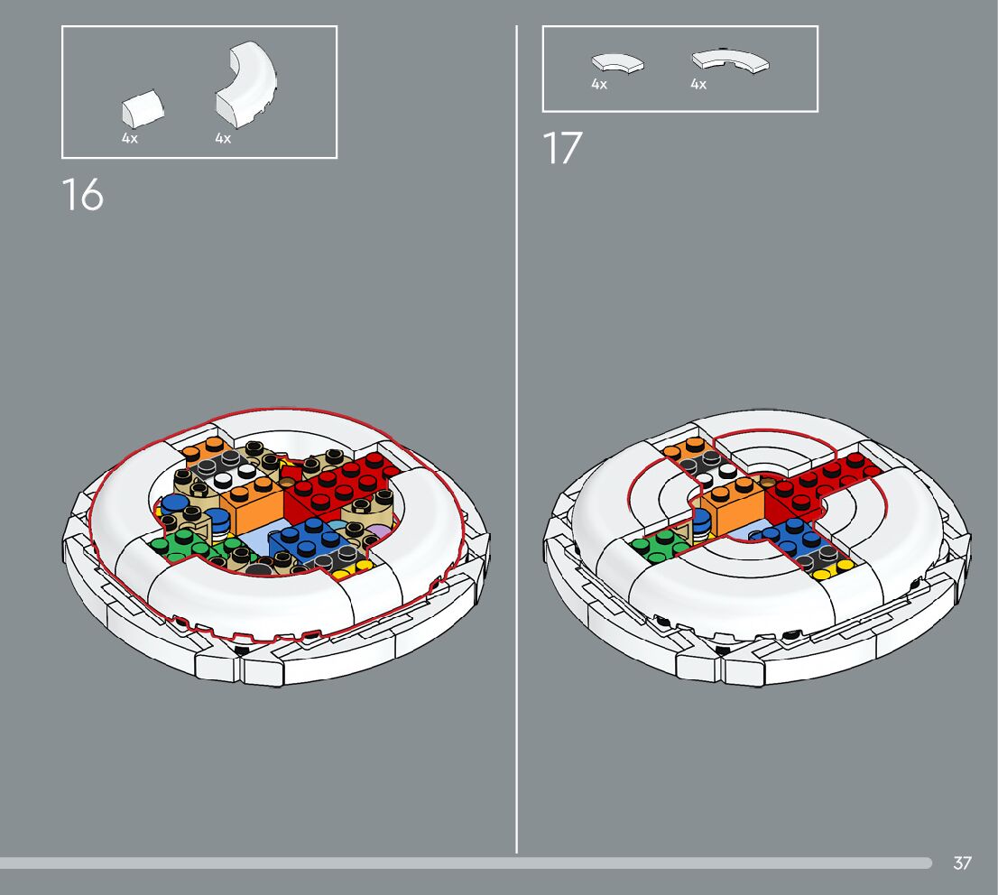 The assembly guide is prepared in a very understandable way for children and adult LEGO enthusiasts. A total of 100 picture galleries are shown, explaining the step-by-step construction stages for 1 different structures.