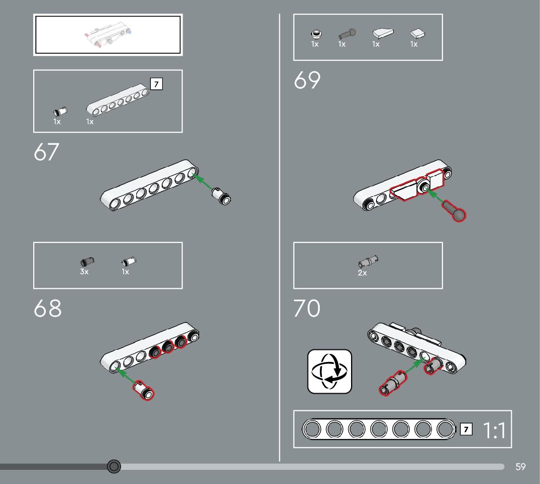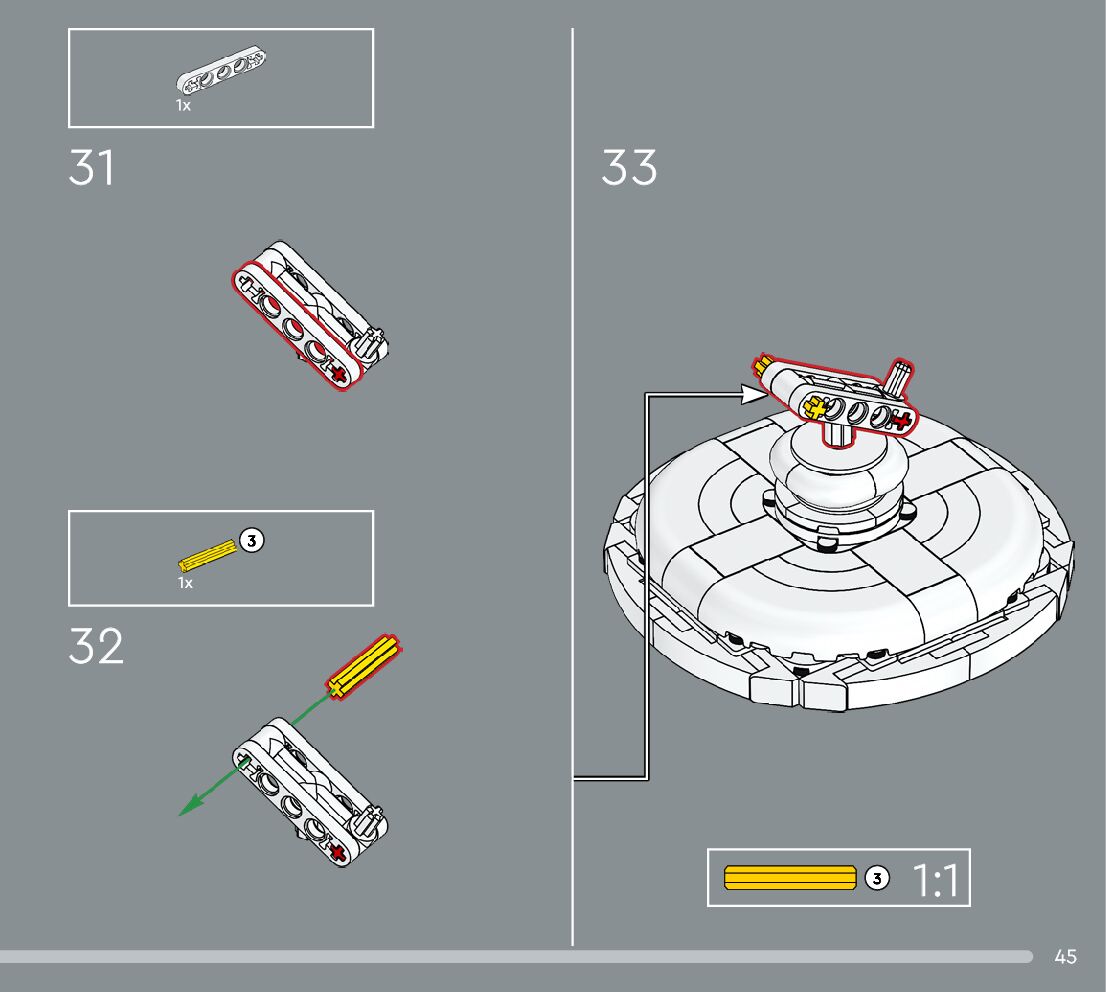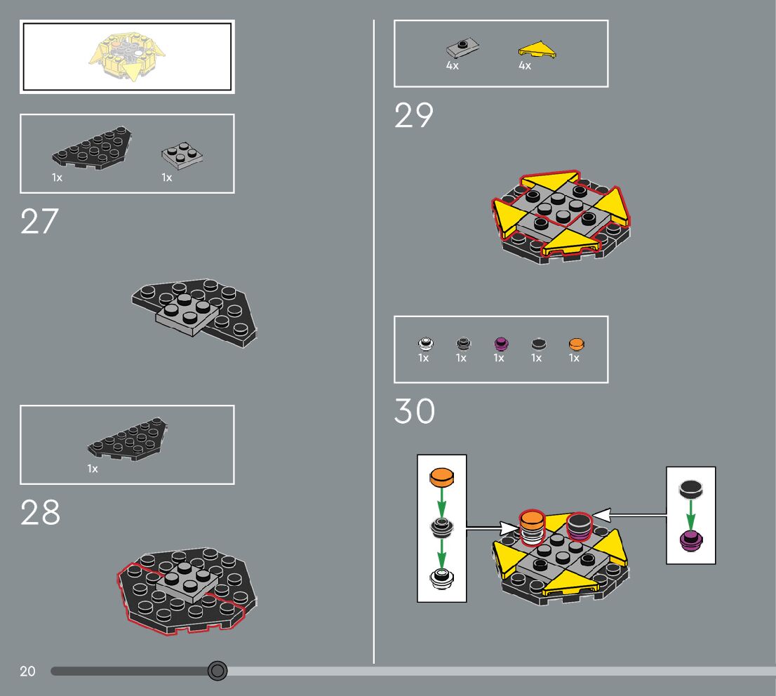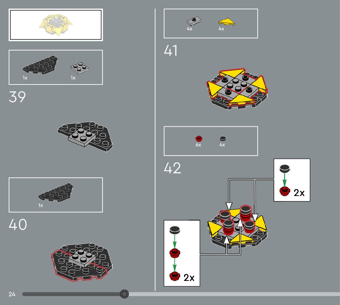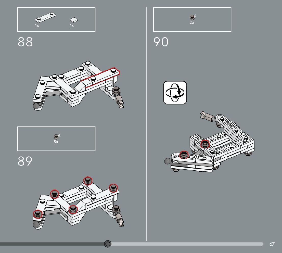 The assembly guide is prepared in a very understandable way for children and adult LEGO enthusiasts. A total of 100 picture galleries are shown, explaining the step-by-step construction stages for 1 different structures.