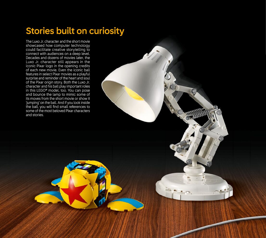 This page shares information about LEGO Disney Pixar Luxo Jr. manual, LEGO 21357 PDF instructions, LEGO Disney Pixar Luxo Jr. building guide online, How to build Disney Pixar Luxo Jr. LEGO.