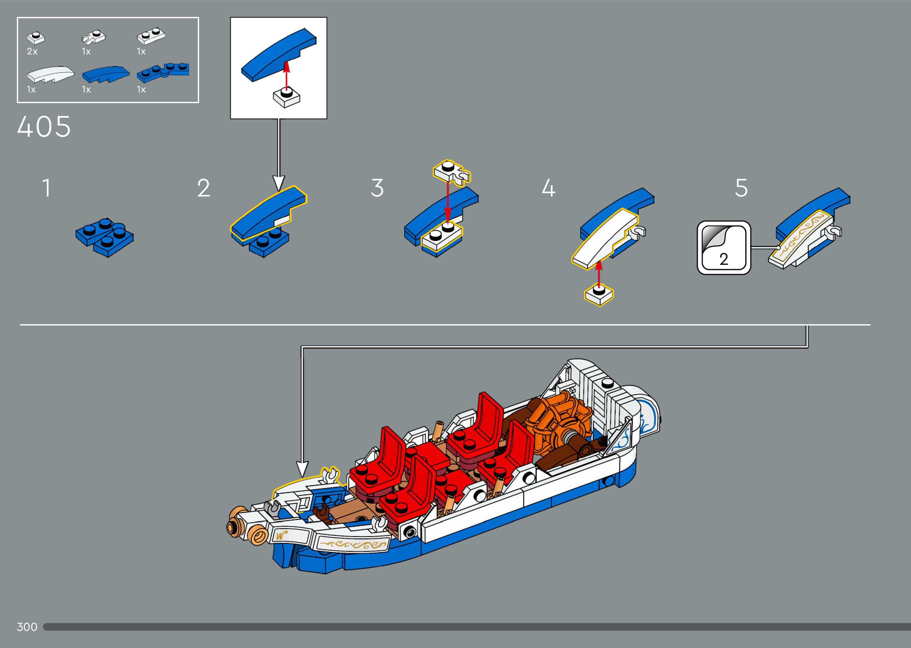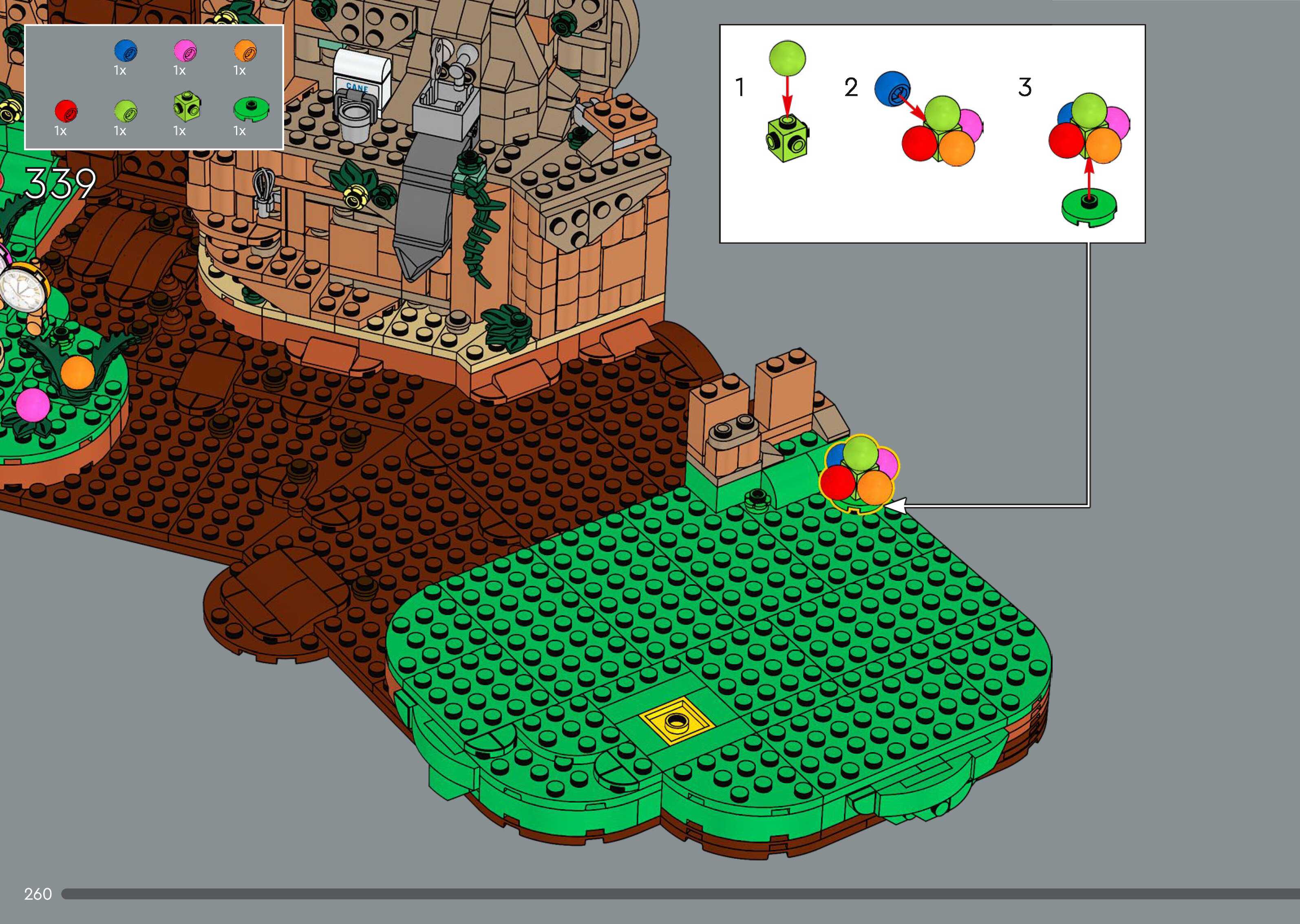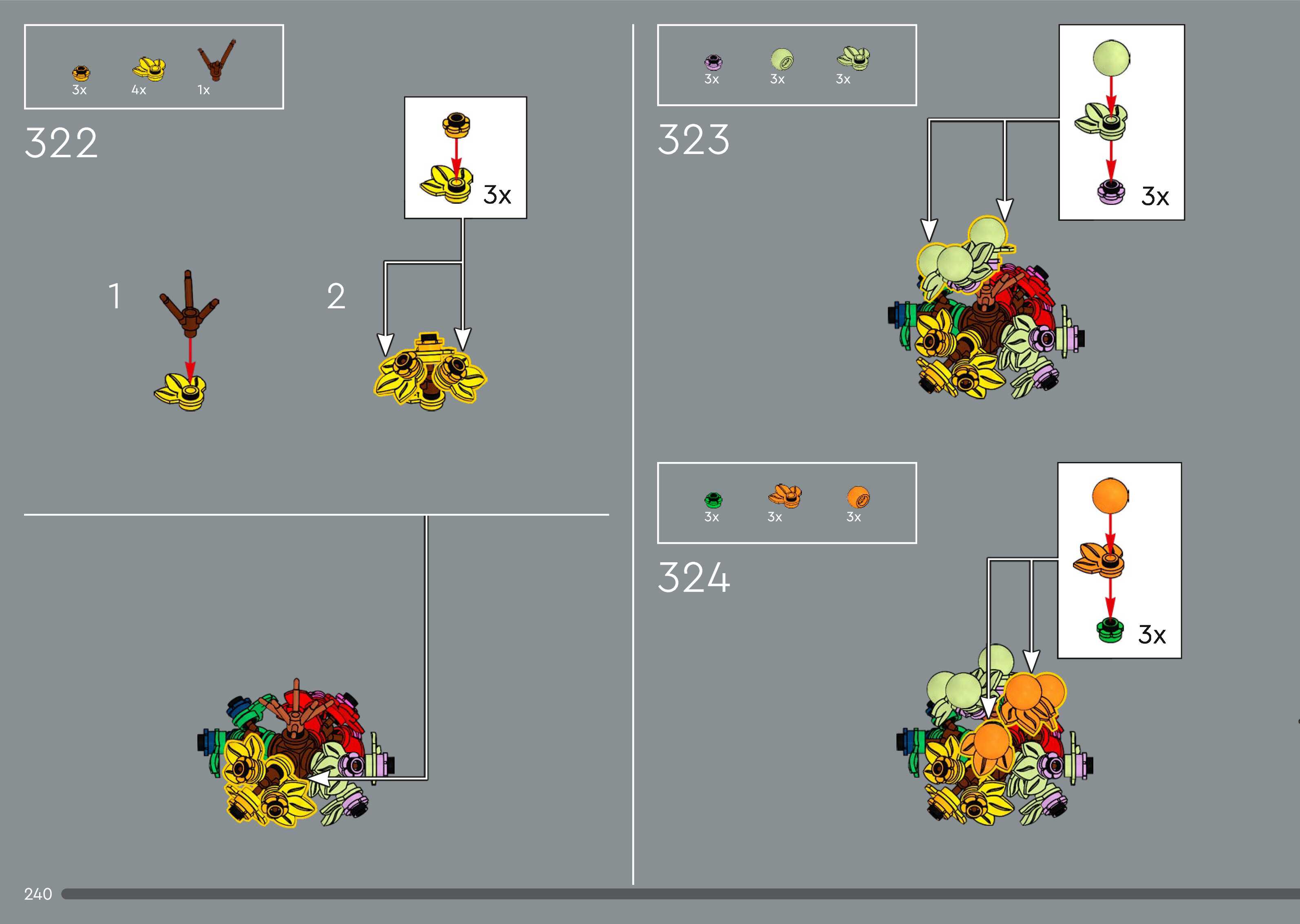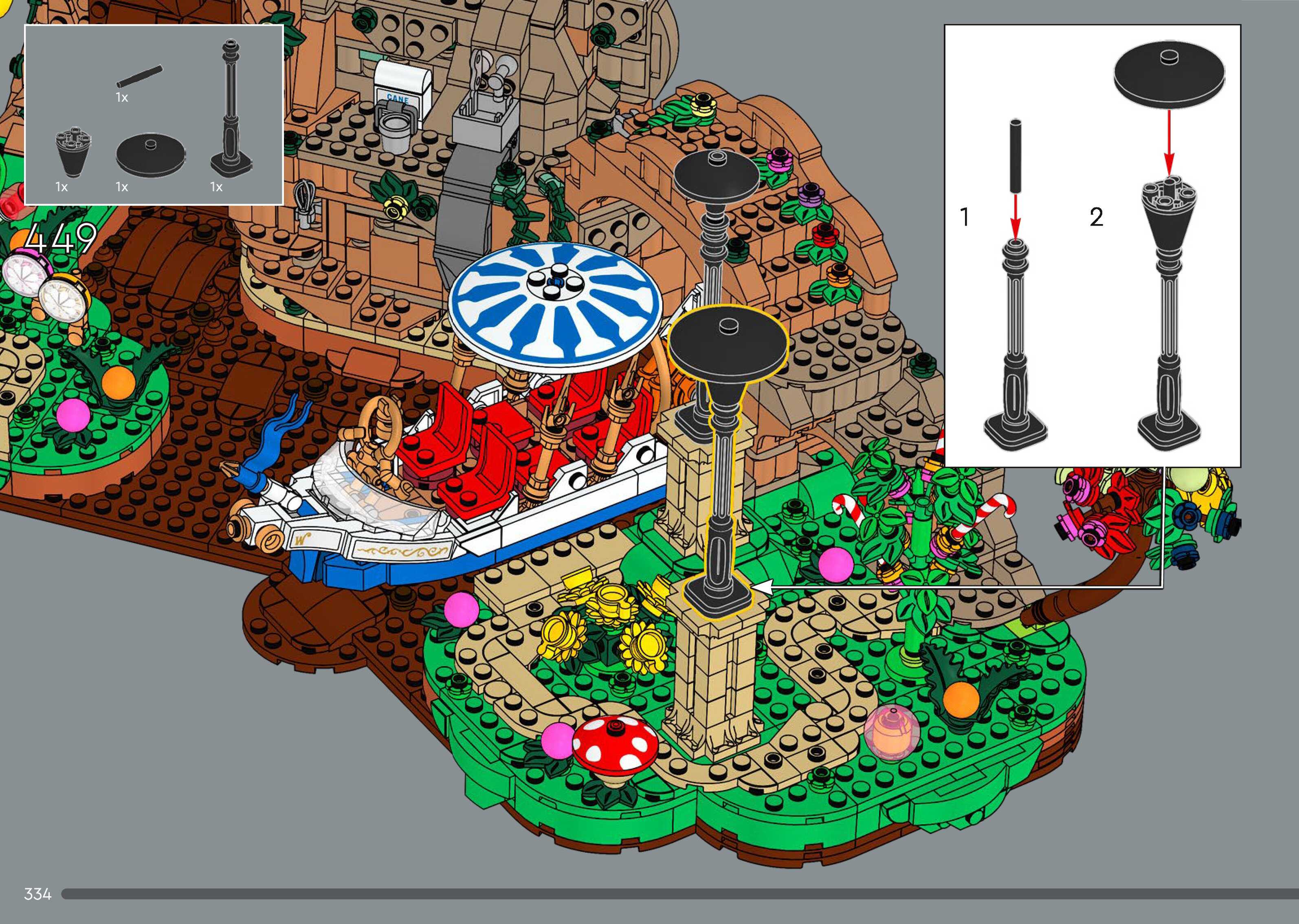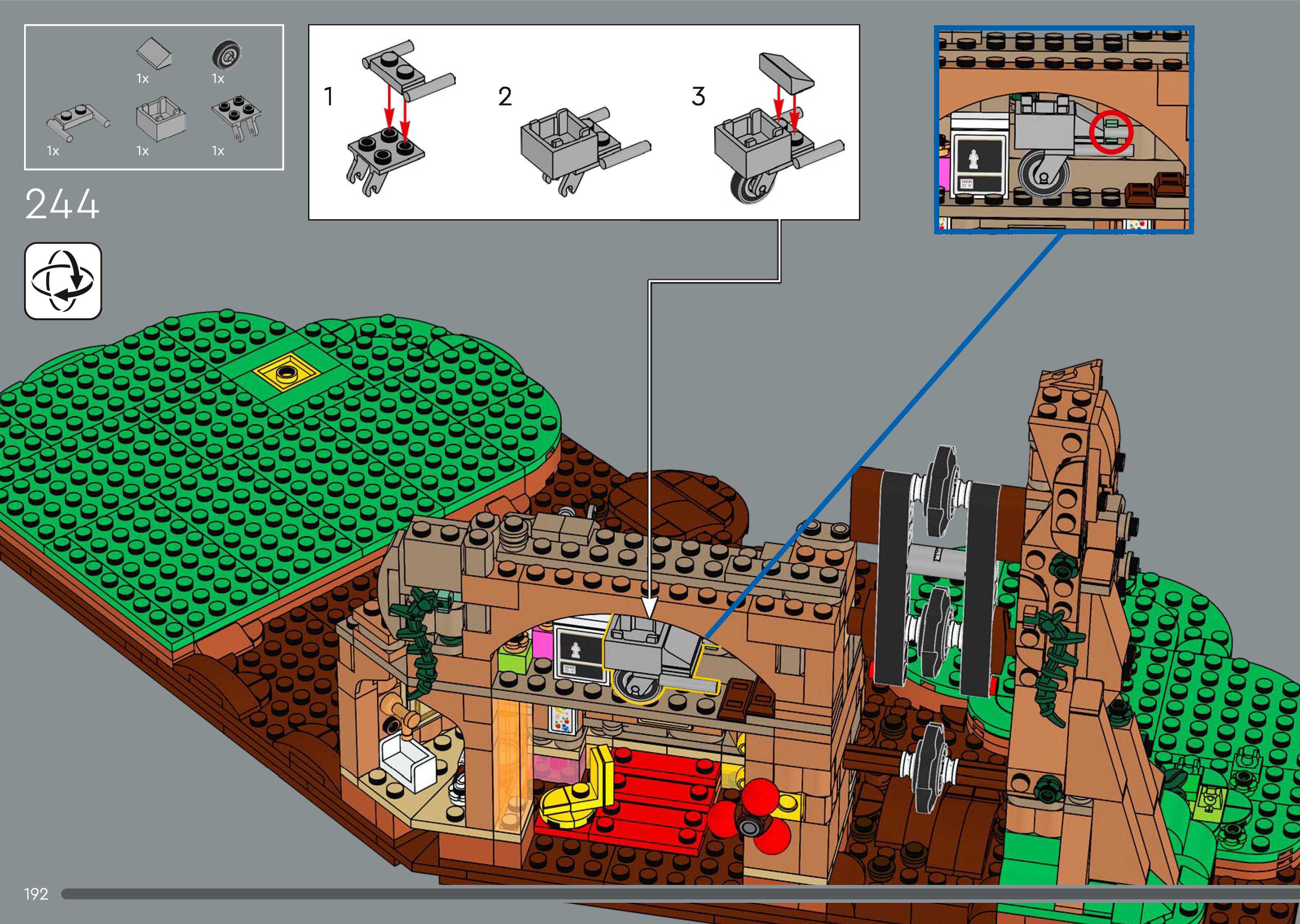 The assembly guide is prepared in a very understandable way for children and adult LEGO enthusiasts. A total of 344 picture galleries are shown, explaining the step-by-step construction stages for 1 different structures.