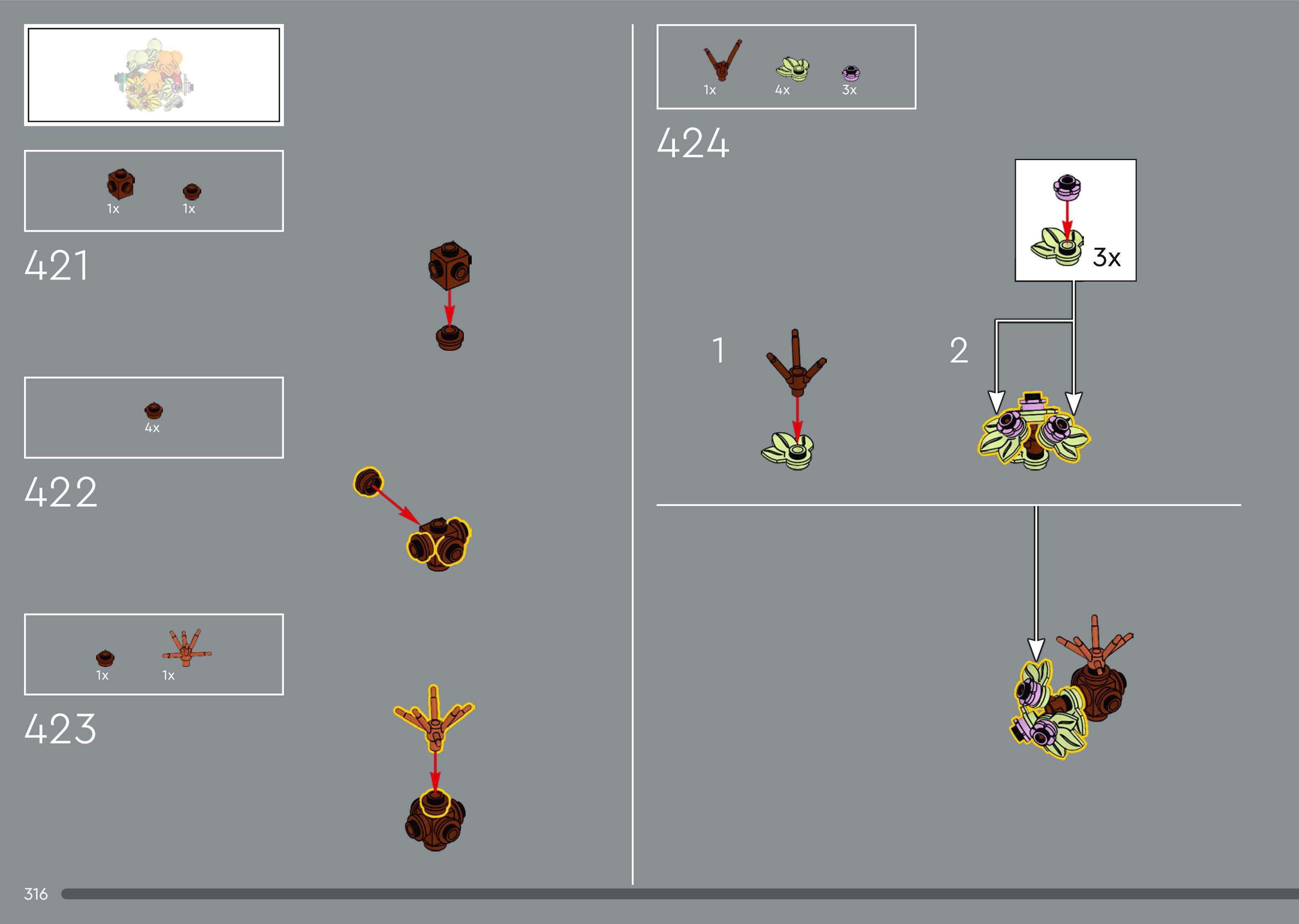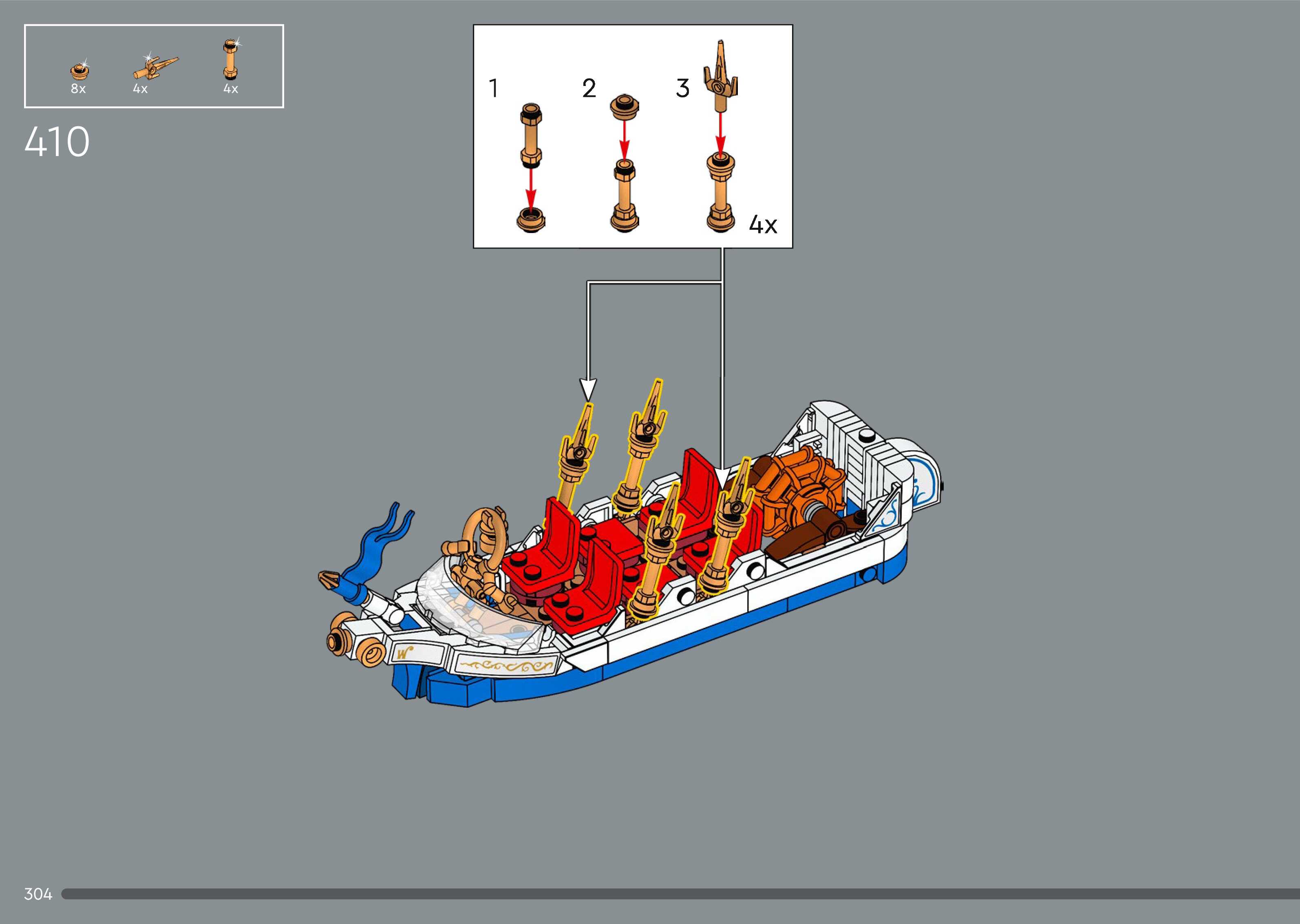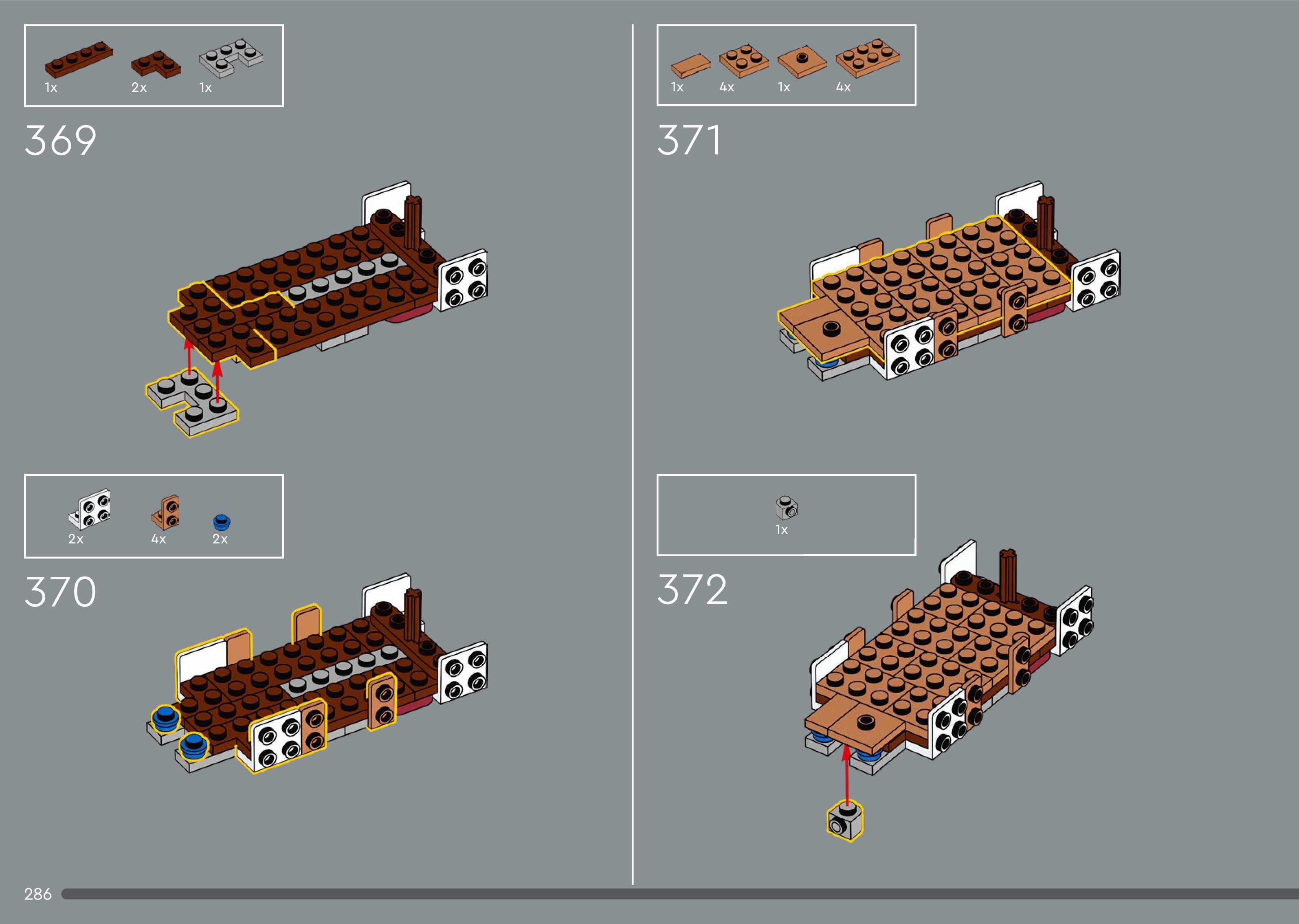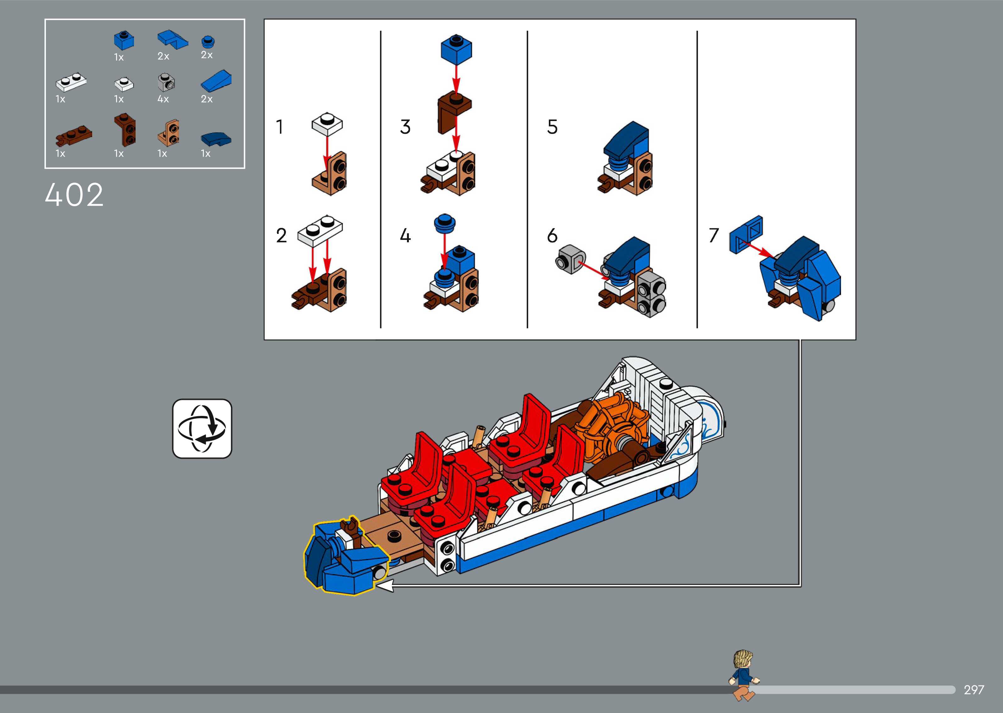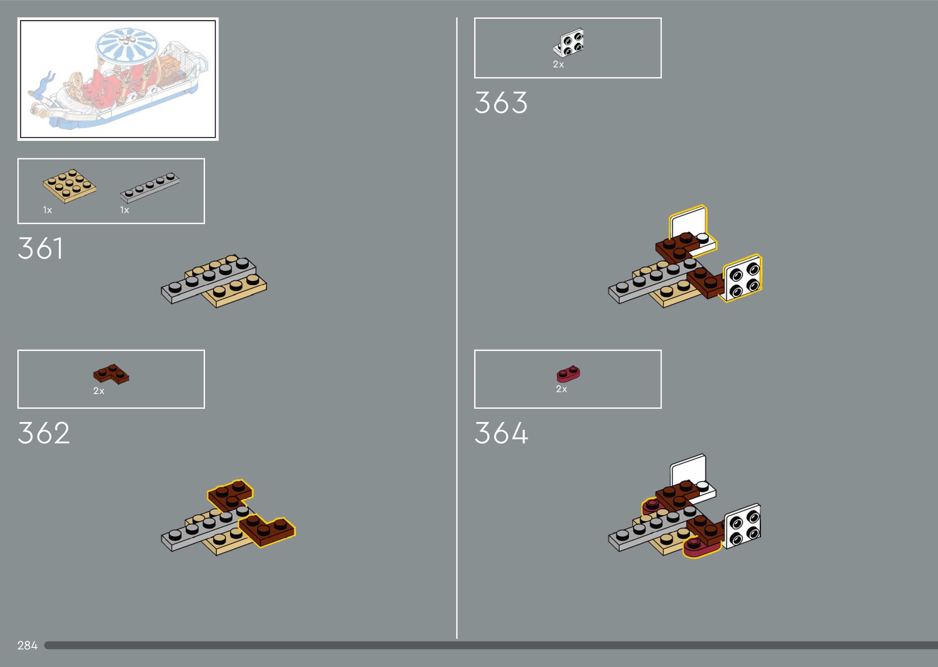 The assembly guide is prepared in a very understandable way for children and adult LEGO enthusiasts. A total of 344 picture galleries are shown, explaining the step-by-step construction stages for 1 different structures.