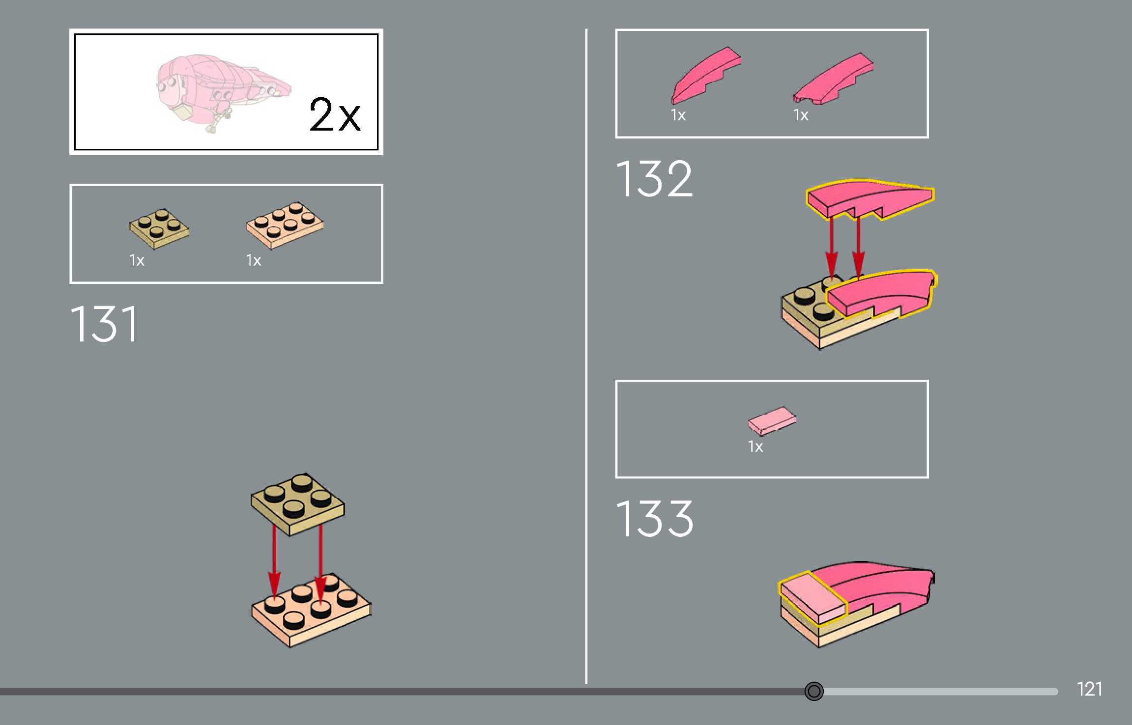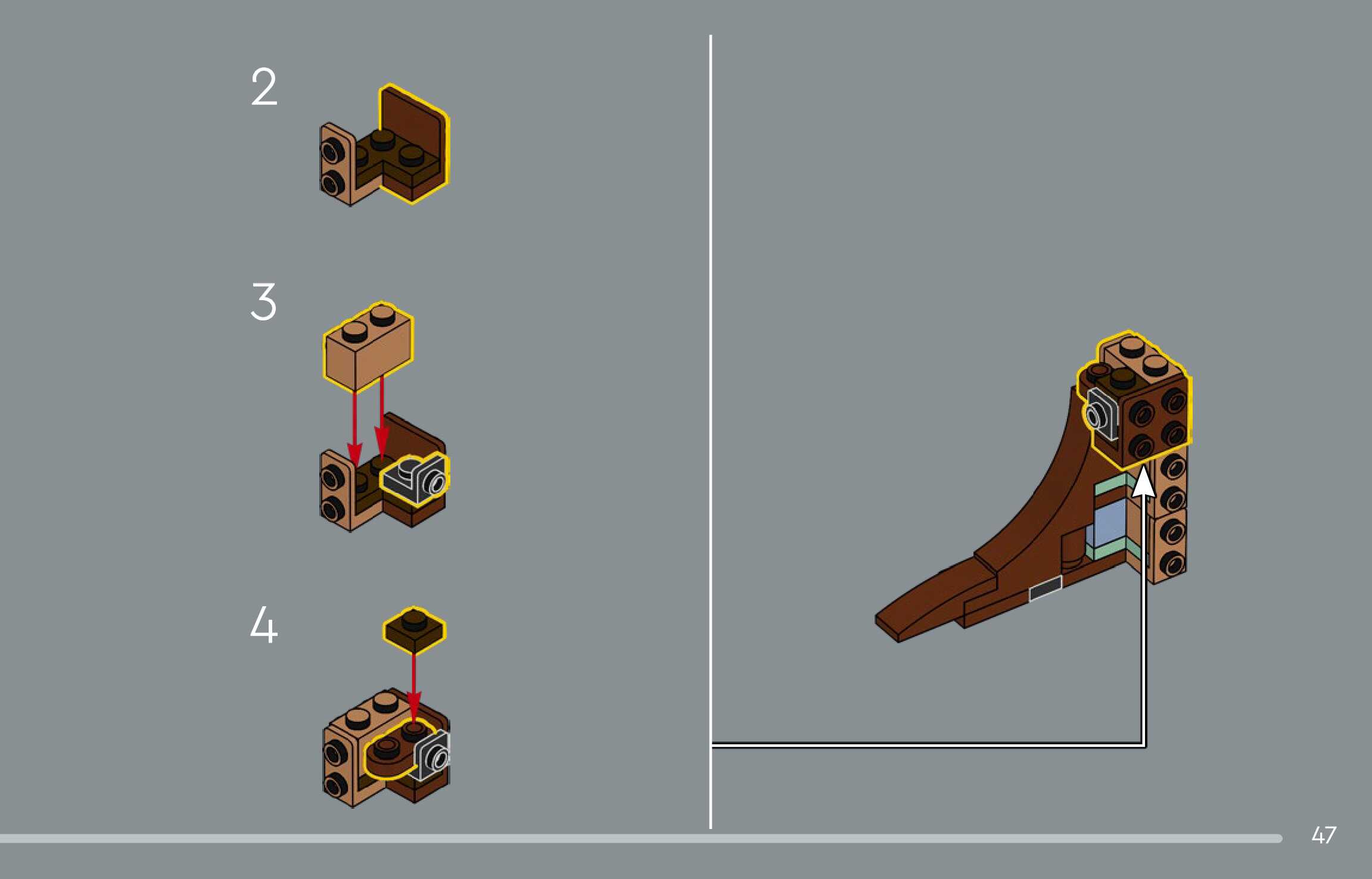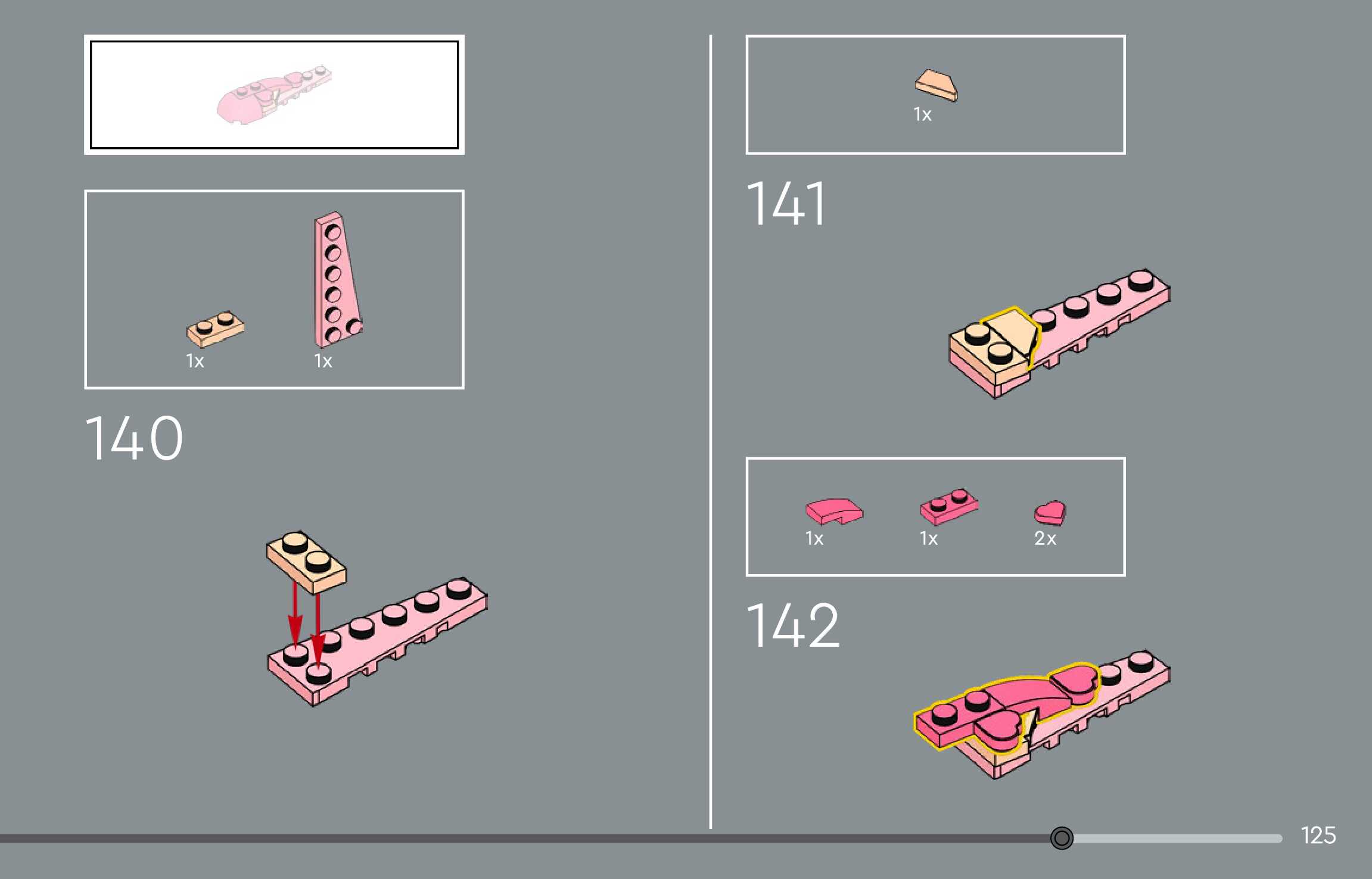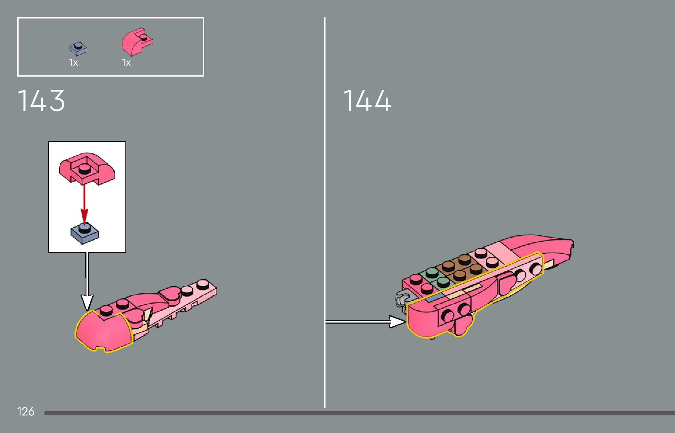 The assembly guide is prepared in a very understandable way for children and adult LEGO enthusiasts. A total of 144 picture galleries are shown, explaining the step-by-step construction stages for 1 different structures.