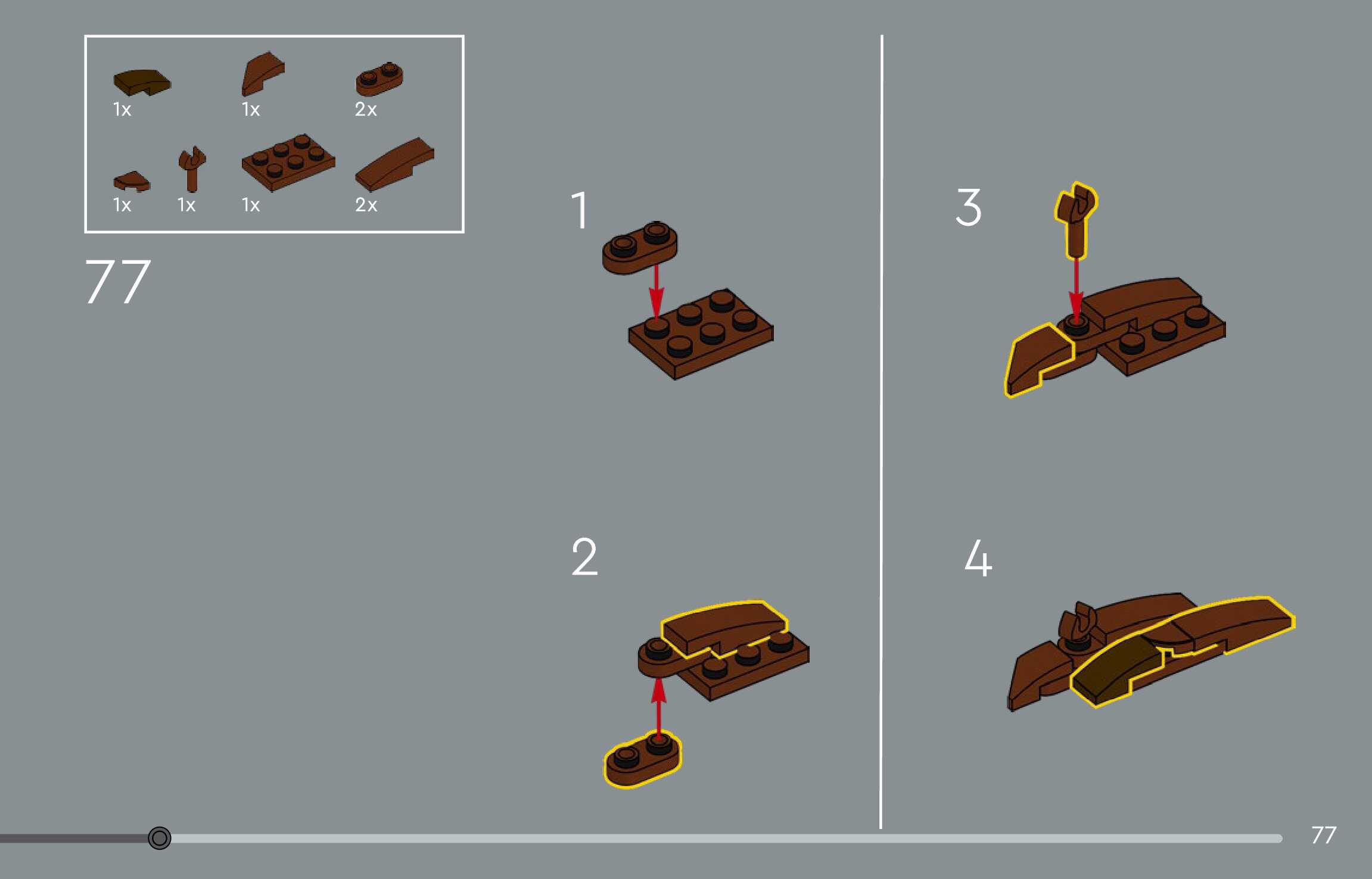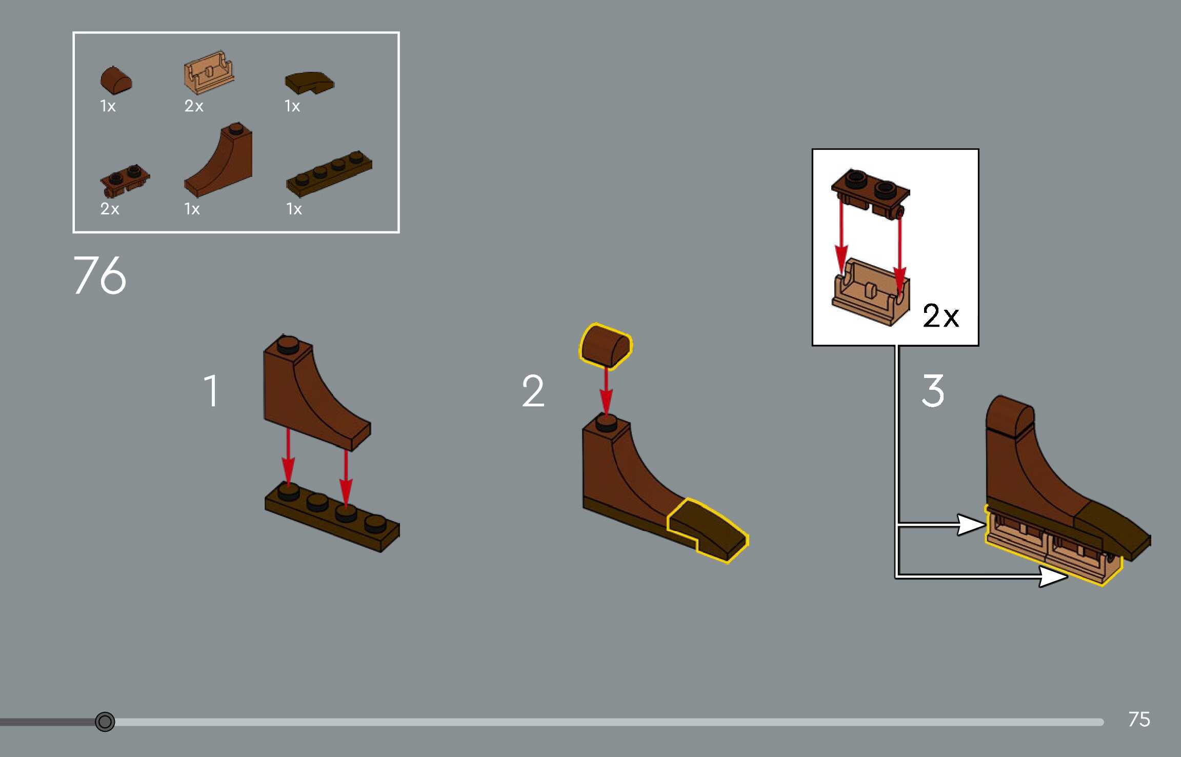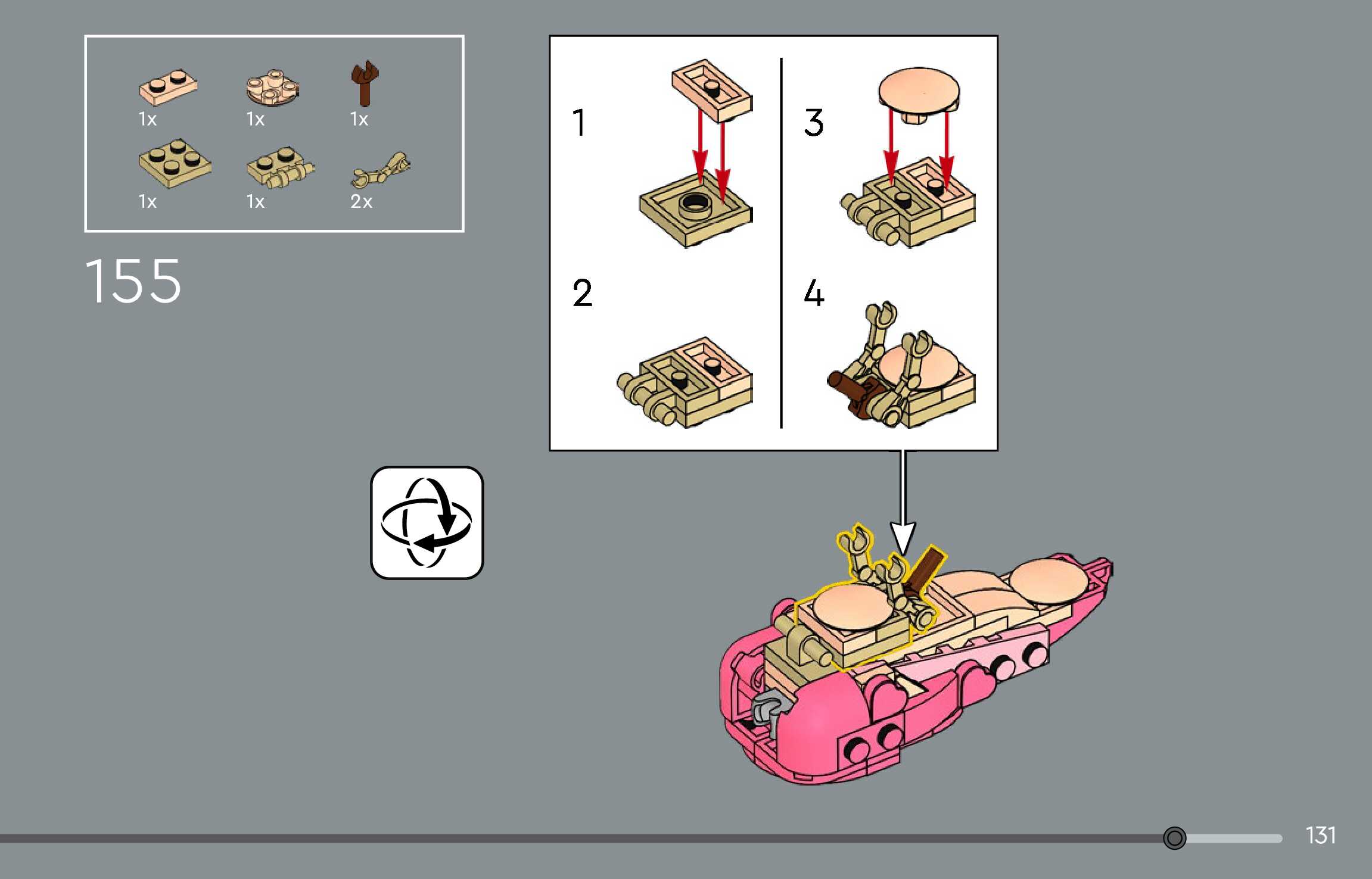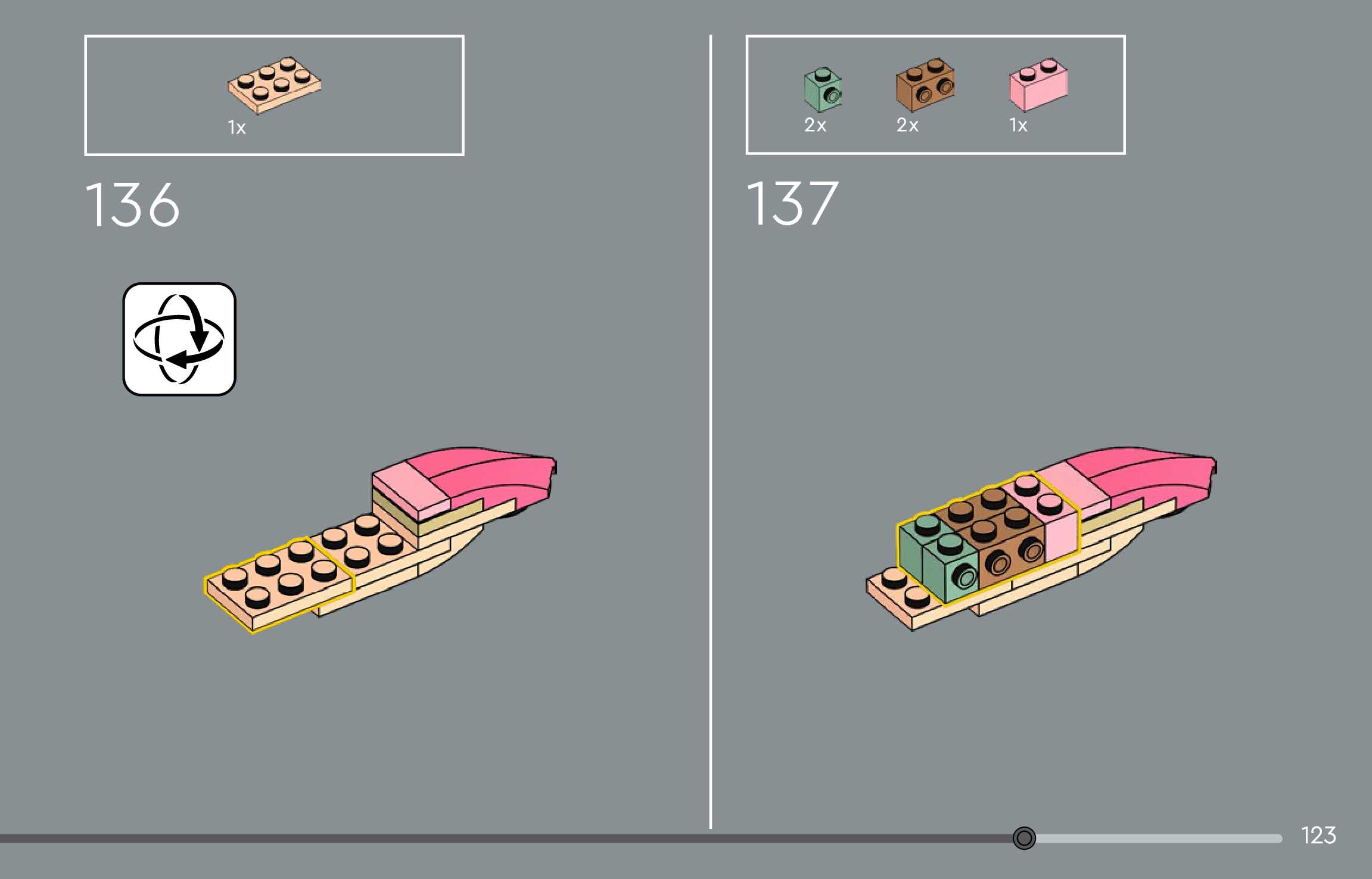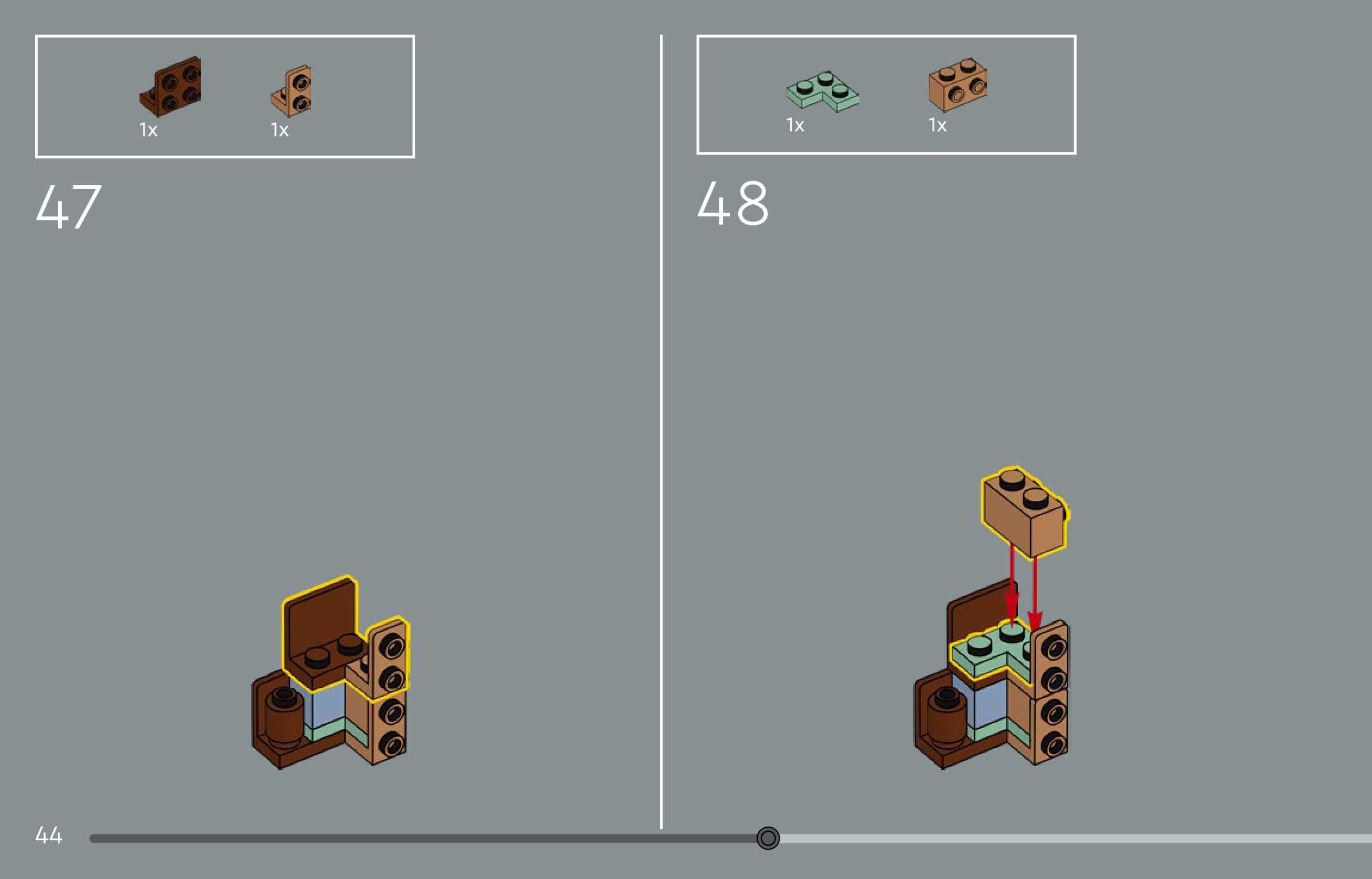 The assembly guide is prepared in a very understandable way for children and adult LEGO enthusiasts. A total of 144 picture galleries are shown, explaining the step-by-step construction stages for 1 different structures.