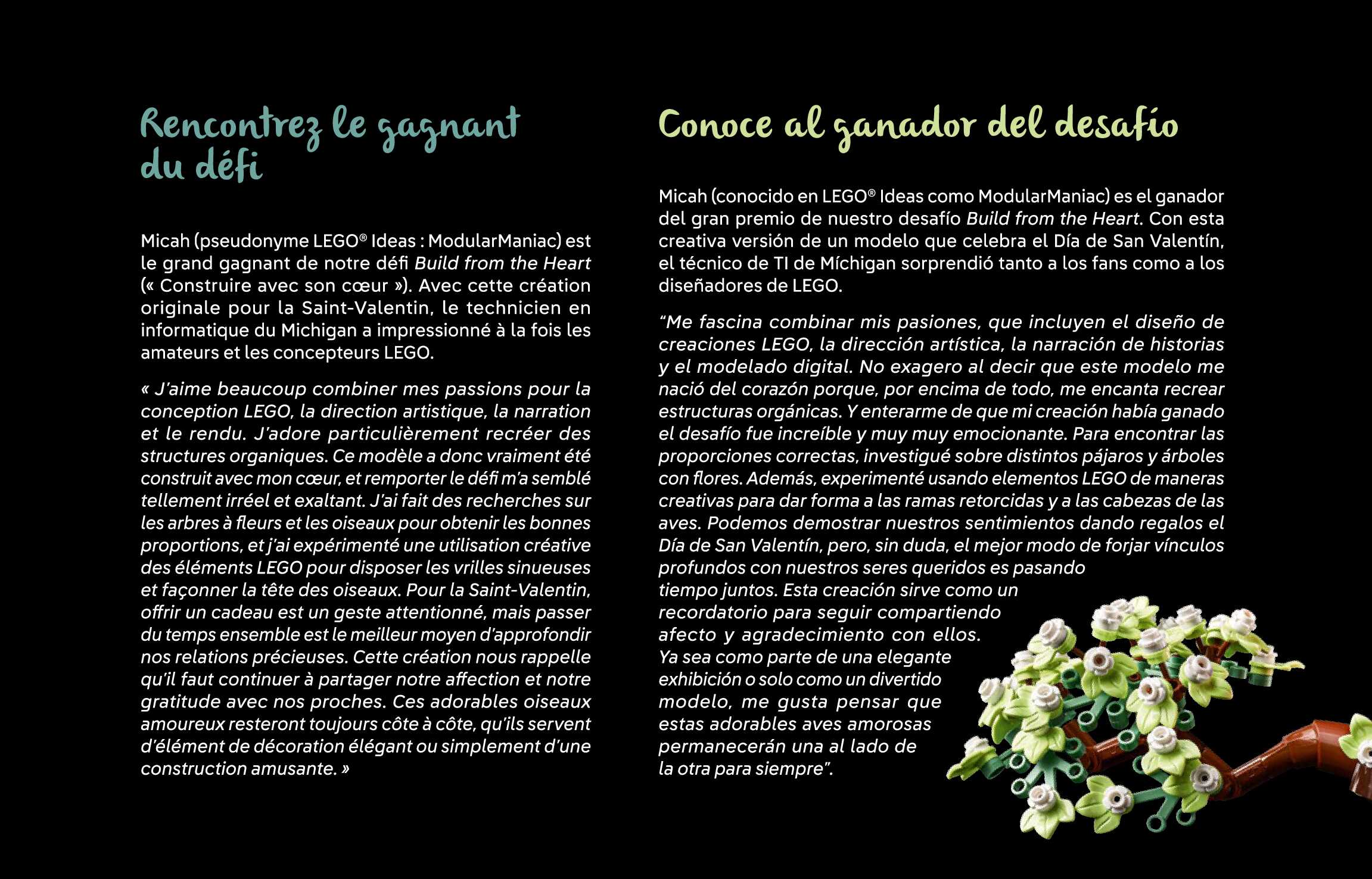 On this page you can find the original construction manual for the LEGO 21365 set. With the assembly manual you can easily learn how to build the Love Birds step by step. The set was released in 2026.