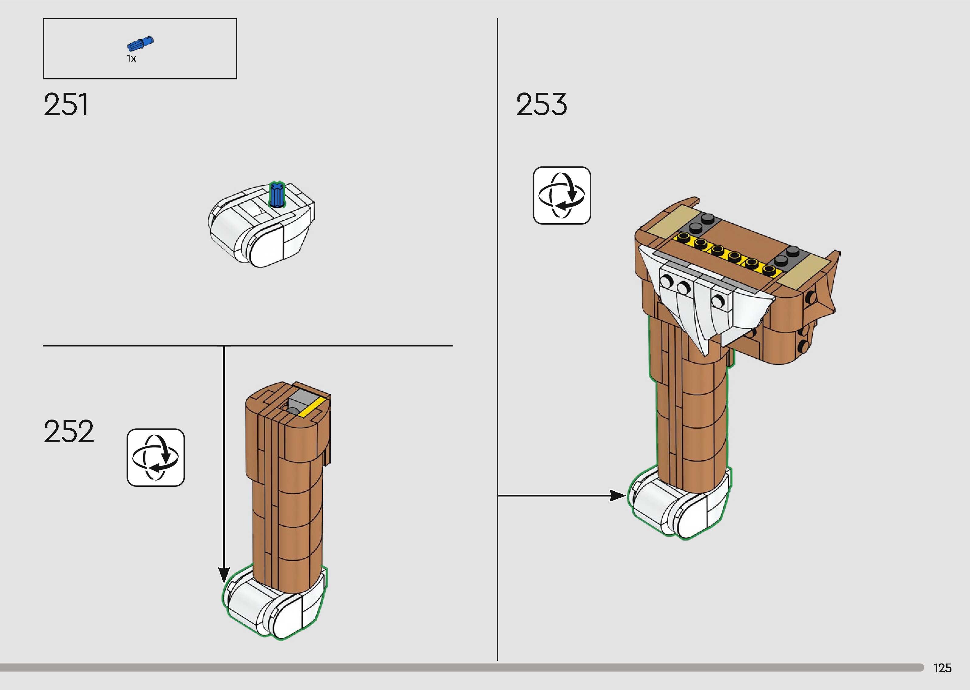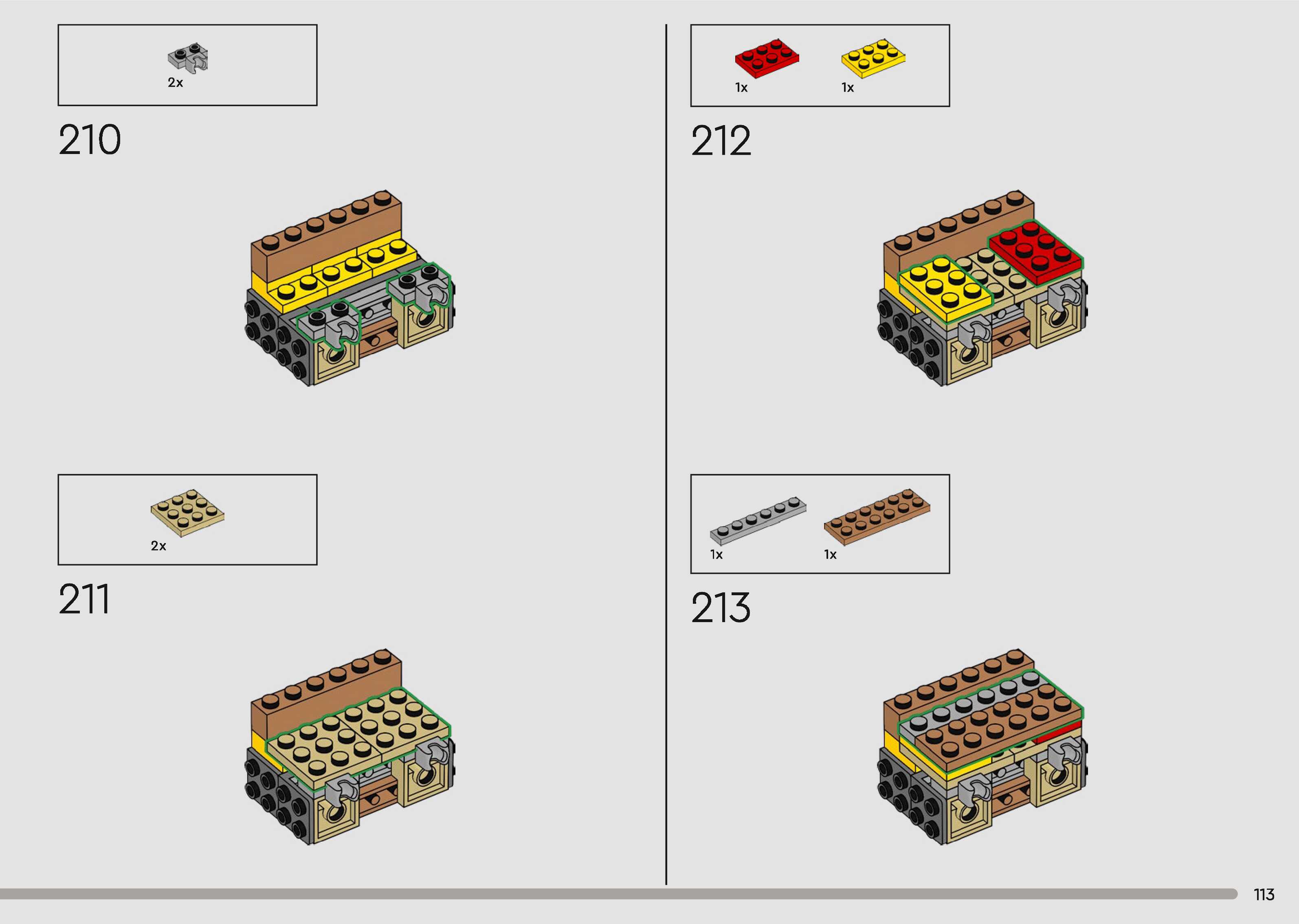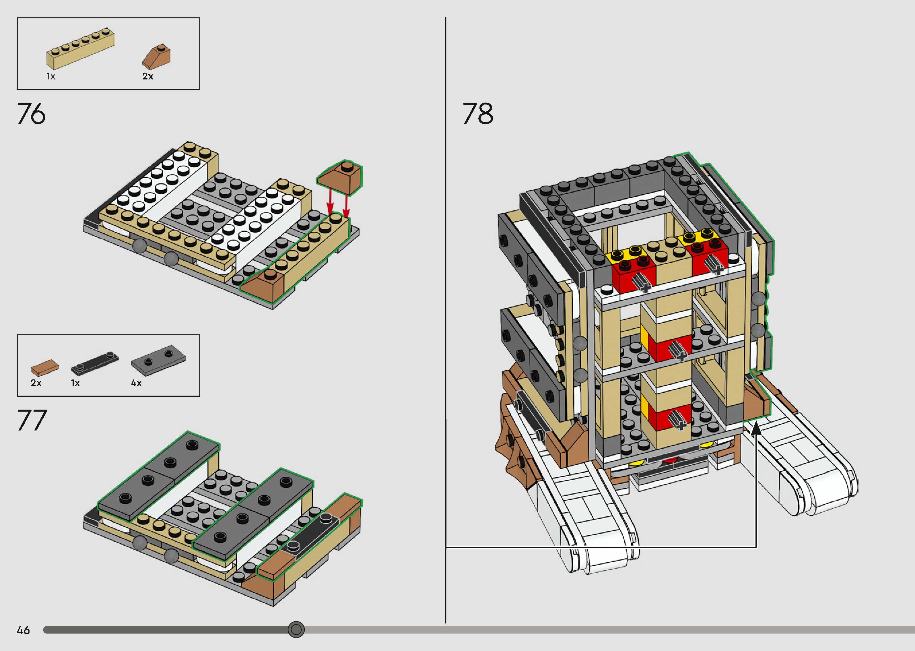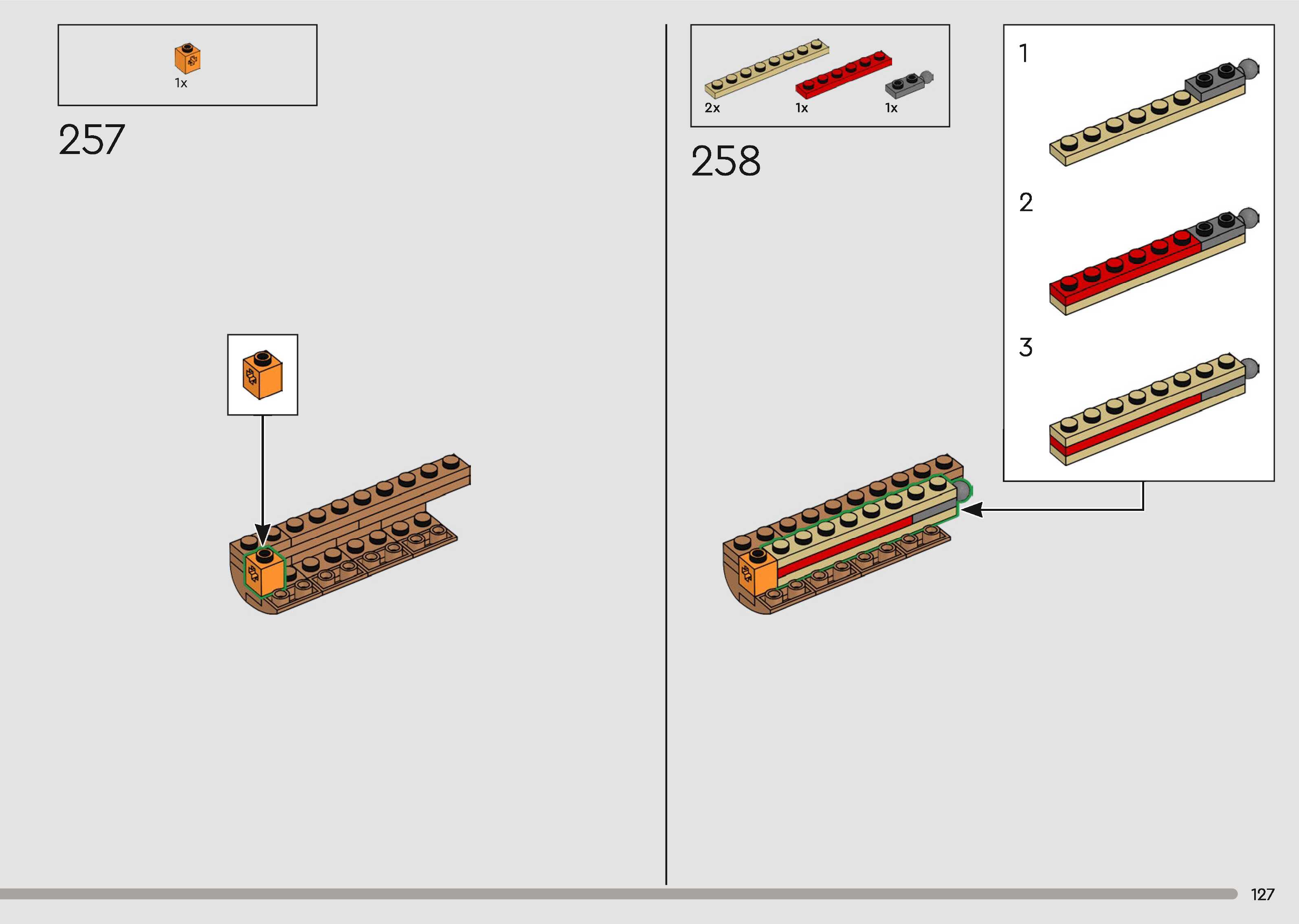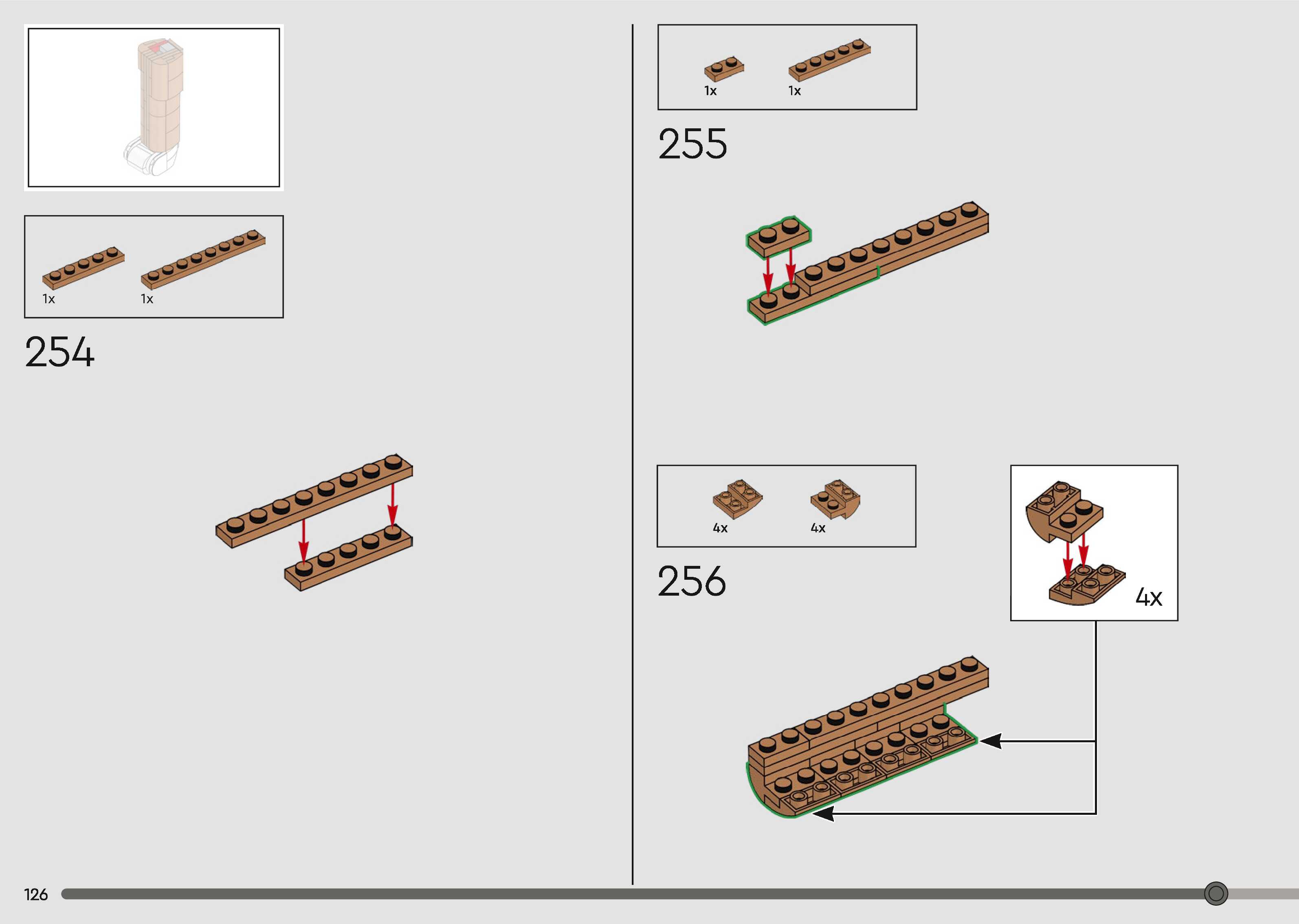 The assembly guide is prepared in a very understandable way for children and adult LEGO enthusiasts. A total of 256 picture galleries are shown, explaining the step-by-step construction stages for 1 different structures.