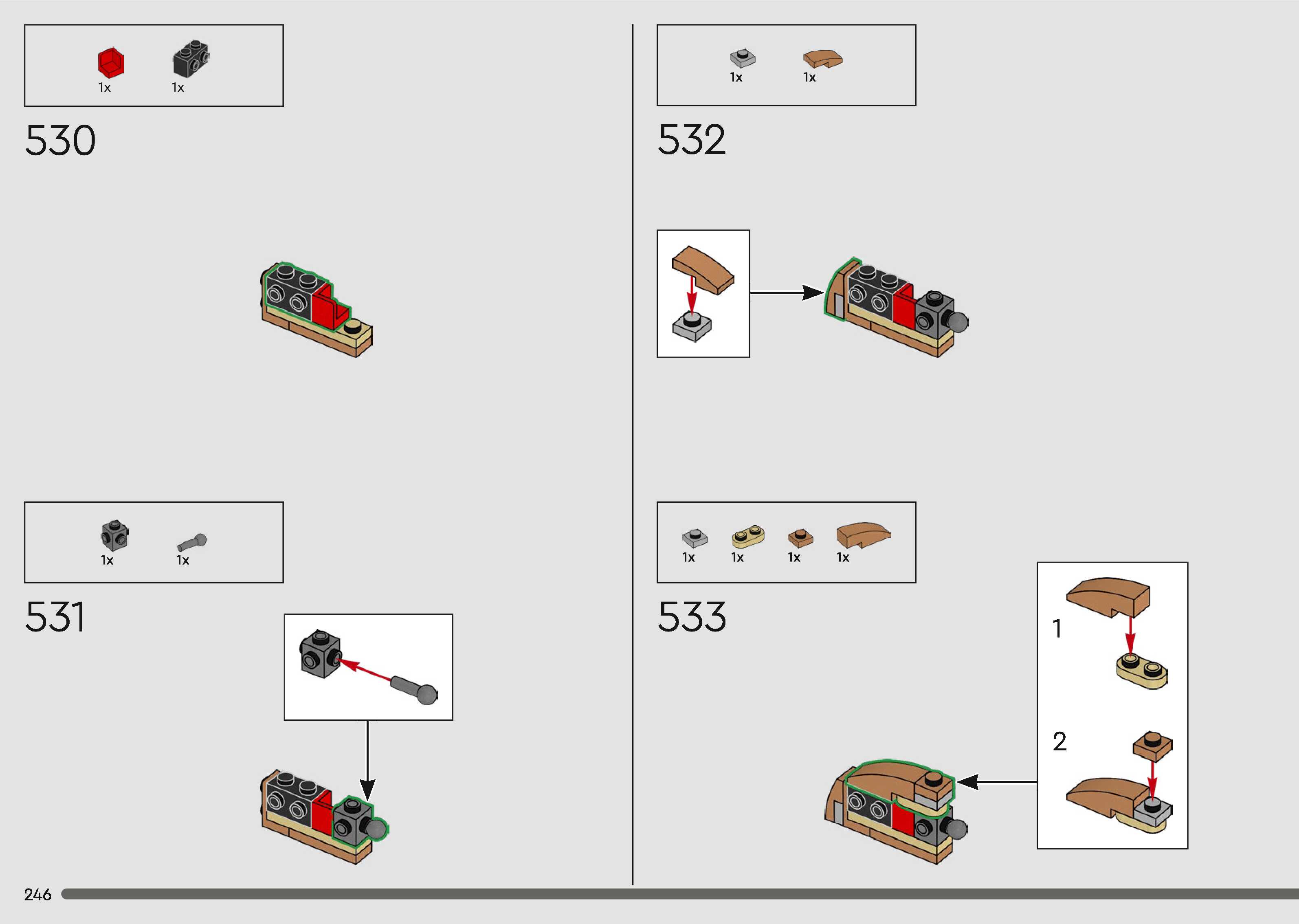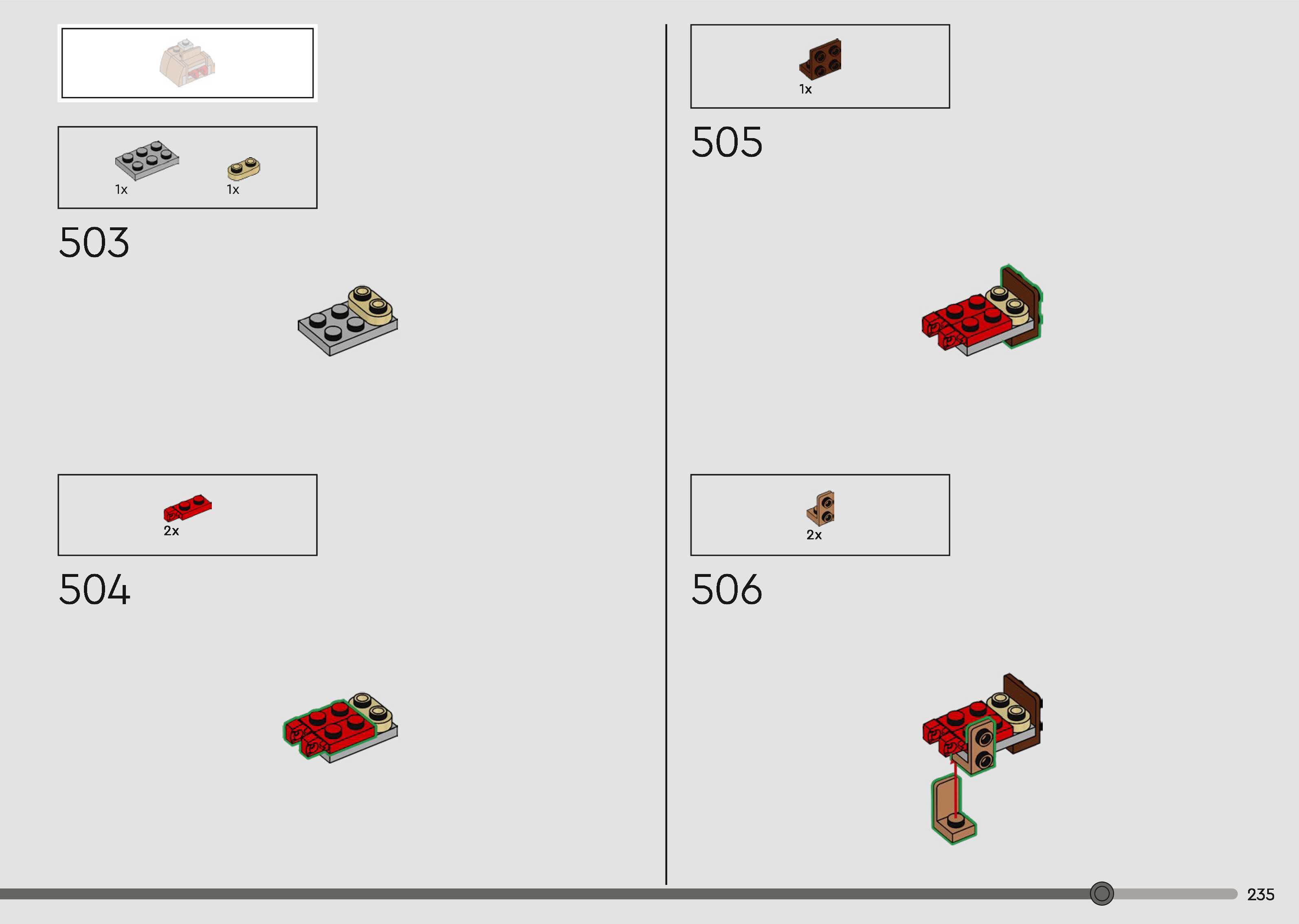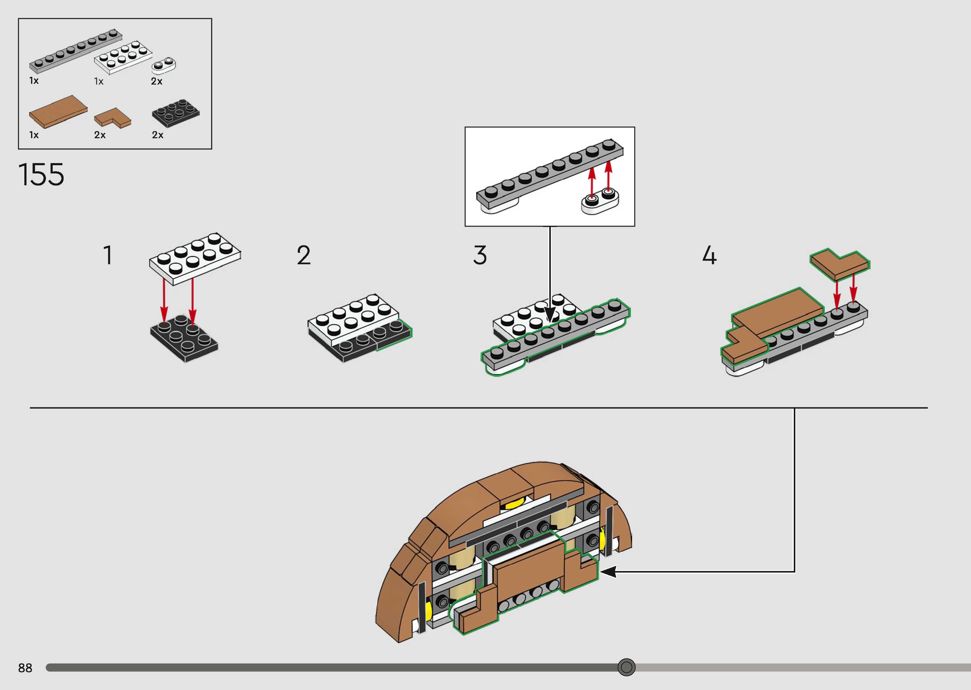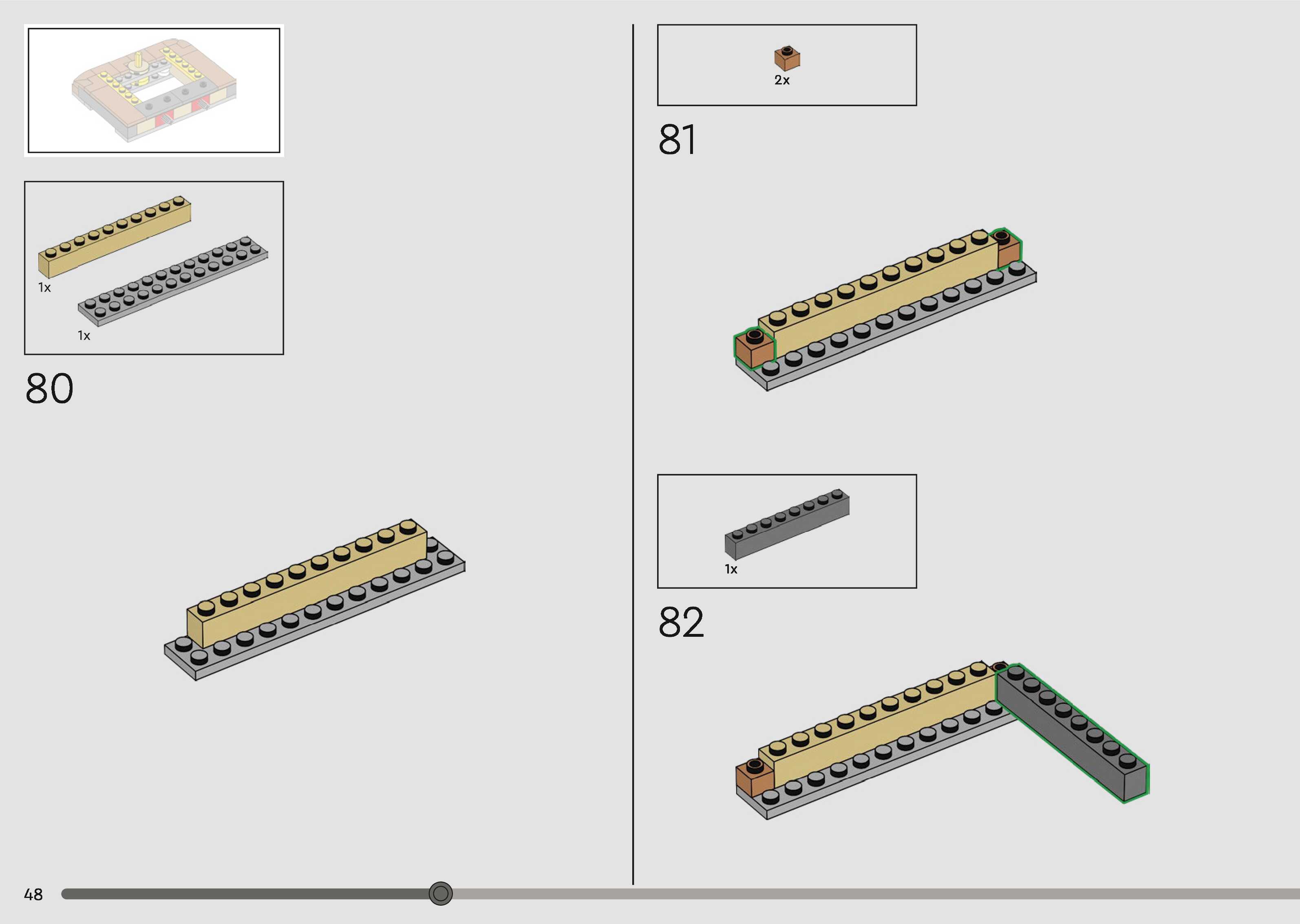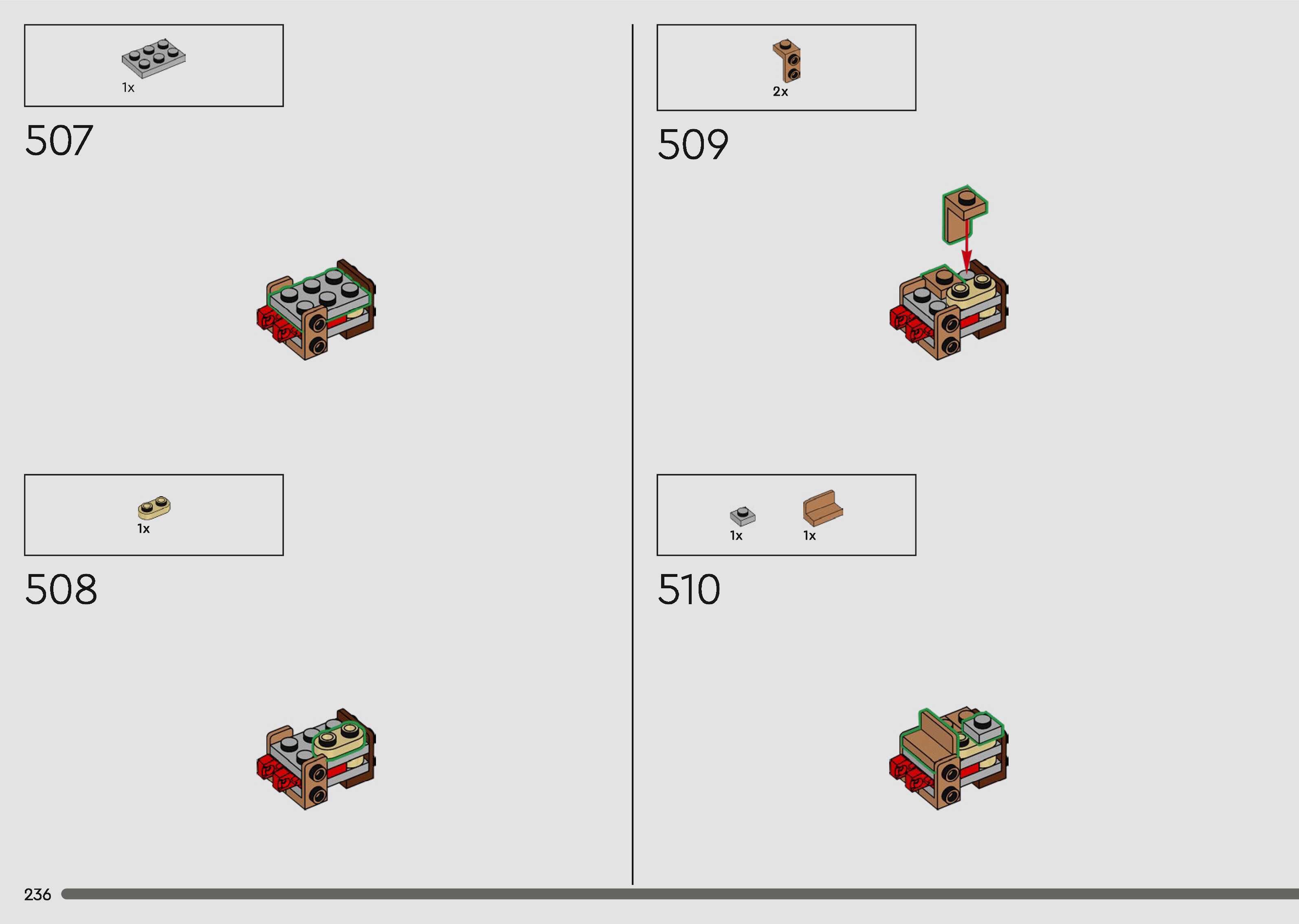 The assembly guide is prepared in a very understandable way for children and adult LEGO enthusiasts. A total of 256 picture galleries are shown, explaining the step-by-step construction stages for 1 different structures.