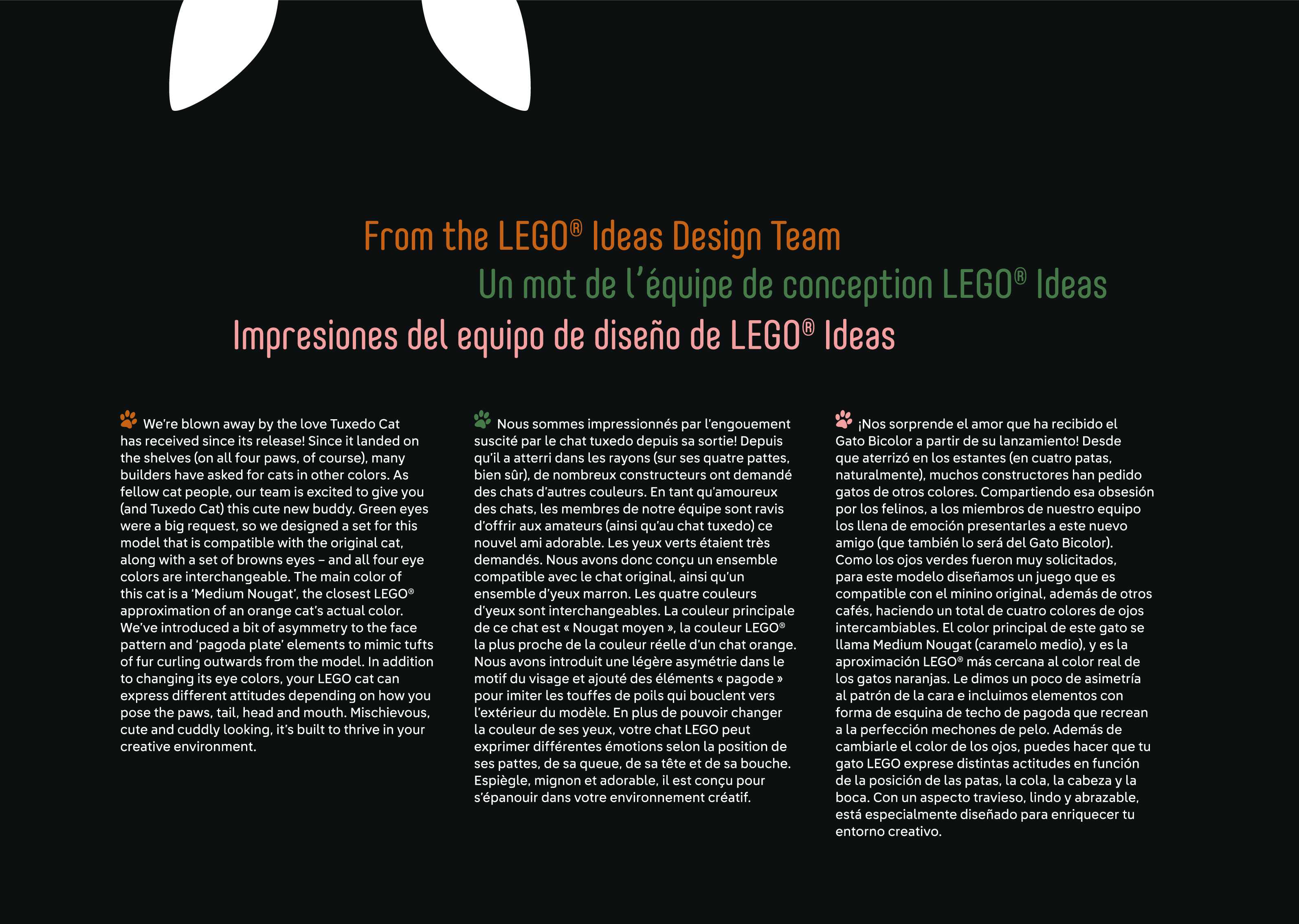 This page shares information about LEGO Orange Cat manual, LEGO 21376 PDF instructions, LEGO Orange Cat building guide online, How to build Orange Cat LEGO.