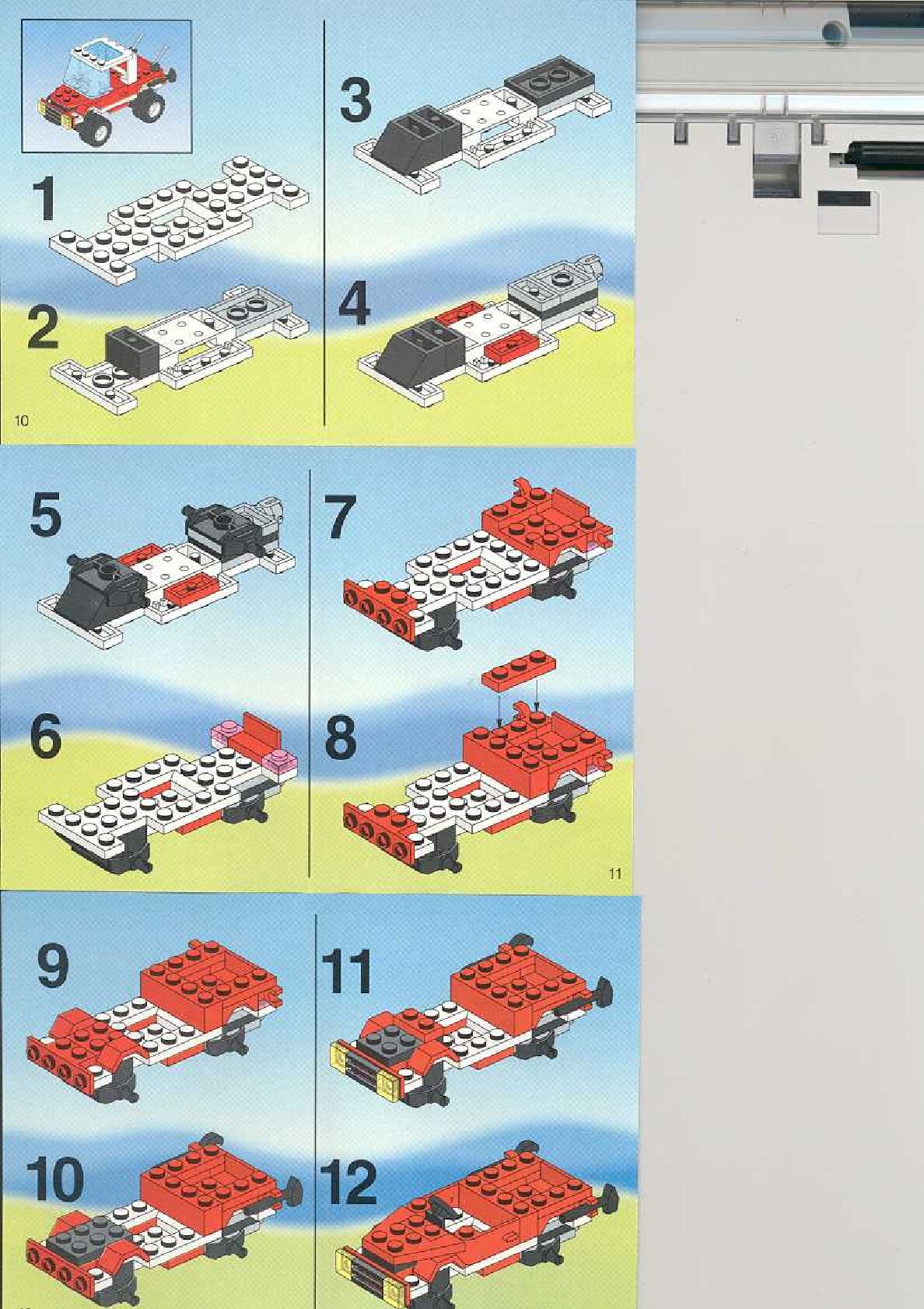 The assembly guide is prepared in a very understandable way for children and adult LEGO enthusiasts. A total of 12 picture galleries are shown, explaining the step-by-step construction stages for 2 different structures.