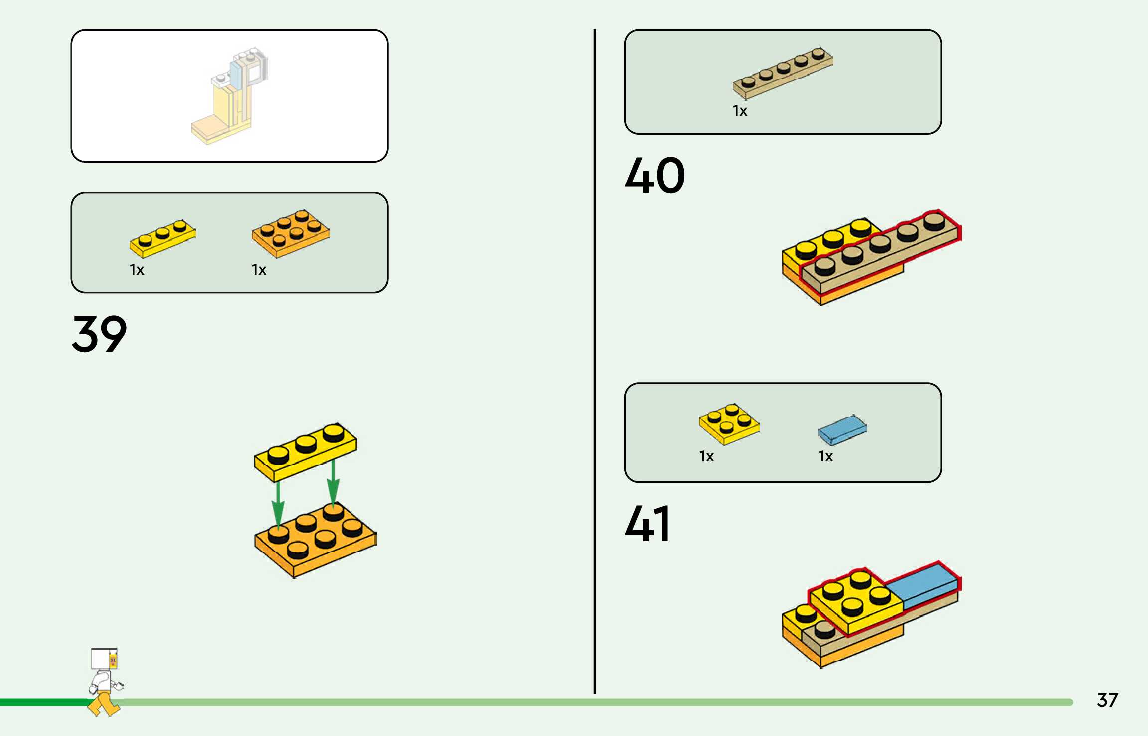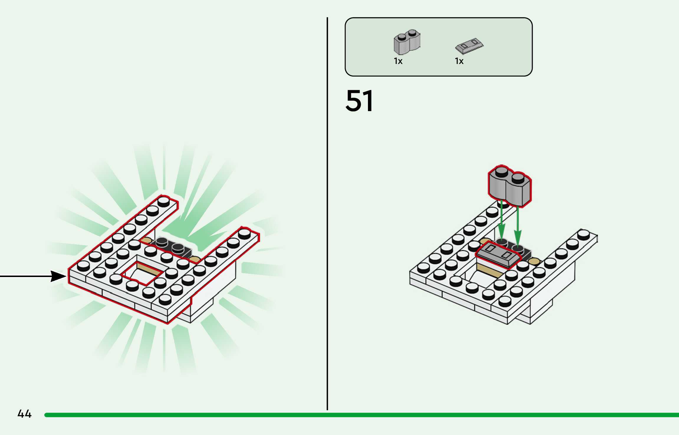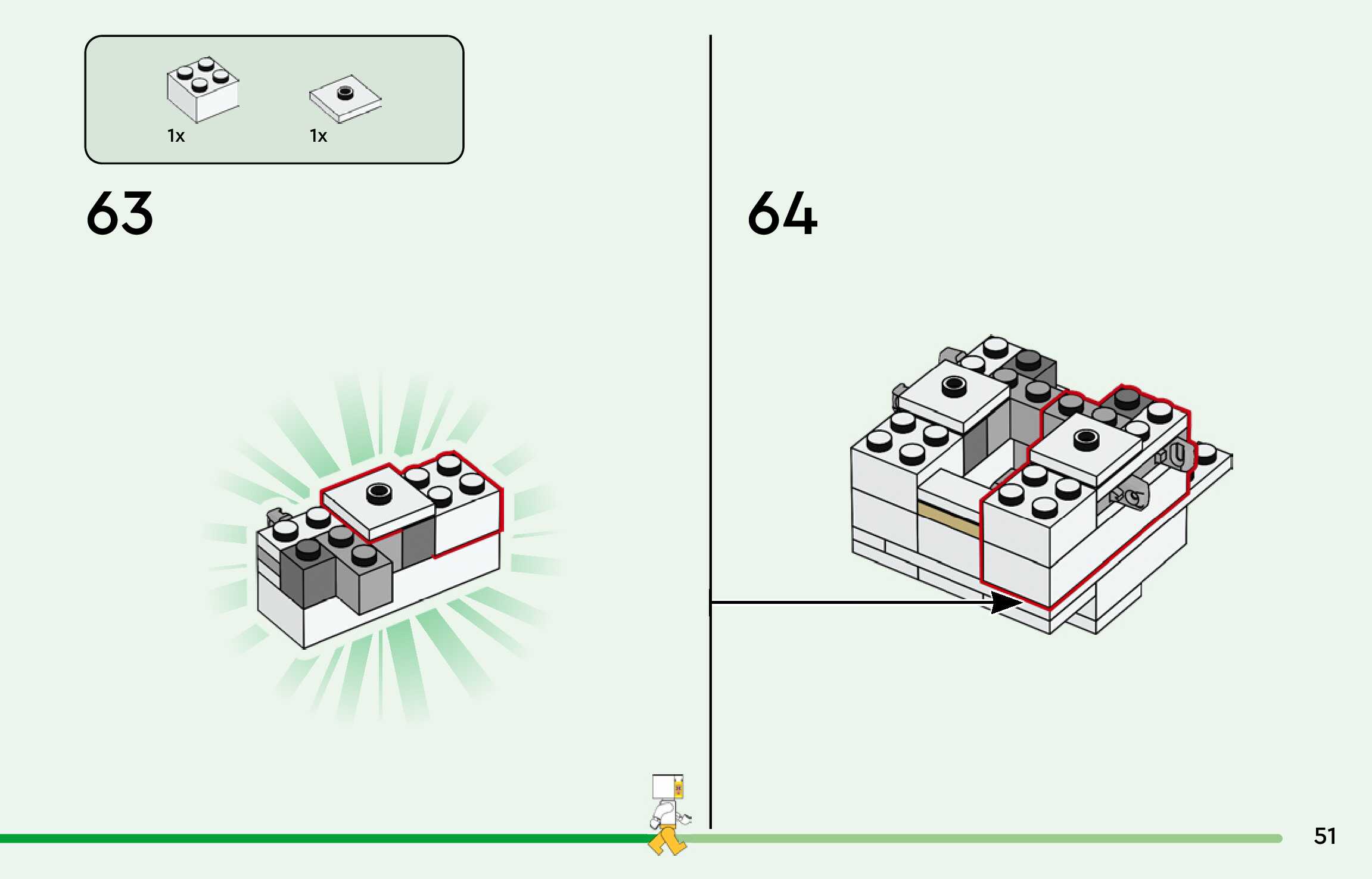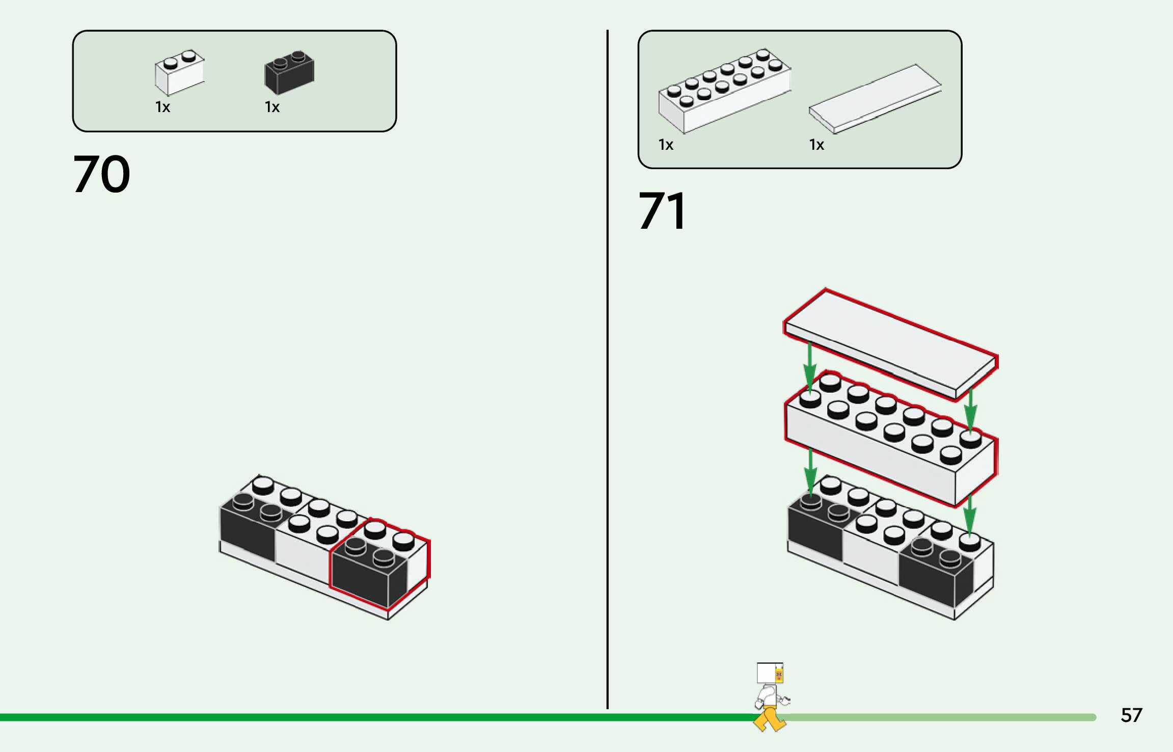 The assembly guide is prepared in a very understandable way for children and adult LEGO enthusiasts. A total of 72 picture galleries are shown, explaining the step-by-step construction stages for 1 different structures.