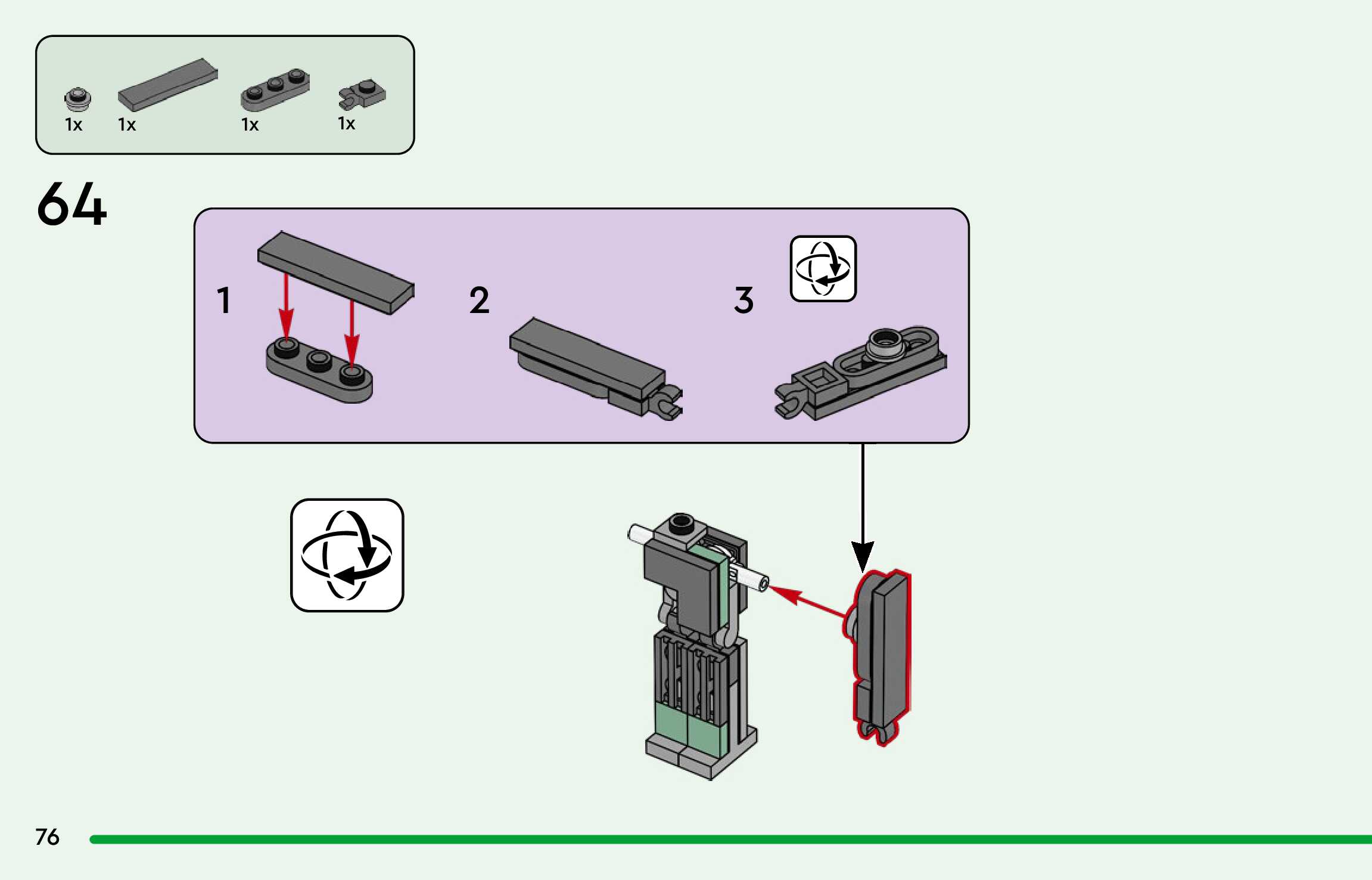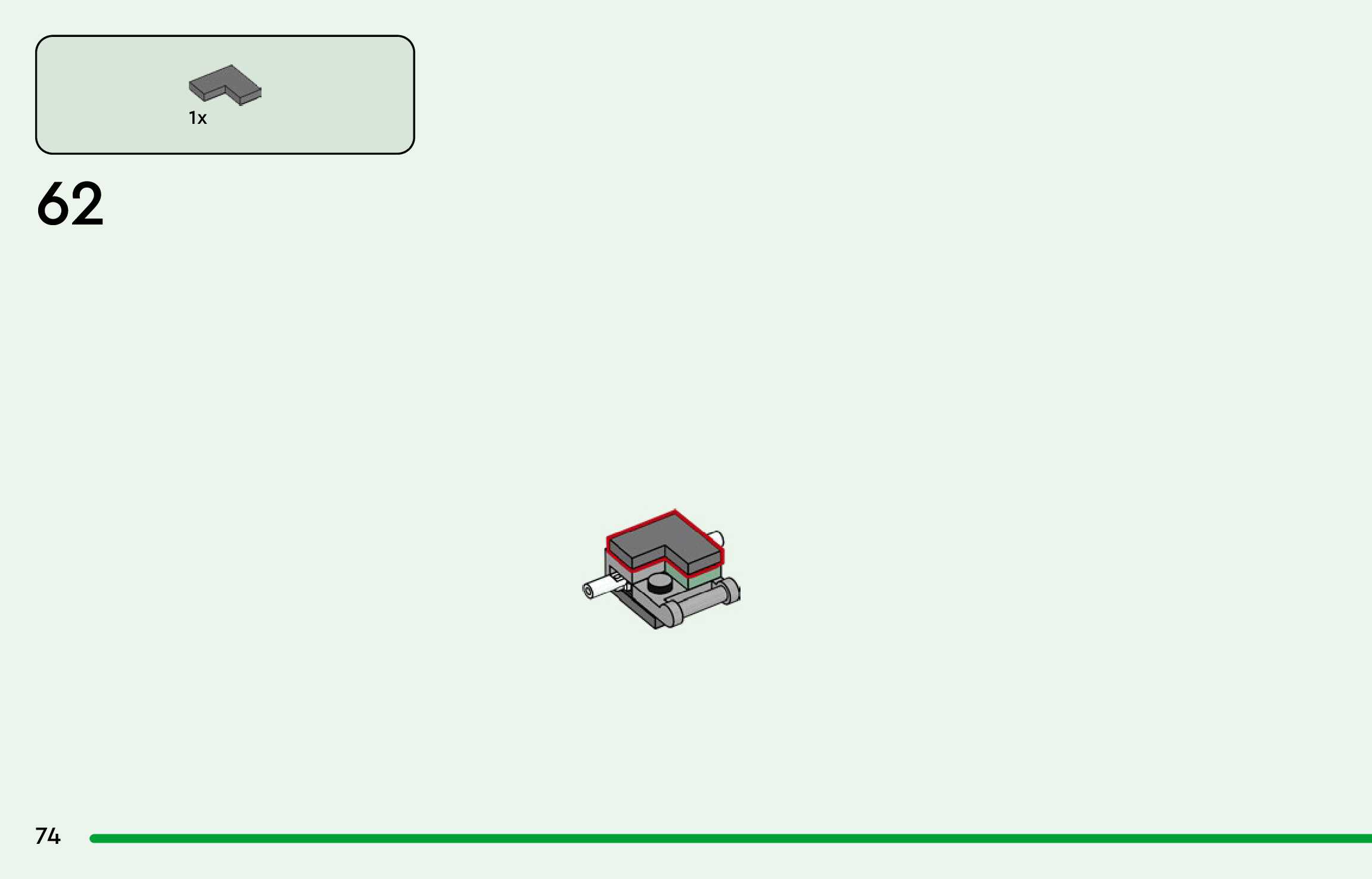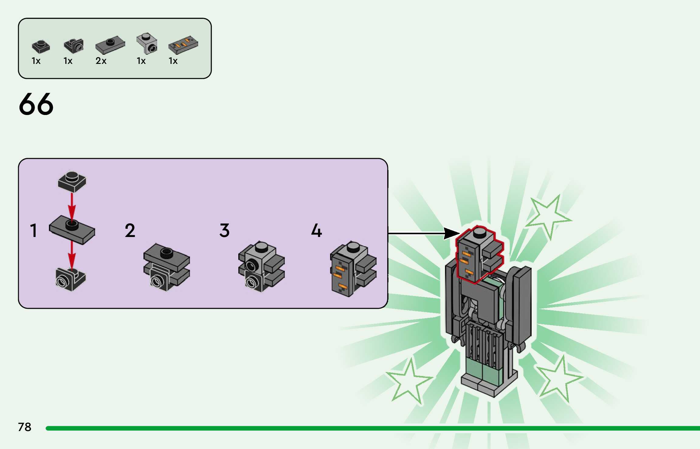 The assembly guide is prepared in a very understandable way for children and adult LEGO enthusiasts. A total of 84 picture galleries are shown, explaining the step-by-step construction stages for 1 different structures.