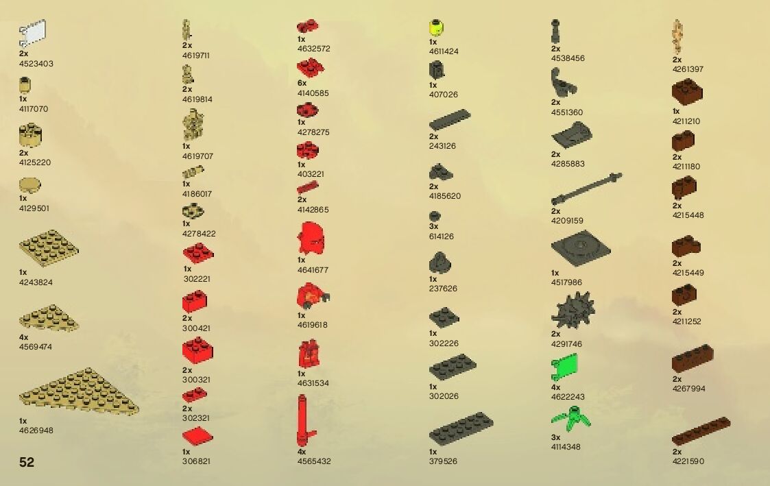 The assembly guide is prepared in a very understandable way for children and adult LEGO enthusiasts. A total of 60 picture galleries are shown, explaining the step-by-step construction stages for 1 different structures.