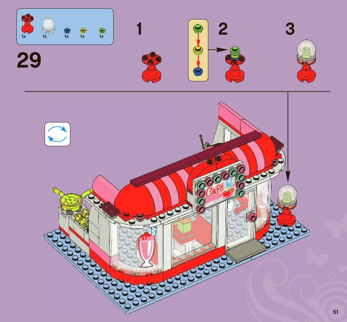 This page shares information about LEGO 3061 City Park Café manual, LEGO 3061 PDF instructions, LEGO 3061 City Park Café building guide online, How to build 3061 City Park Café LEGO.