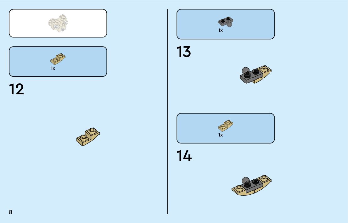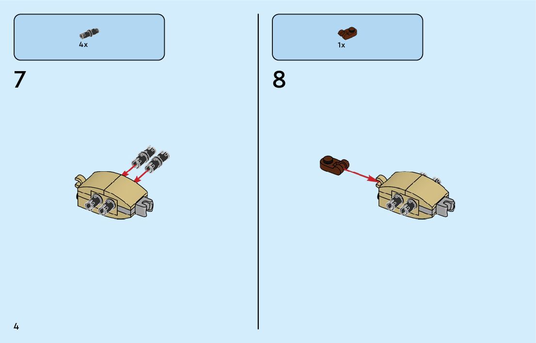 The assembly guide is prepared in a very understandable way for children and adult LEGO enthusiasts. A total of 28 picture galleries are shown, explaining the step-by-step construction stages for 3 different structures.