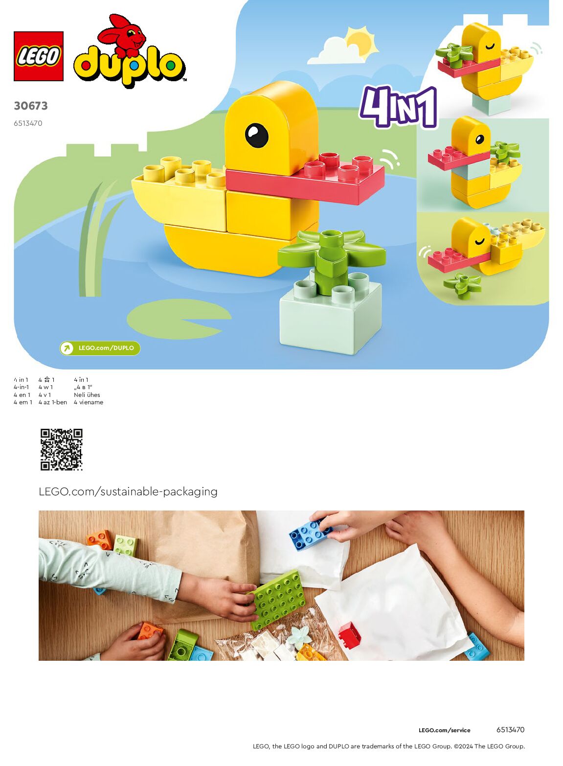 On this page you can find the original construction manual for the LEGO 30673 set. With the assembly manual you can easily learn how to build the 30673 My First Duck step by step. The set was released in 2024.