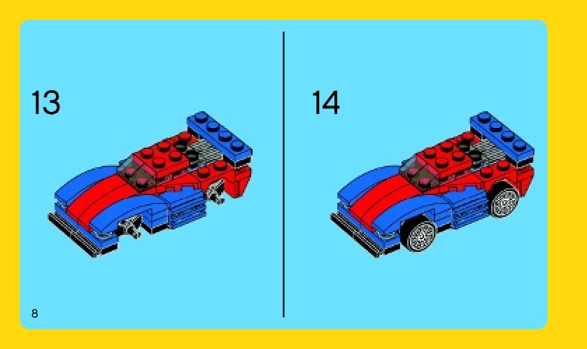 This page shares information about LEGO 31000 Mini Speeder manual, LEGO 31000 PDF instructions, LEGO 31000 Mini Speeder building guide online, How to build 31000 Mini Speeder LEGO.