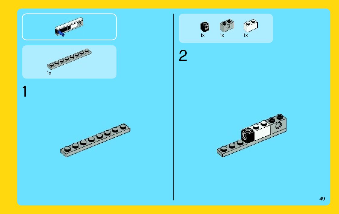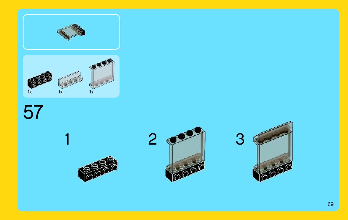 The assembly guide is prepared in a very understandable way for children and adult LEGO enthusiasts. A total of 196 picture galleries are shown, explaining the step-by-step construction stages for 3 different structures.