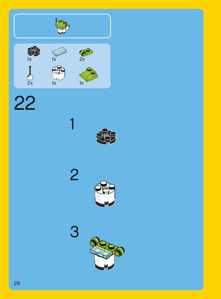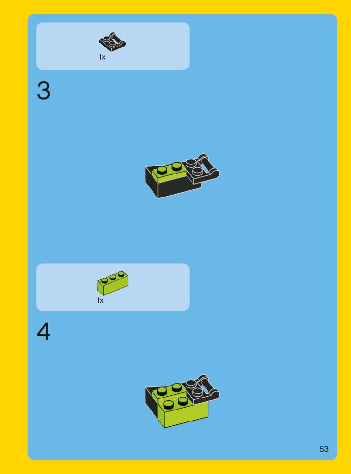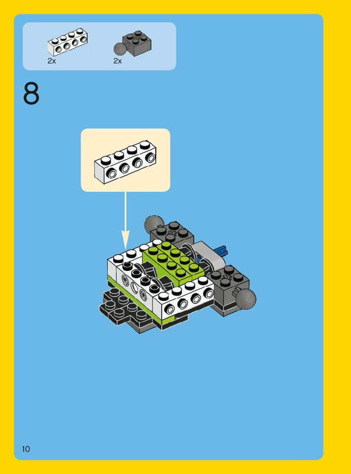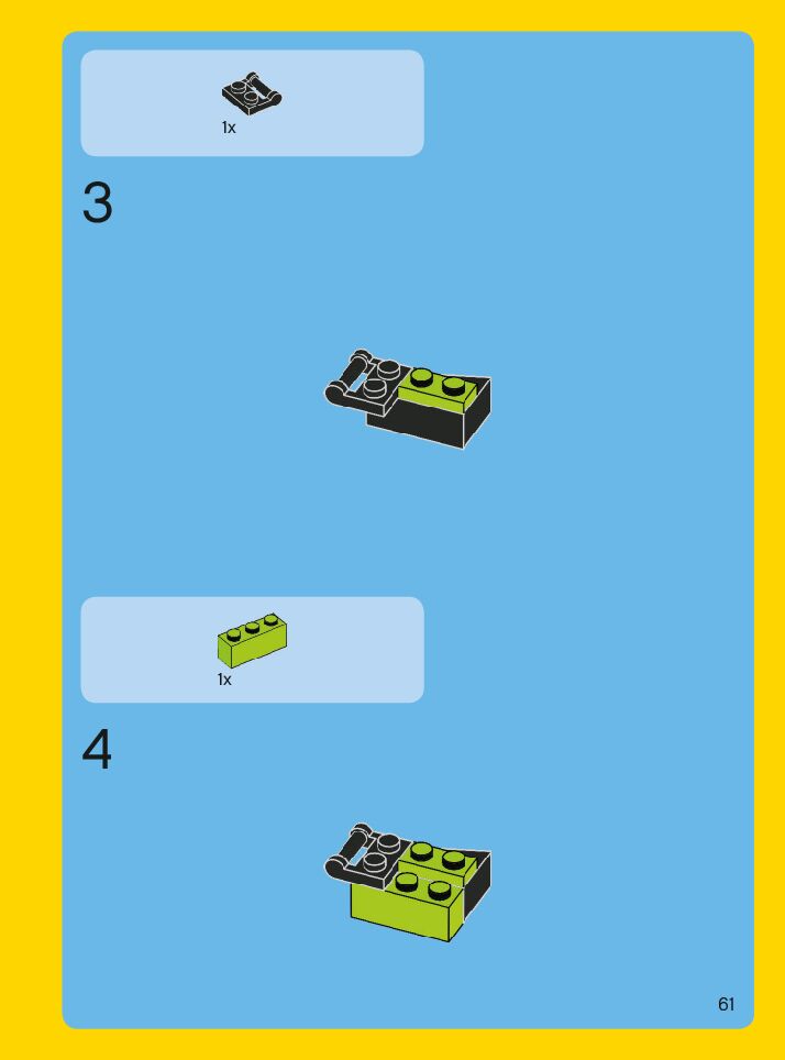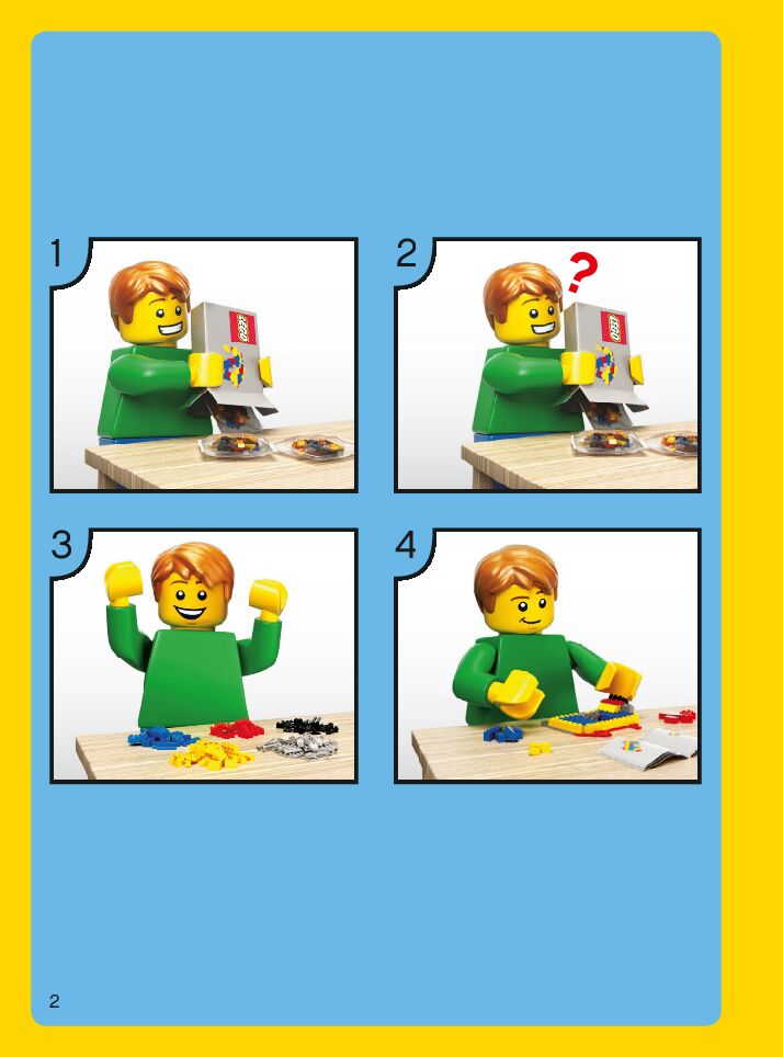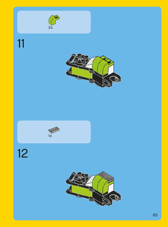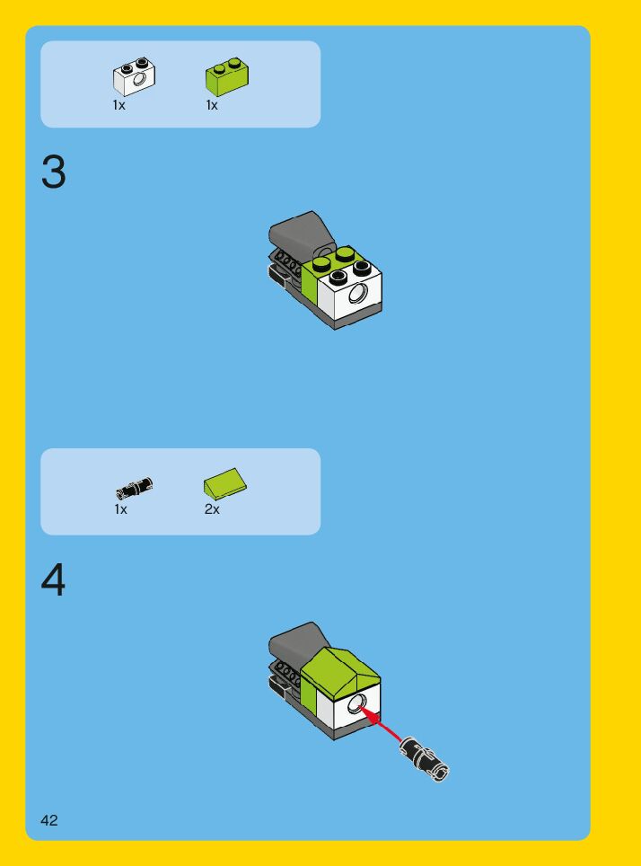 The assembly guide is prepared in a very understandable way for children and adult LEGO enthusiasts. A total of 172 picture galleries are shown, explaining the step-by-step construction stages for 3 different structures.