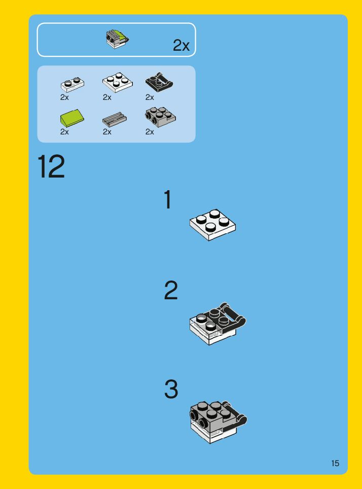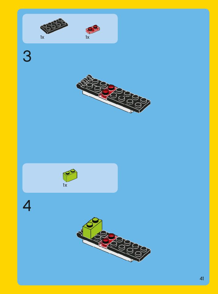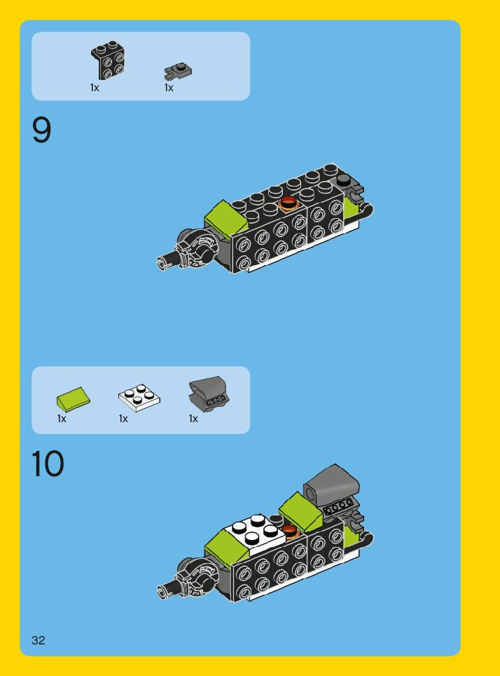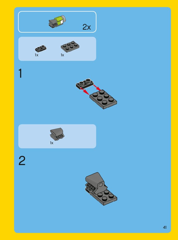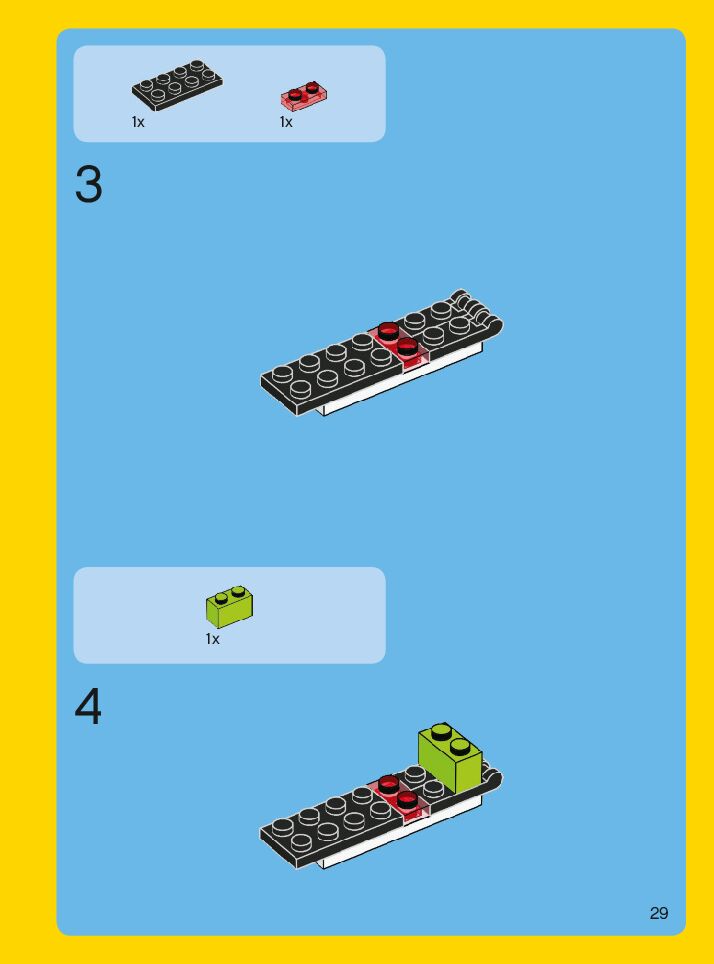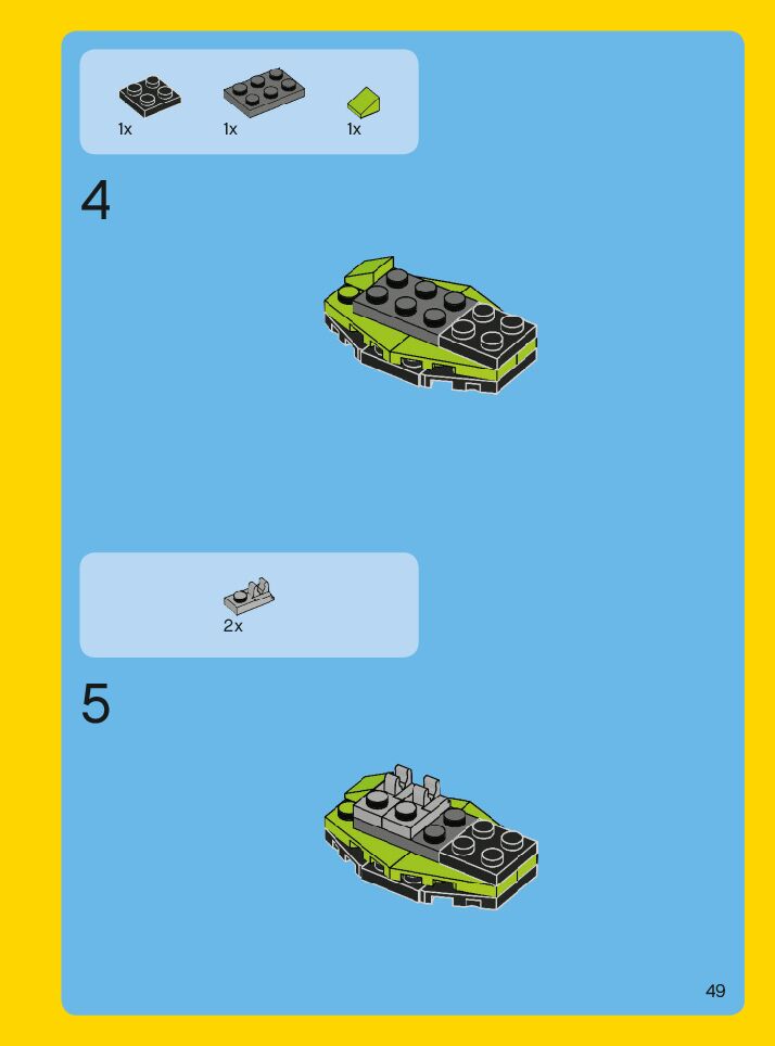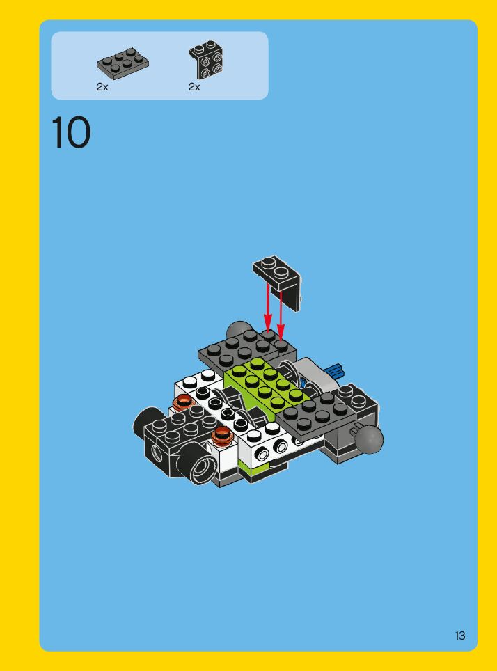 The assembly guide is prepared in a very understandable way for children and adult LEGO enthusiasts. A total of 172 picture galleries are shown, explaining the step-by-step construction stages for 3 different structures.