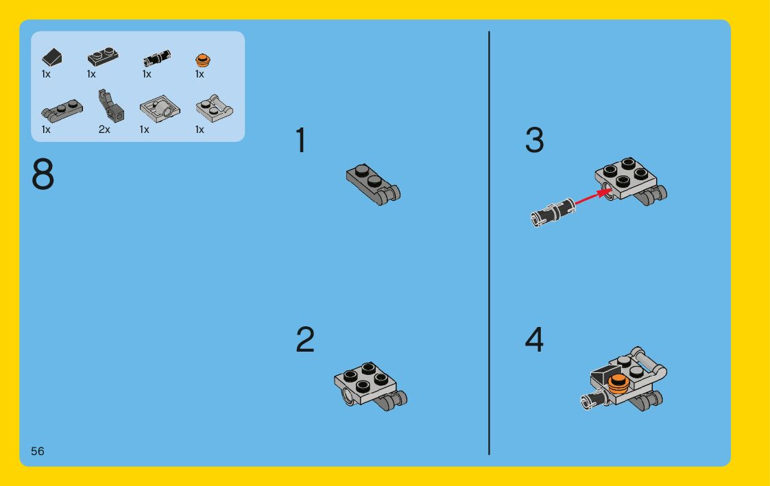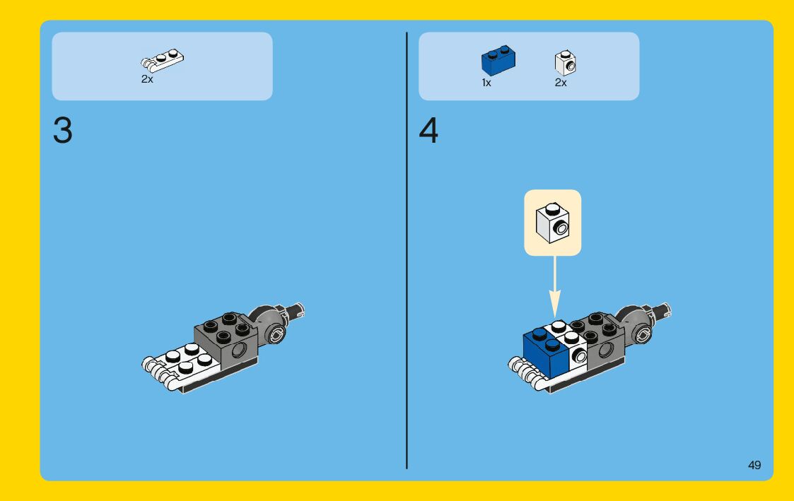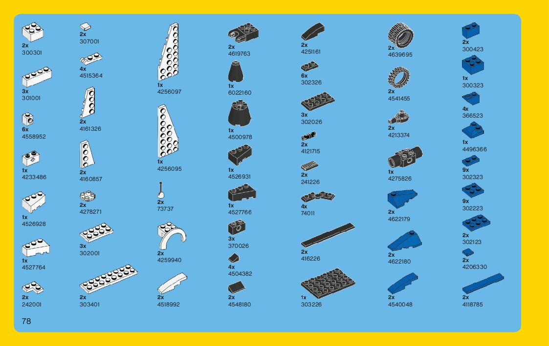 The assembly guide is prepared in a very understandable way for children and adult LEGO enthusiasts. A total of 204 picture galleries are shown, explaining the step-by-step construction stages for 3 different structures.