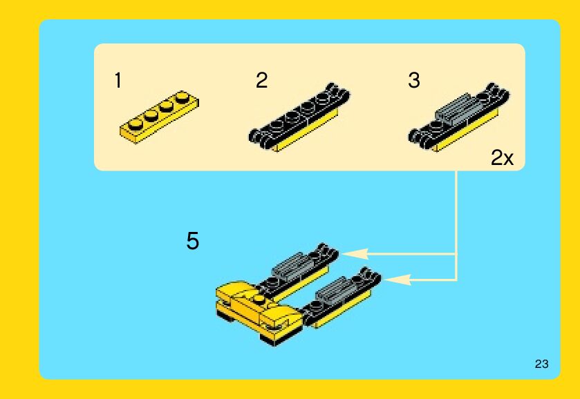 The assembly guide is prepared in a very understandable way for children and adult LEGO enthusiasts. A total of 36 picture galleries are shown, explaining the step-by-step construction stages for 1 different structures.