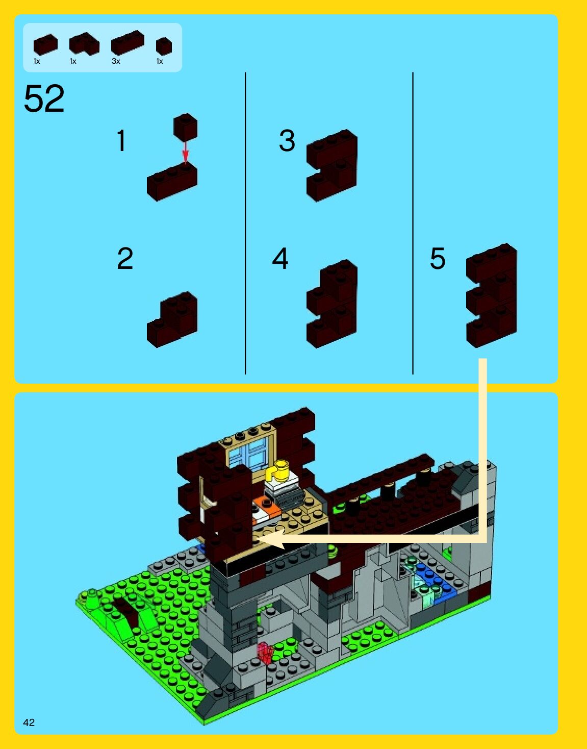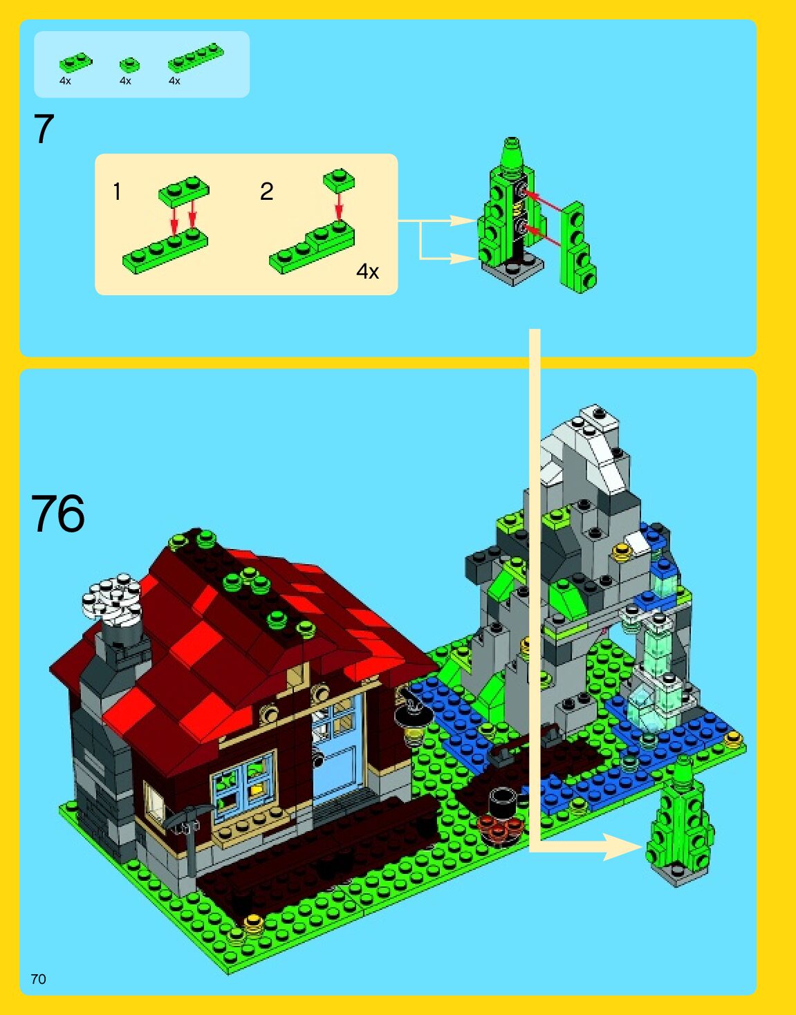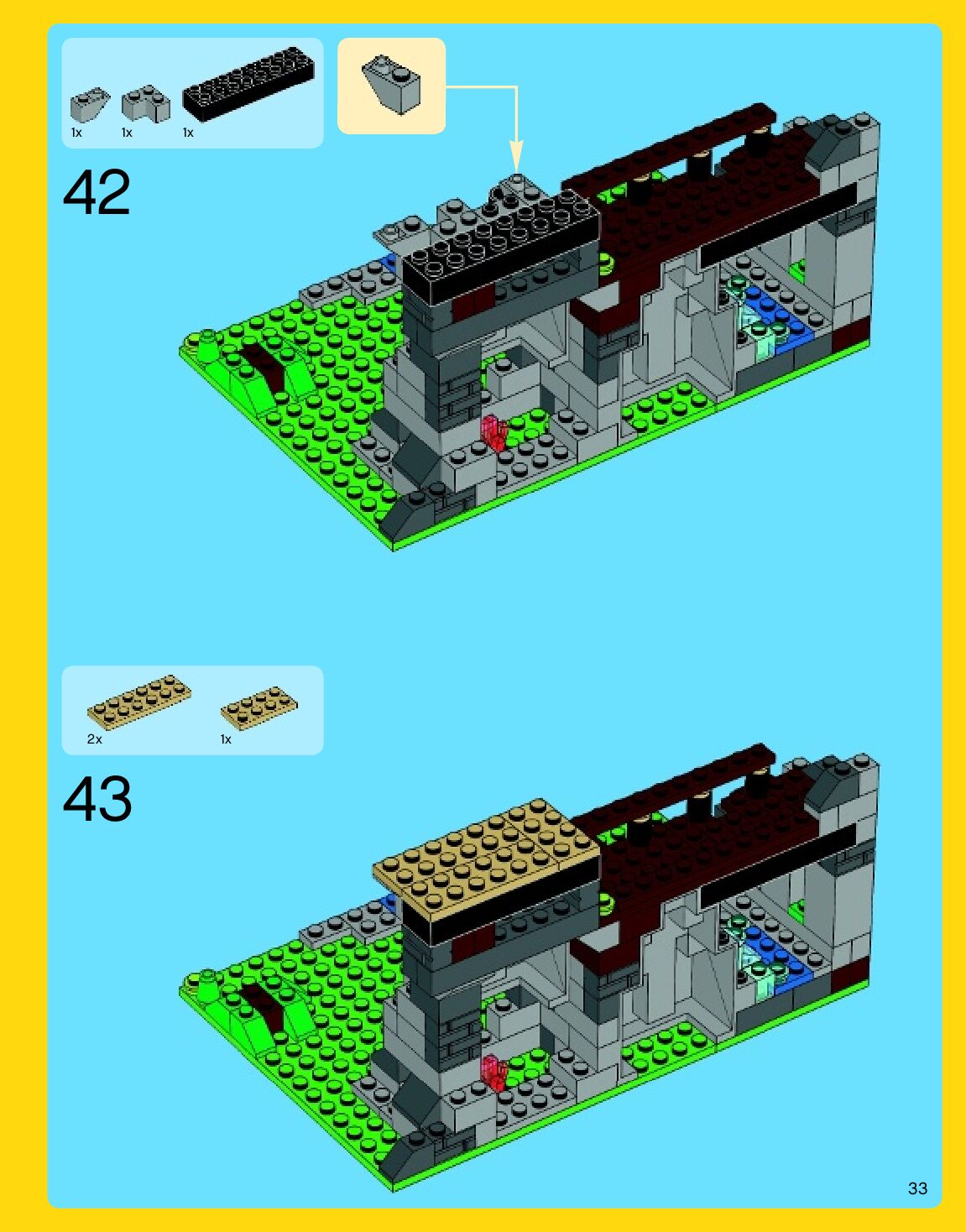 The assembly guide is prepared in a very understandable way for children and adult LEGO enthusiasts. A total of 192 picture galleries are shown, explaining the step-by-step construction stages for 3 different structures.