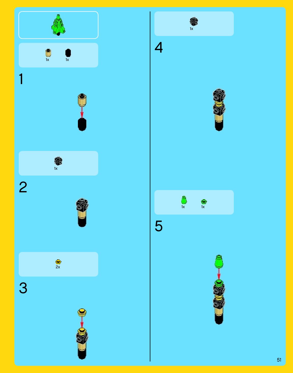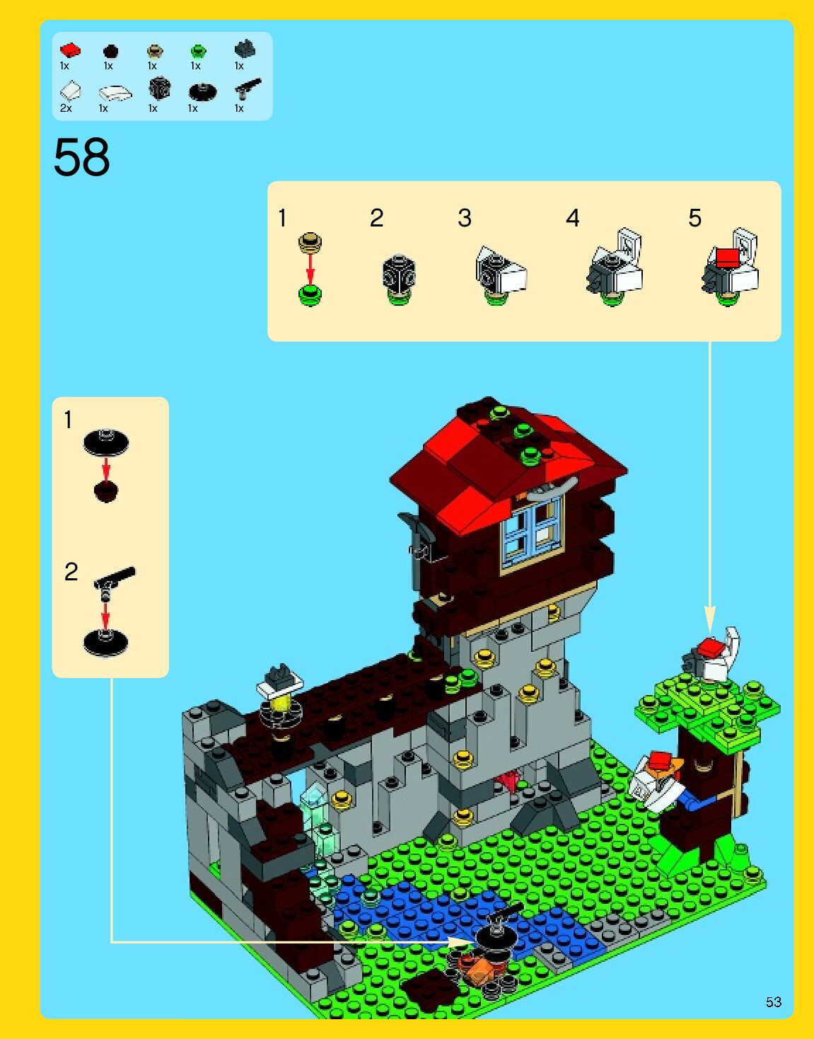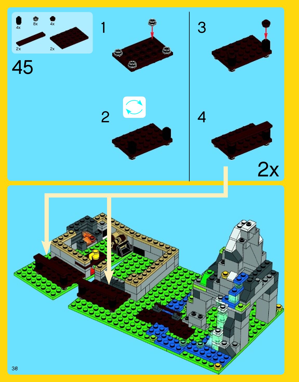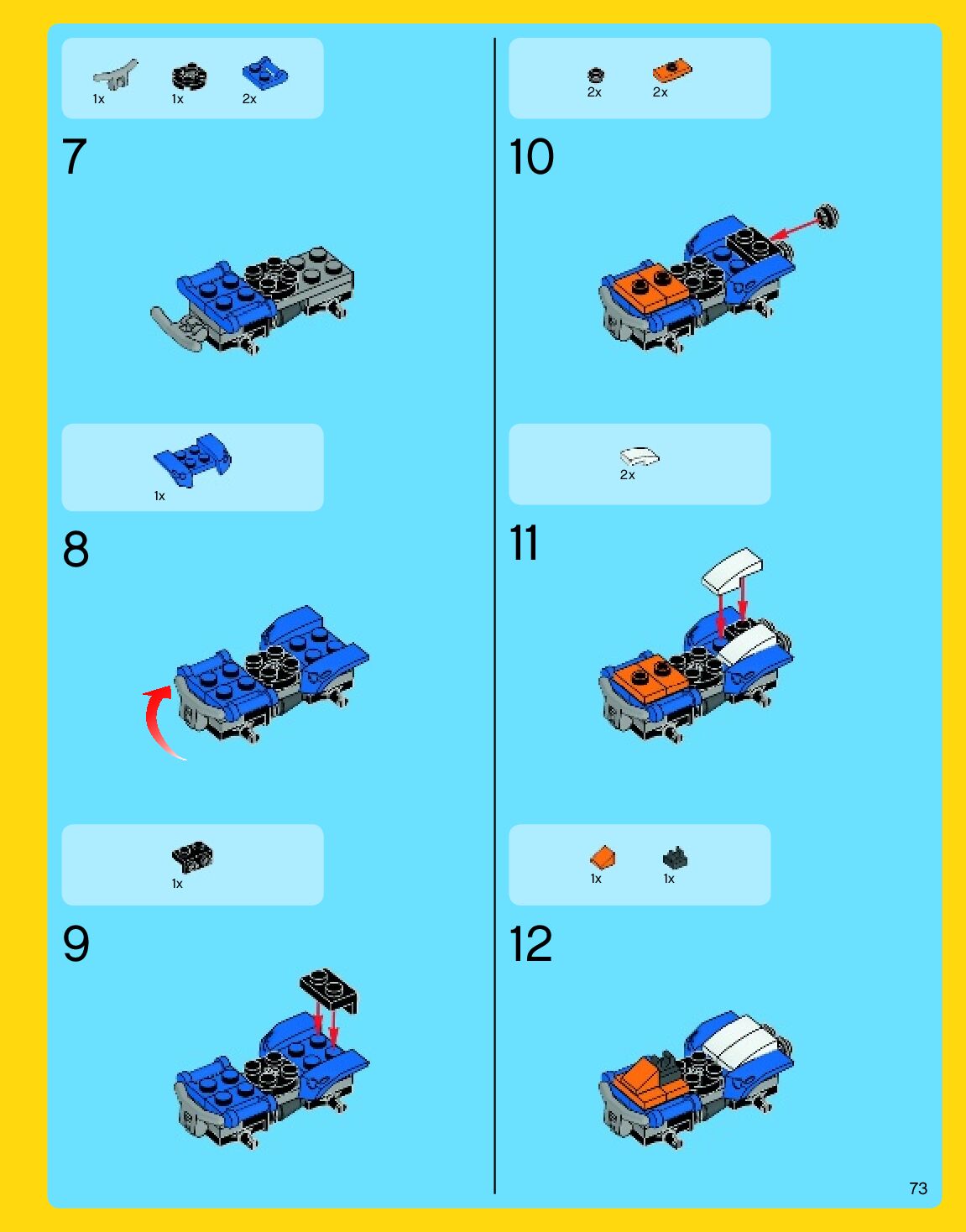 The assembly guide is prepared in a very understandable way for children and adult LEGO enthusiasts. A total of 192 picture galleries are shown, explaining the step-by-step construction stages for 3 different structures.