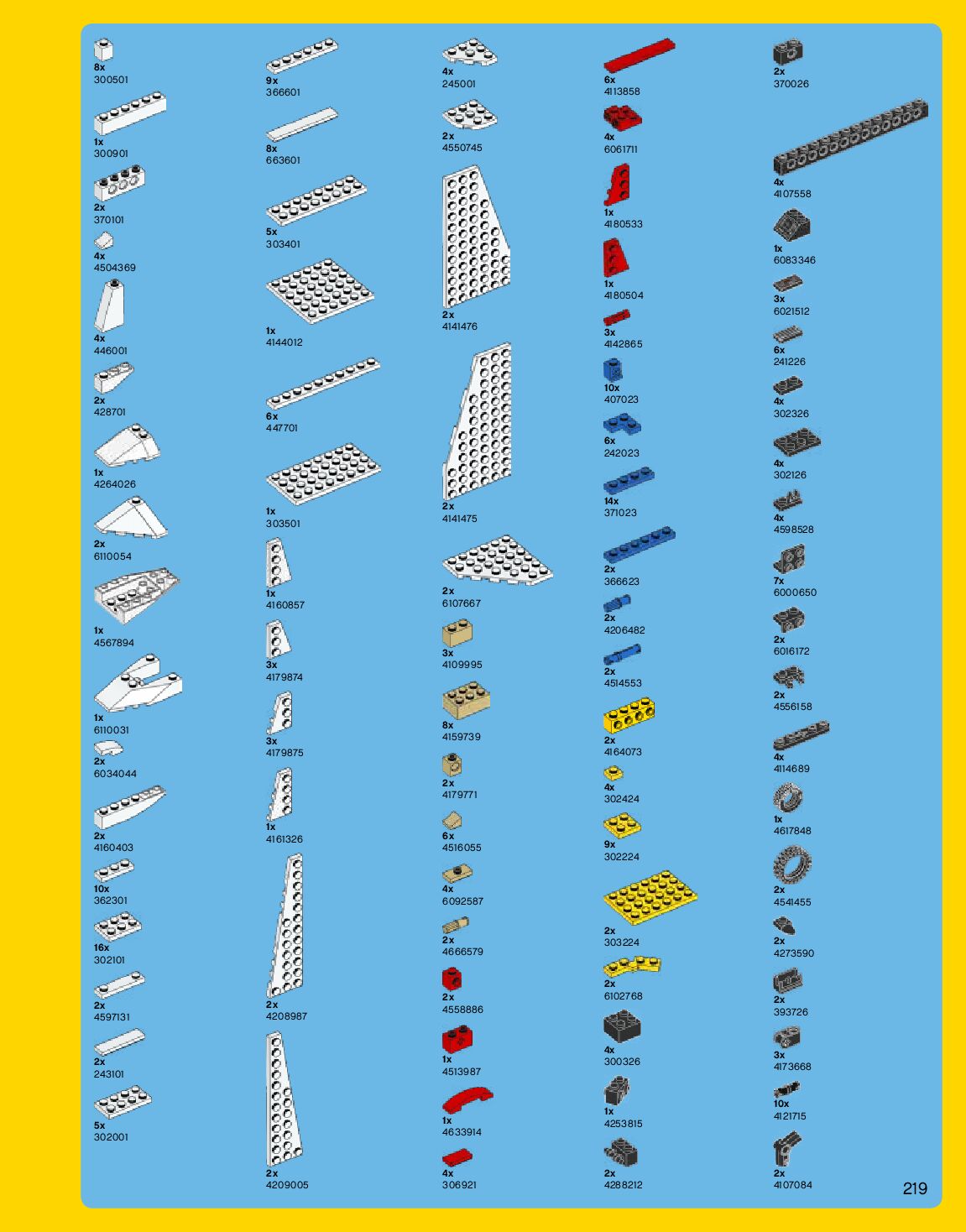 The assembly guide is prepared in a very understandable way for children and adult LEGO enthusiasts. A total of 224 picture galleries are shown, explaining the step-by-step construction stages for 1 different structures.