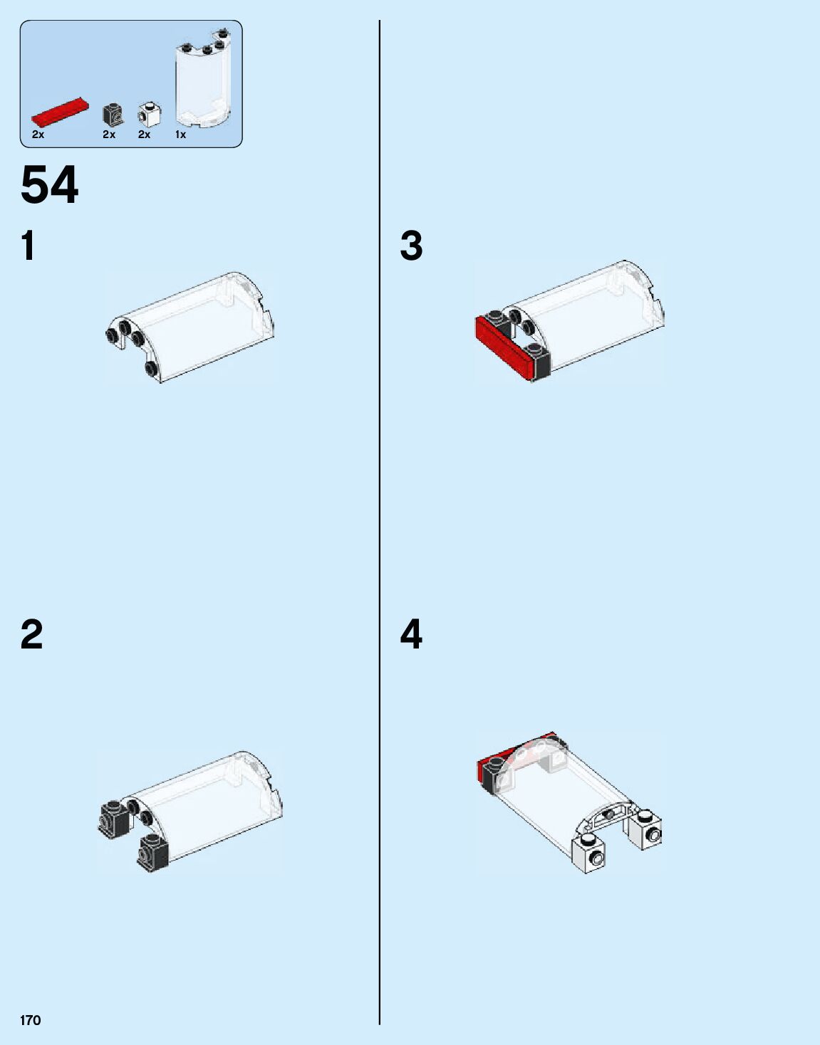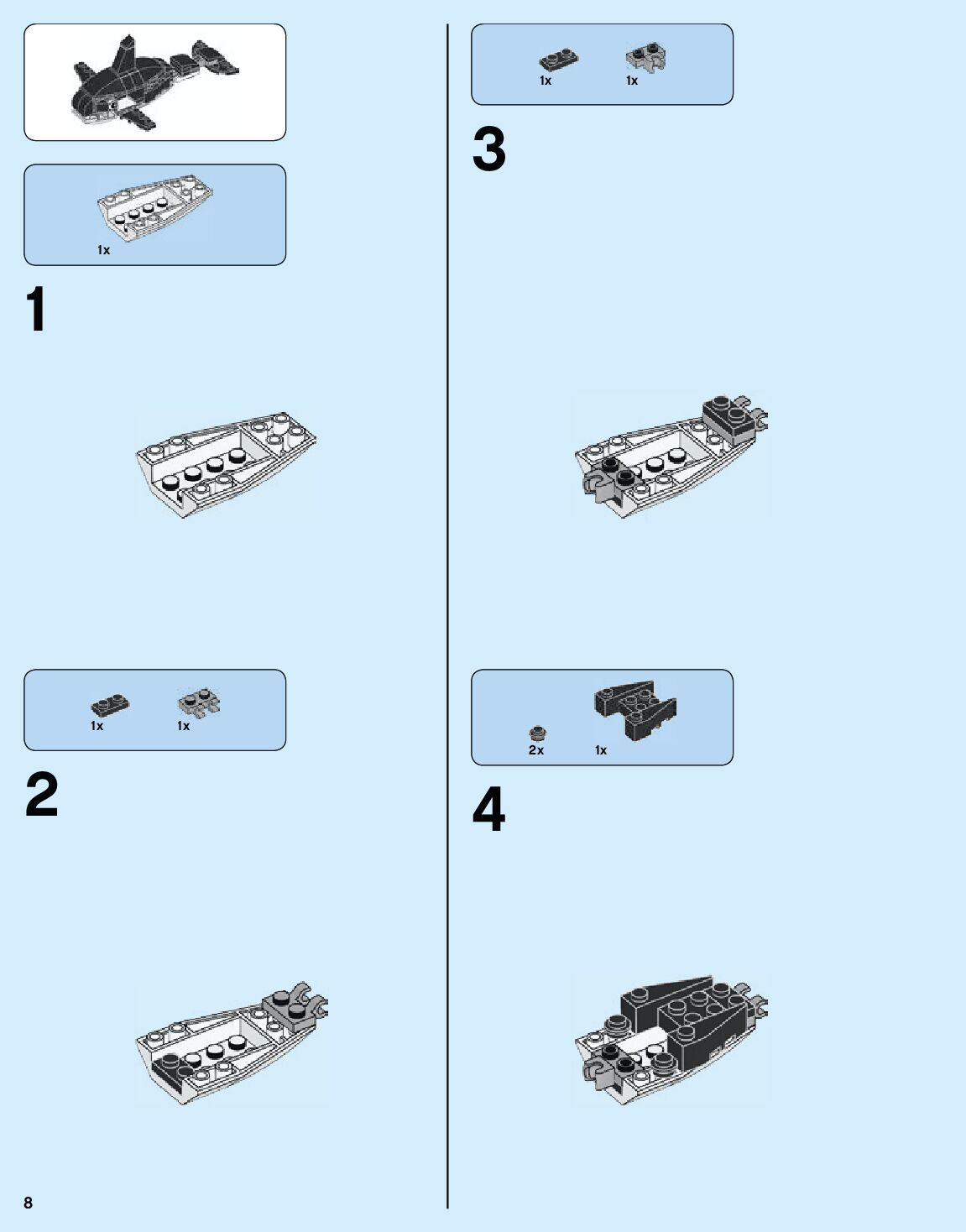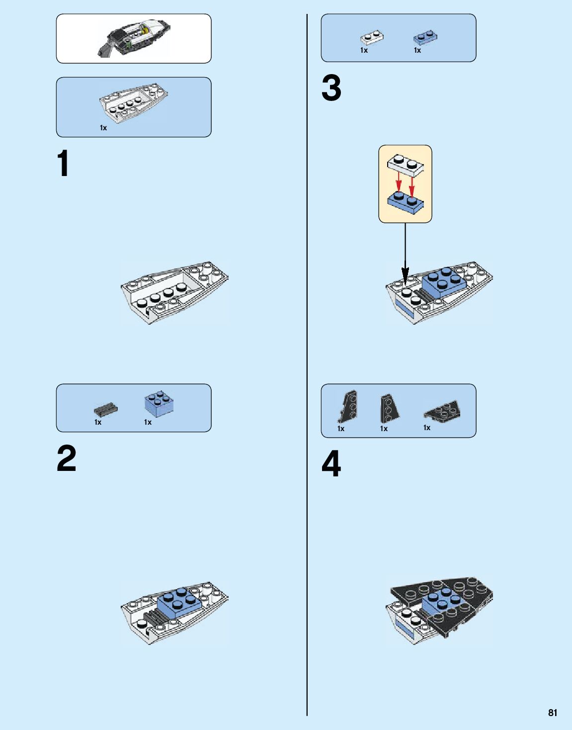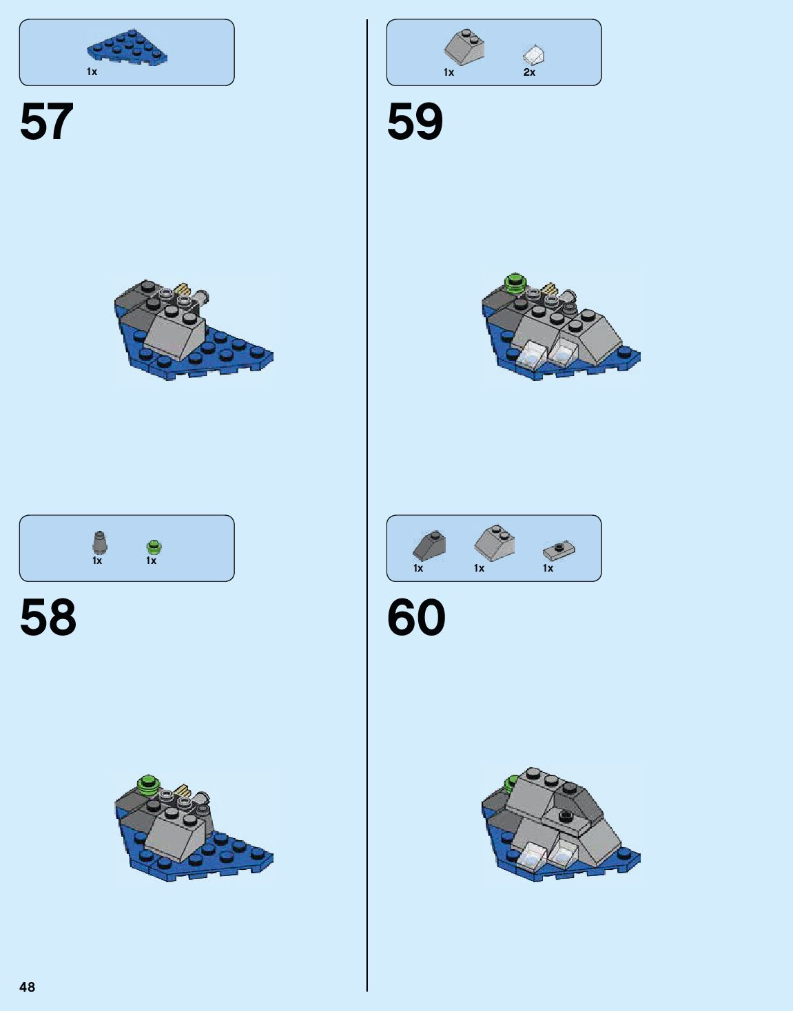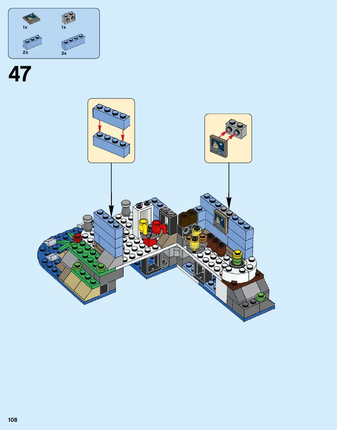 The assembly guide is prepared in a very understandable way for children and adult LEGO enthusiasts. A total of 184 picture galleries are shown, explaining the step-by-step construction stages for 1 different structures.