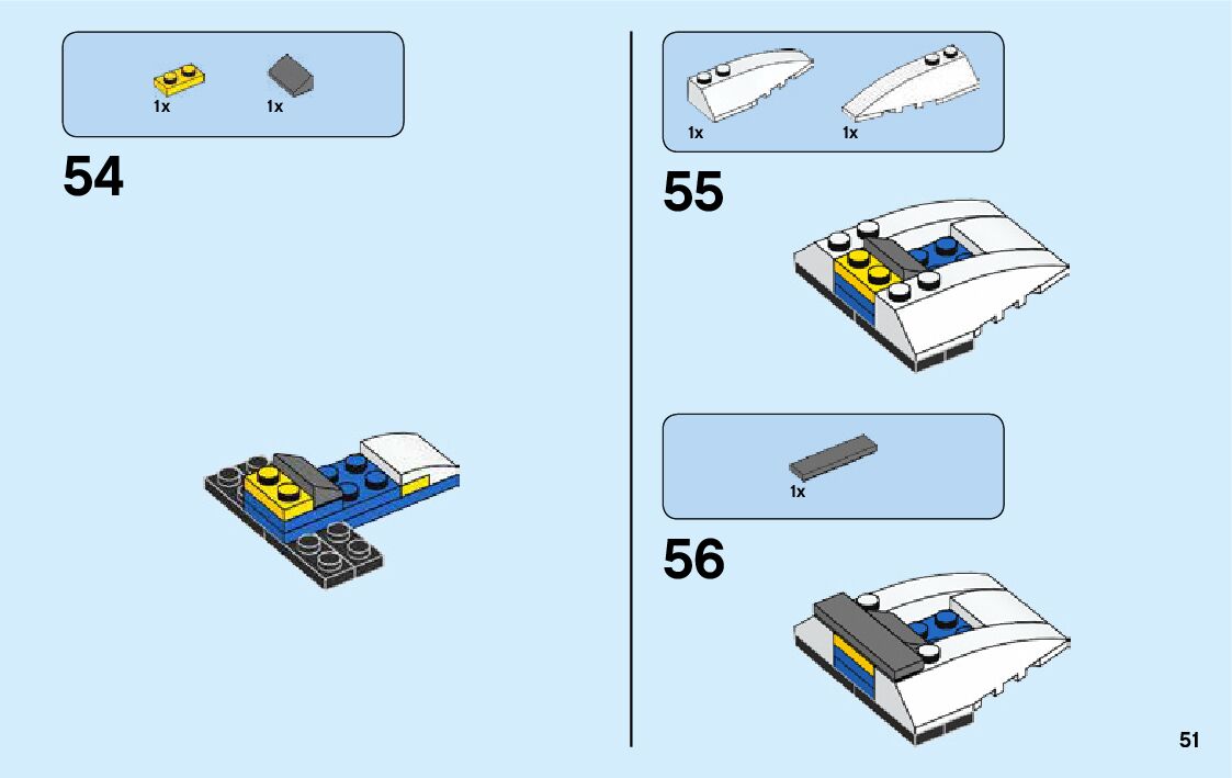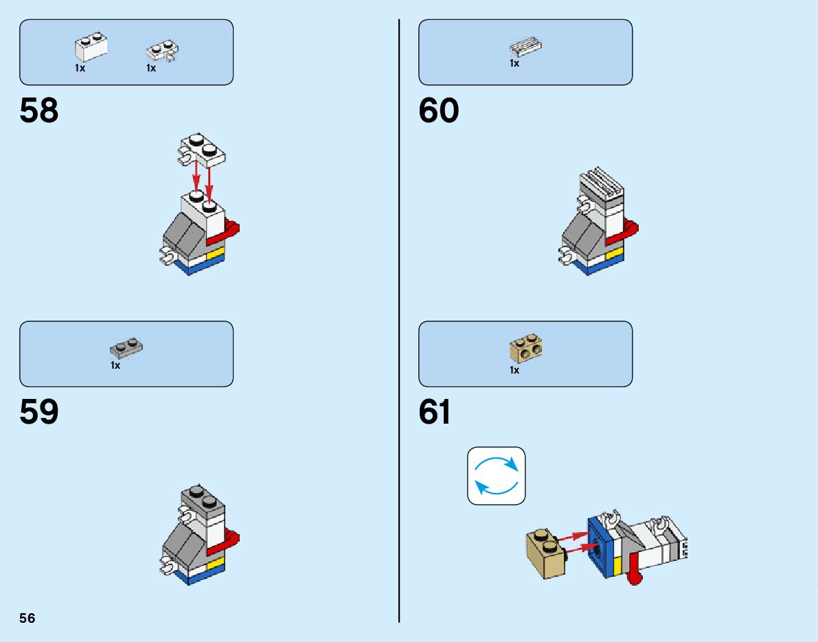 The assembly guide is prepared in a very understandable way for children and adult LEGO enthusiasts. A total of 180 picture galleries are shown, explaining the step-by-step construction stages for 3 different structures.