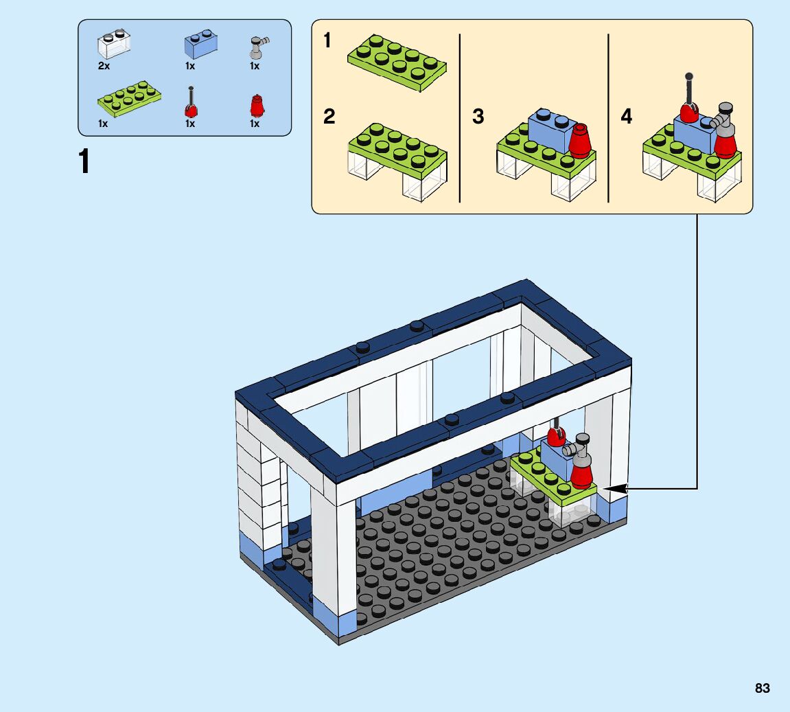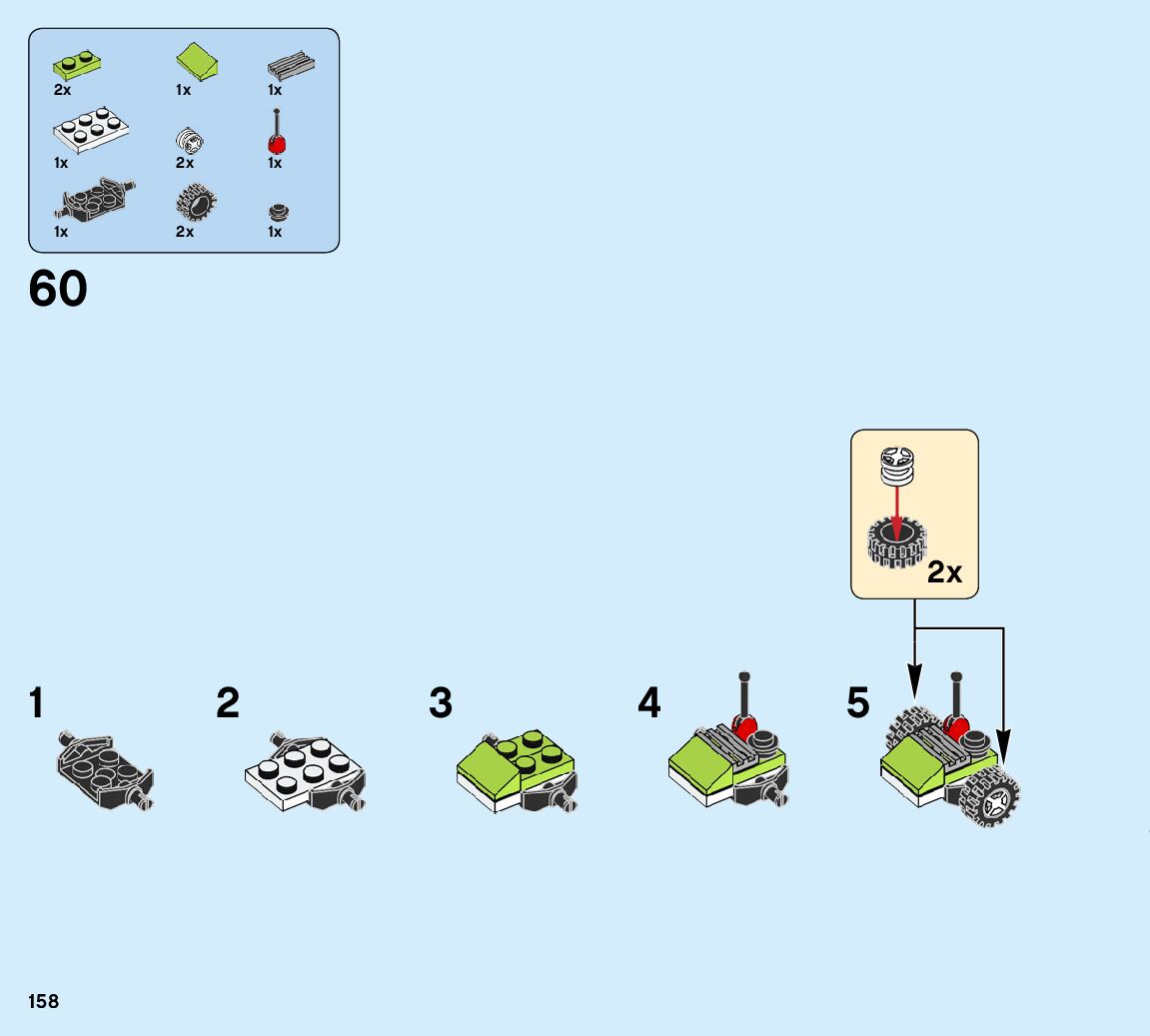 The assembly guide is prepared in a very understandable way for children and adult LEGO enthusiasts. A total of 164 picture galleries are shown, explaining the step-by-step construction stages for 1 different structures.