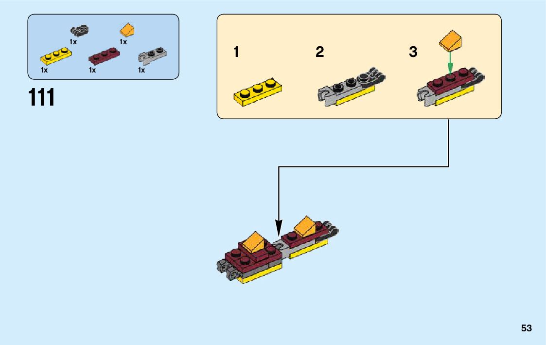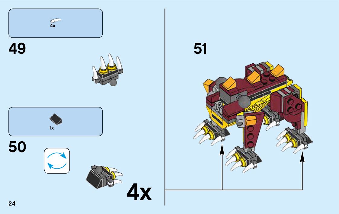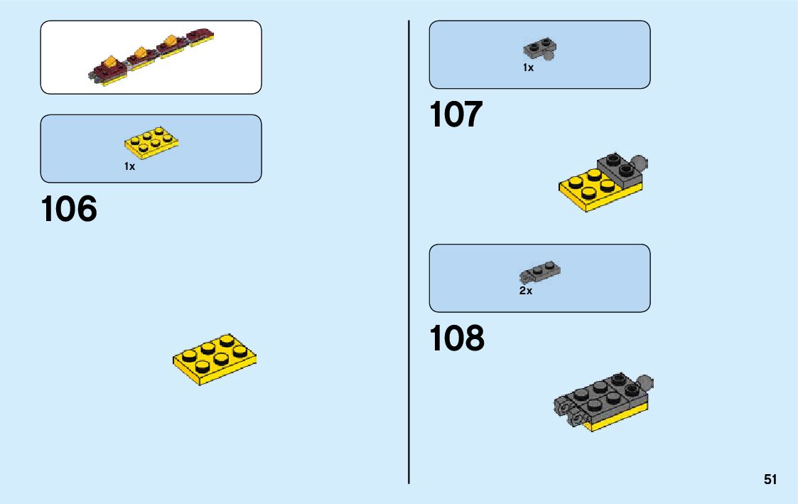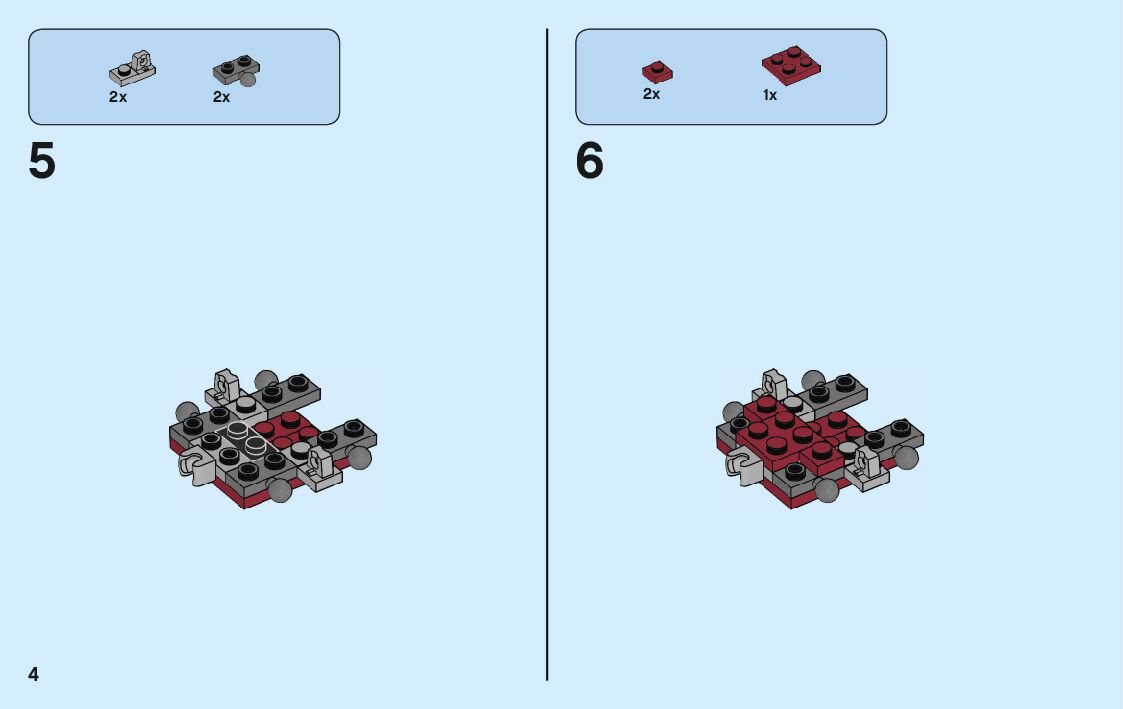 The assembly guide is prepared in a very understandable way for children and adult LEGO enthusiasts. A total of 189 picture galleries are shown, explaining the step-by-step construction stages for 4 different structures.