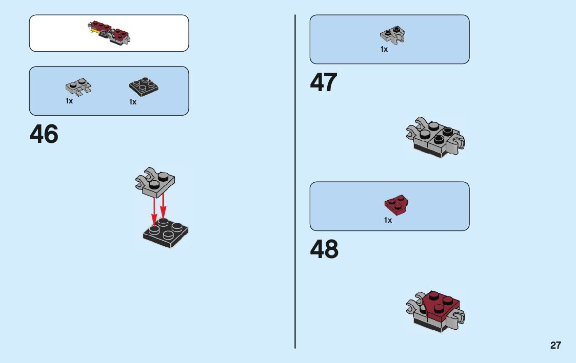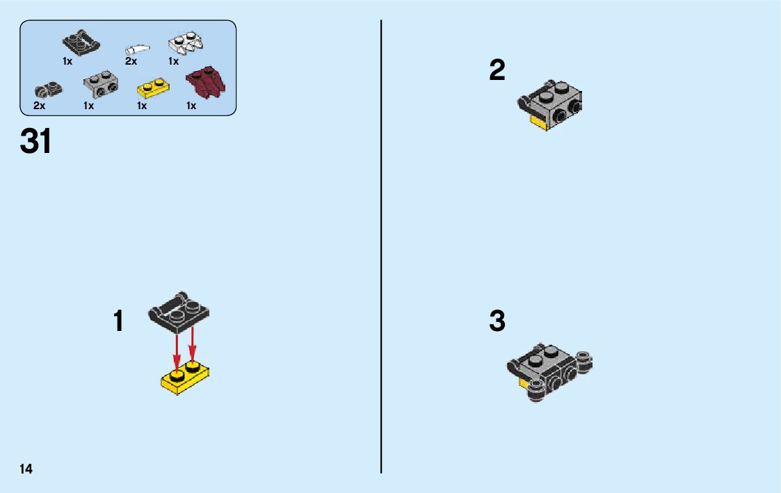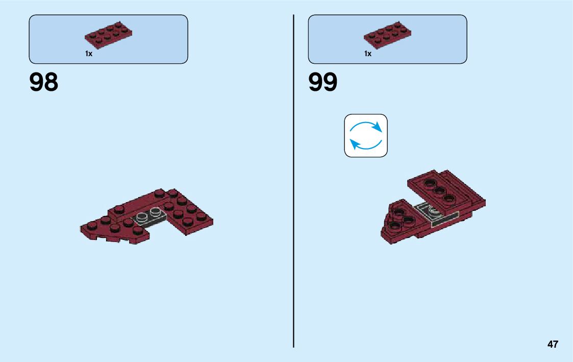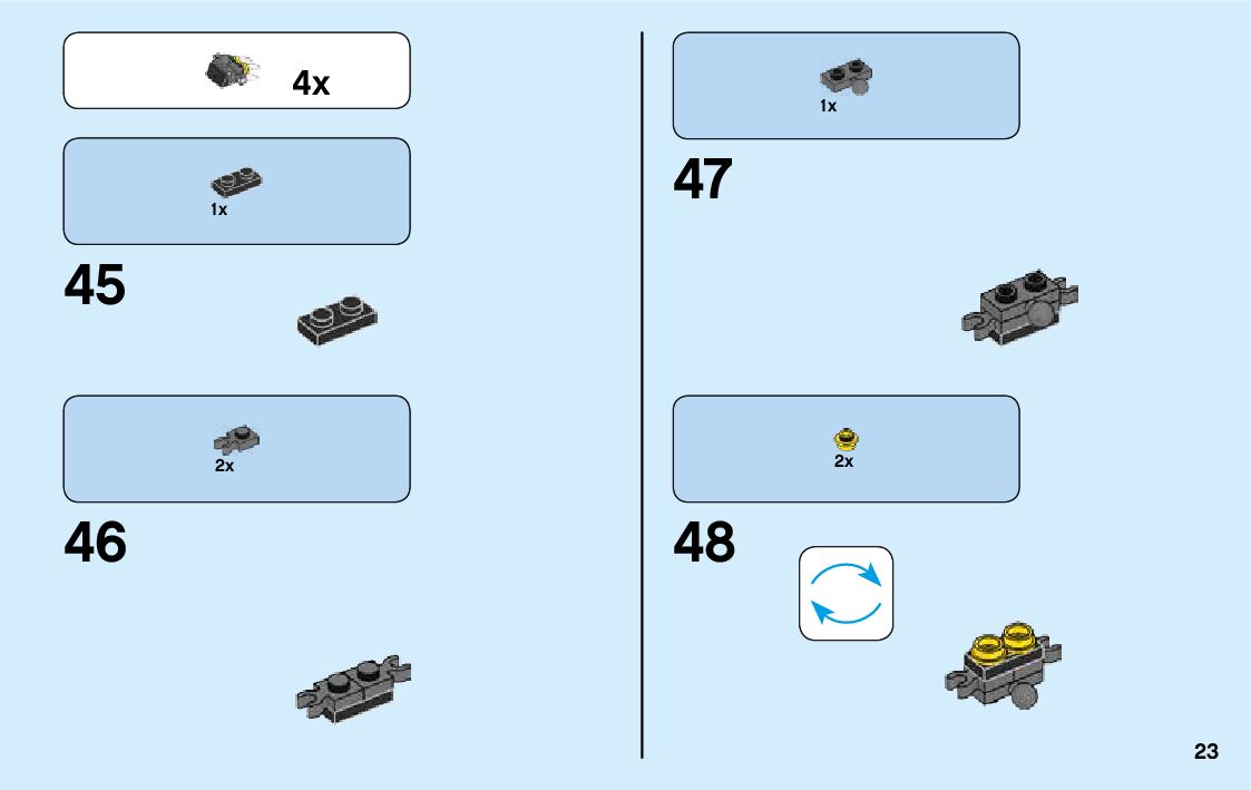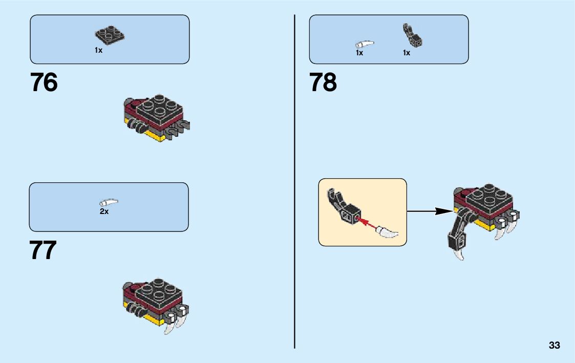 The assembly guide is prepared in a very understandable way for children and adult LEGO enthusiasts. A total of 189 picture galleries are shown, explaining the step-by-step construction stages for 4 different structures.