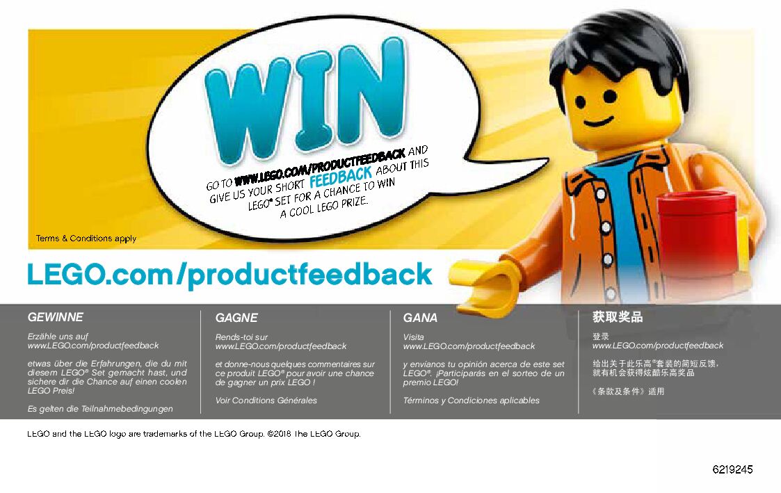 The assembly guide is prepared in a very understandable way for children and adult LEGO enthusiasts. A total of 120 picture galleries are shown, explaining the step-by-step construction stages for 3 different structures.