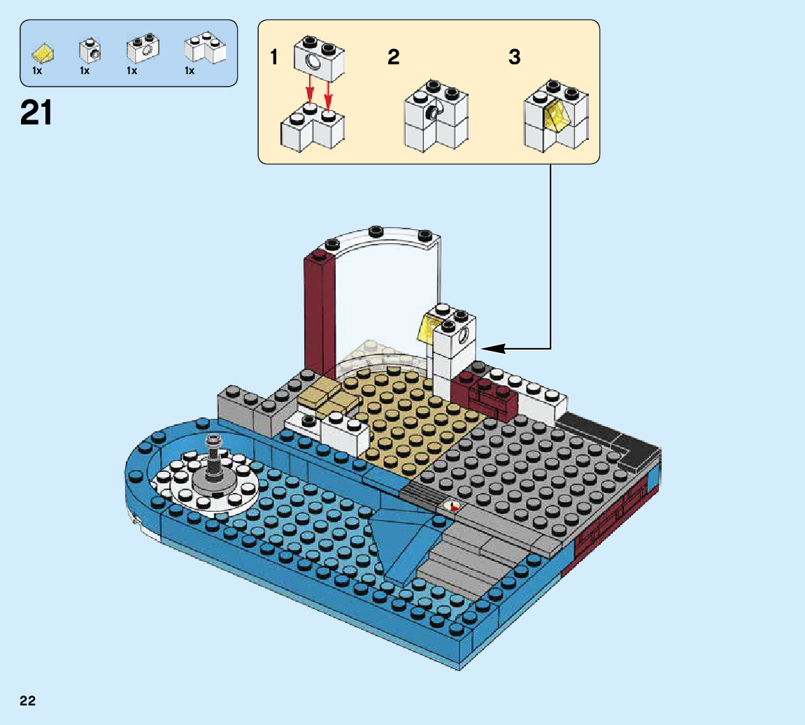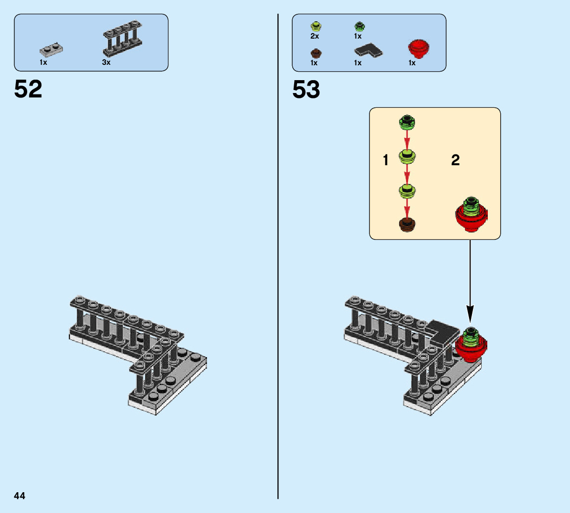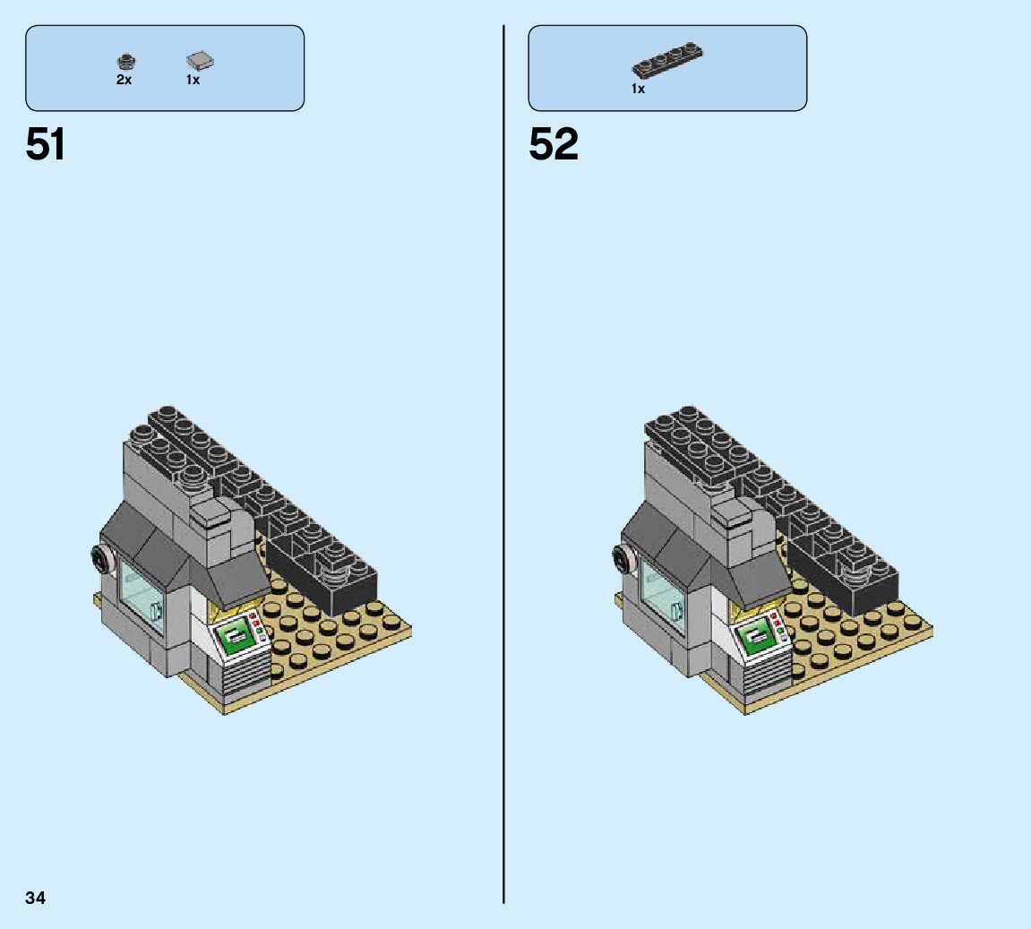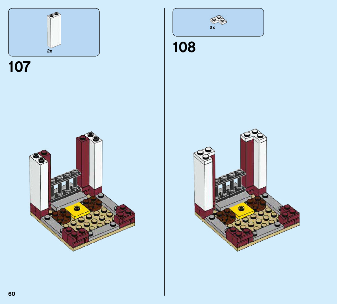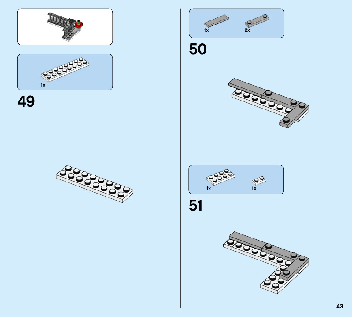 The assembly guide is prepared in a very understandable way for children and adult LEGO enthusiasts. A total of 184 picture galleries are shown, explaining the step-by-step construction stages for 3 different structures.