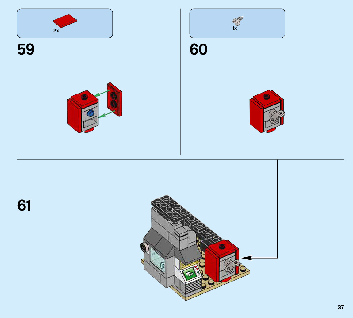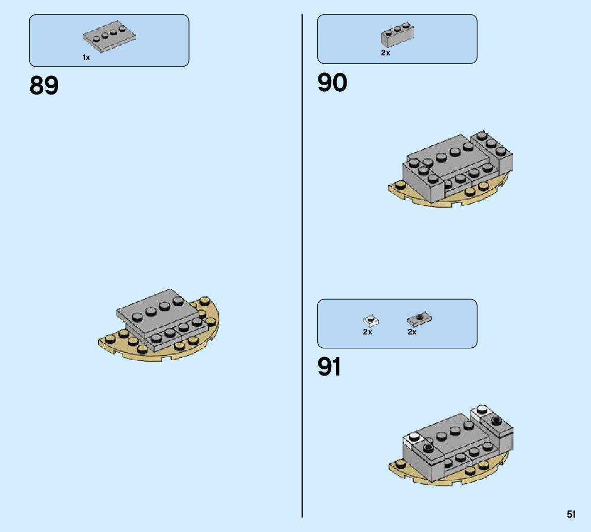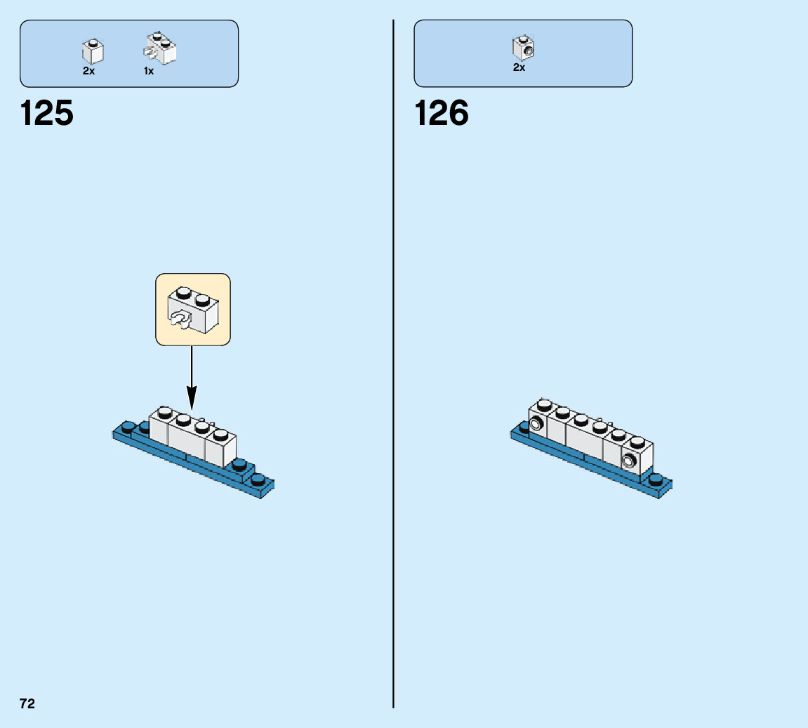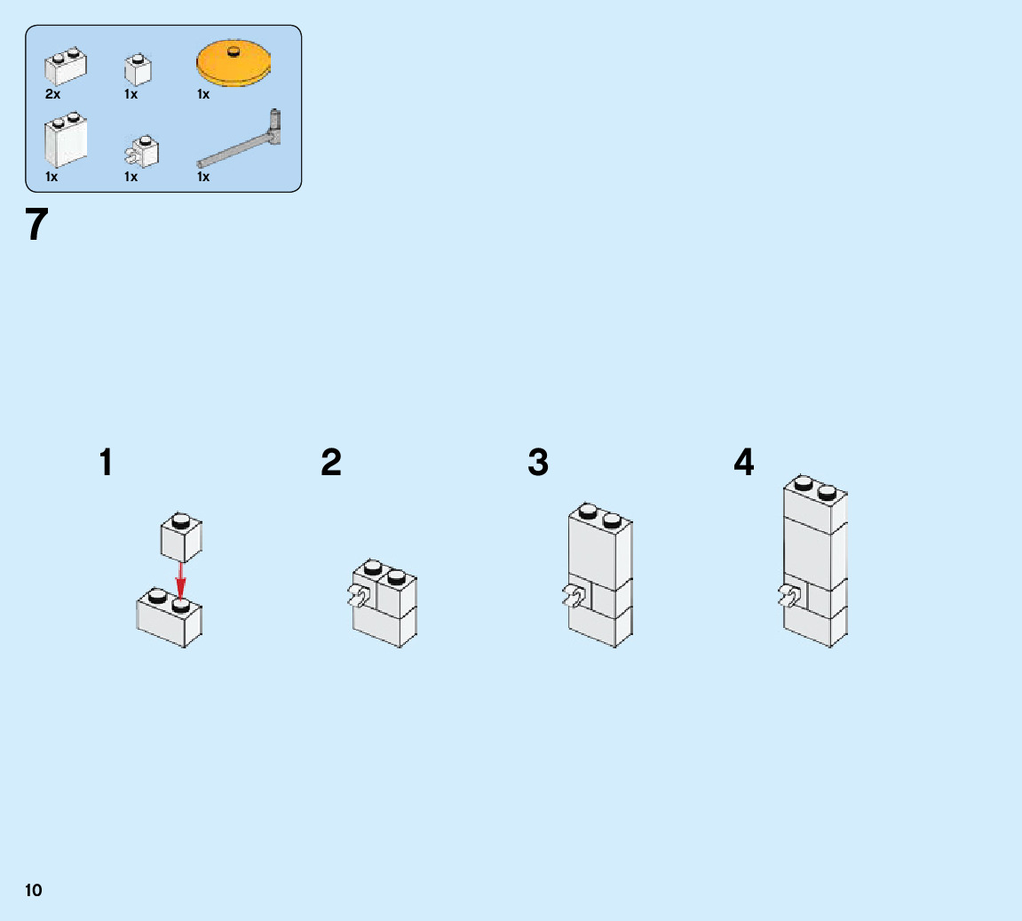 The assembly guide is prepared in a very understandable way for children and adult LEGO enthusiasts. A total of 184 picture galleries are shown, explaining the step-by-step construction stages for 3 different structures.