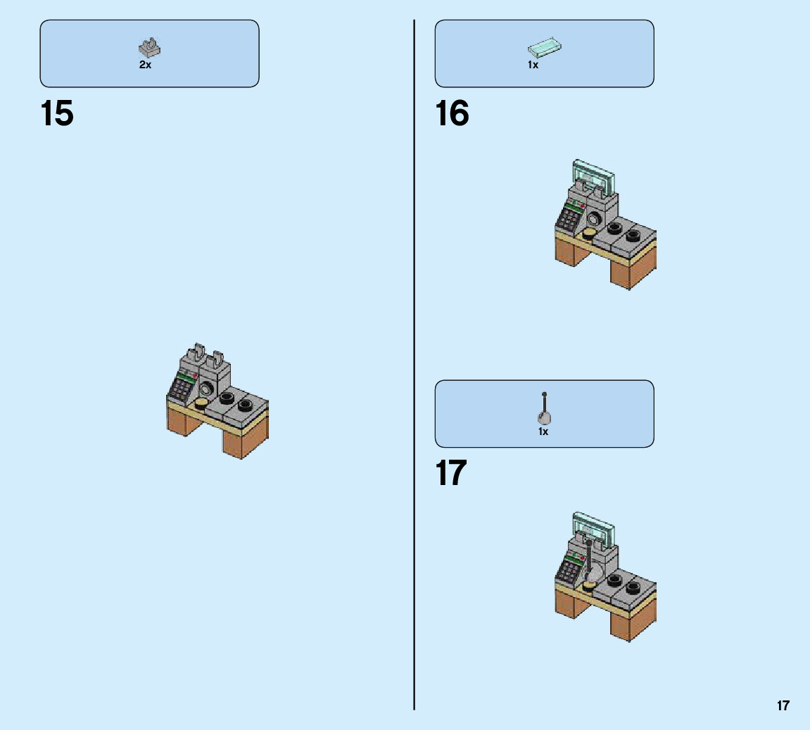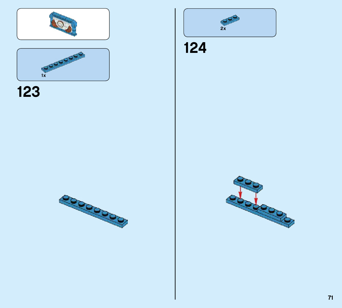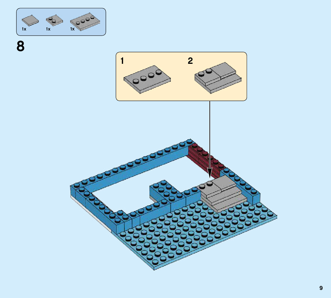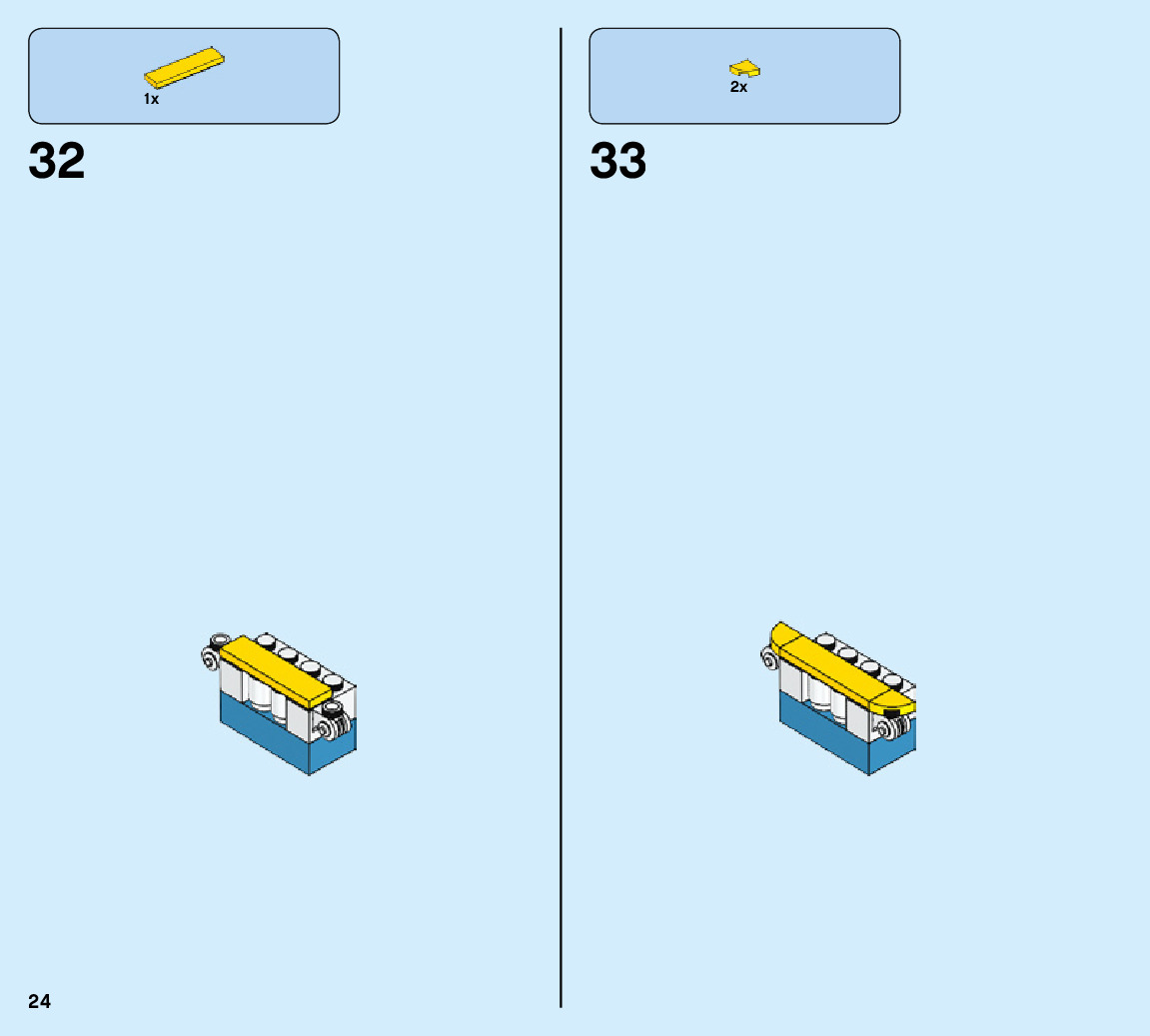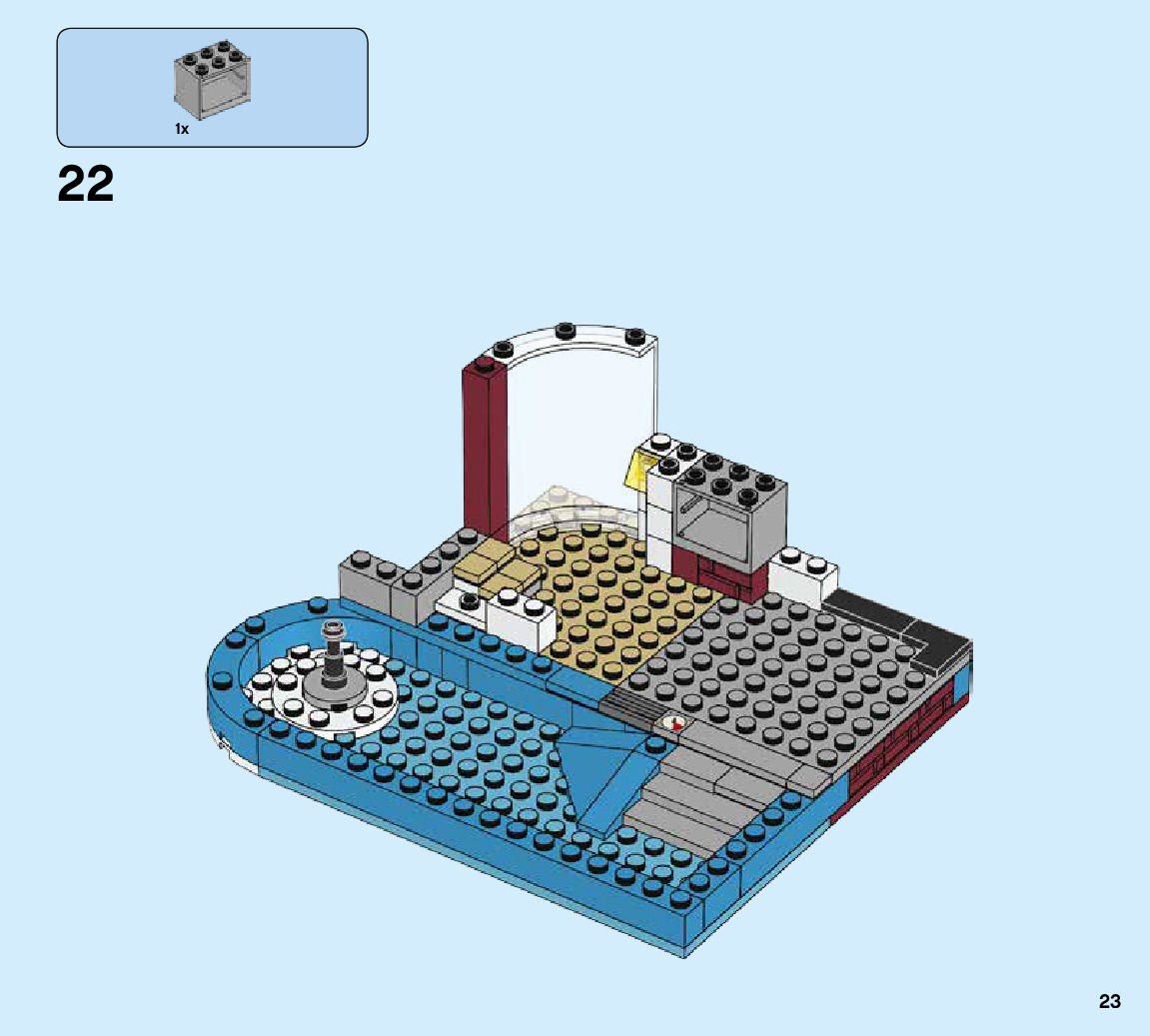 The assembly guide is prepared in a very understandable way for children and adult LEGO enthusiasts. A total of 184 picture galleries are shown, explaining the step-by-step construction stages for 3 different structures.