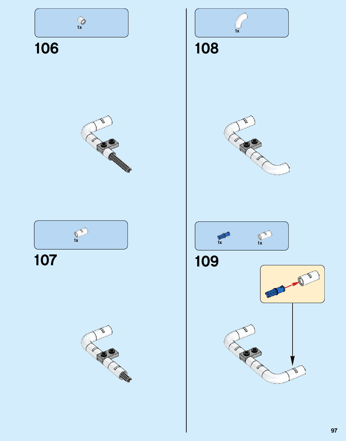 The assembly guide is prepared in a very understandable way for children and adult LEGO enthusiasts. A total of 216 picture galleries are shown, explaining the step-by-step construction stages for 1 different structures.