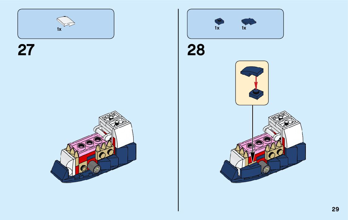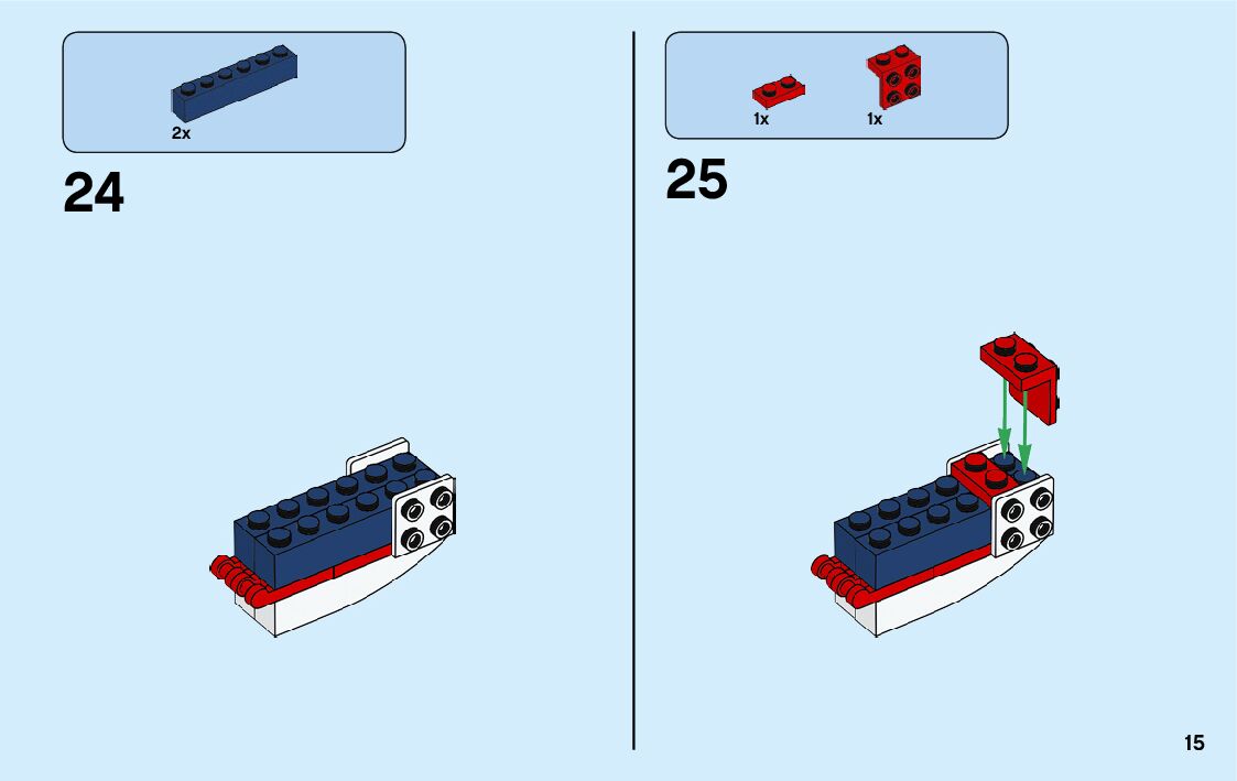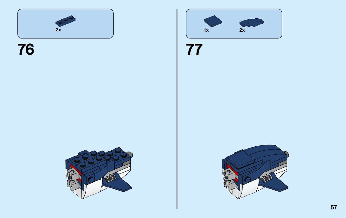 The assembly guide is prepared in a very understandable way for children and adult LEGO enthusiasts. A total of 176 picture galleries are shown, explaining the step-by-step construction stages for 4 different structures.