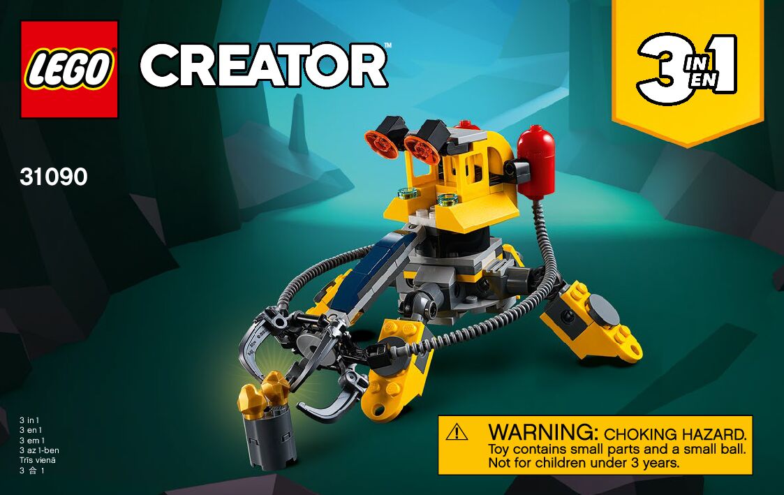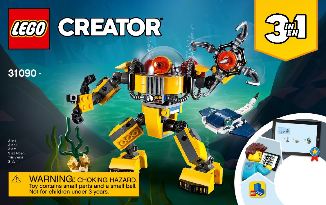 This page shares information about LEGO 31090 Underwater Robot manual, LEGO 31090 PDF instructions, LEGO 31090 Underwater Robot building guide online, How to build 31090 Underwater Robot LEGO.