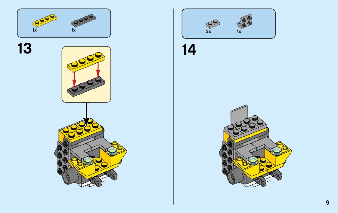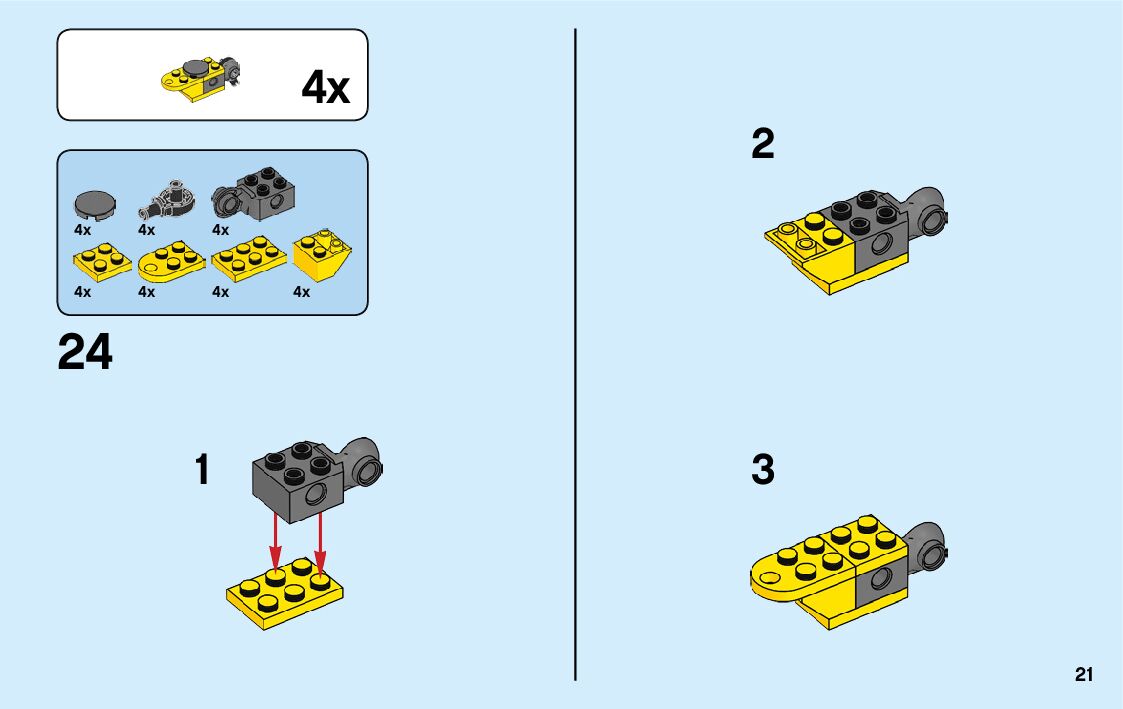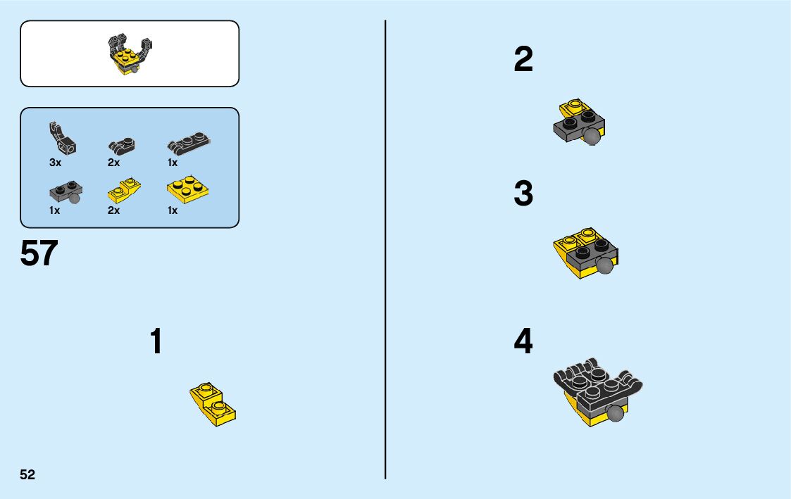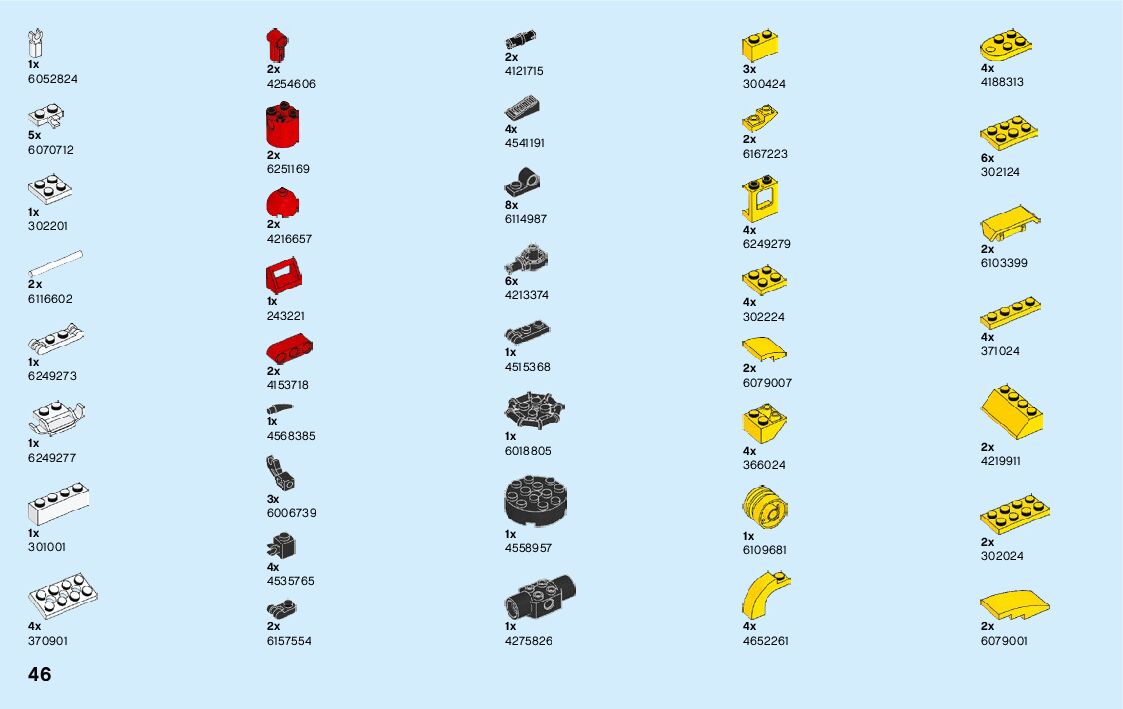 The assembly guide is prepared in a very understandable way for children and adult LEGO enthusiasts. A total of 140 picture galleries are shown, explaining the step-by-step construction stages for 3 different structures.