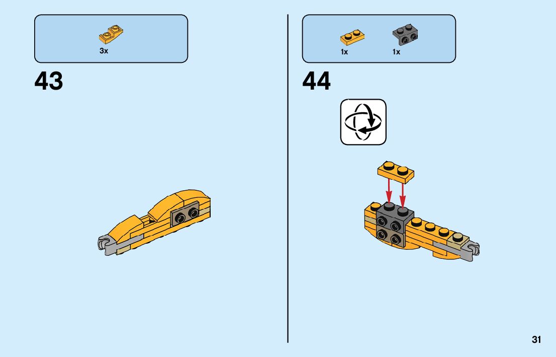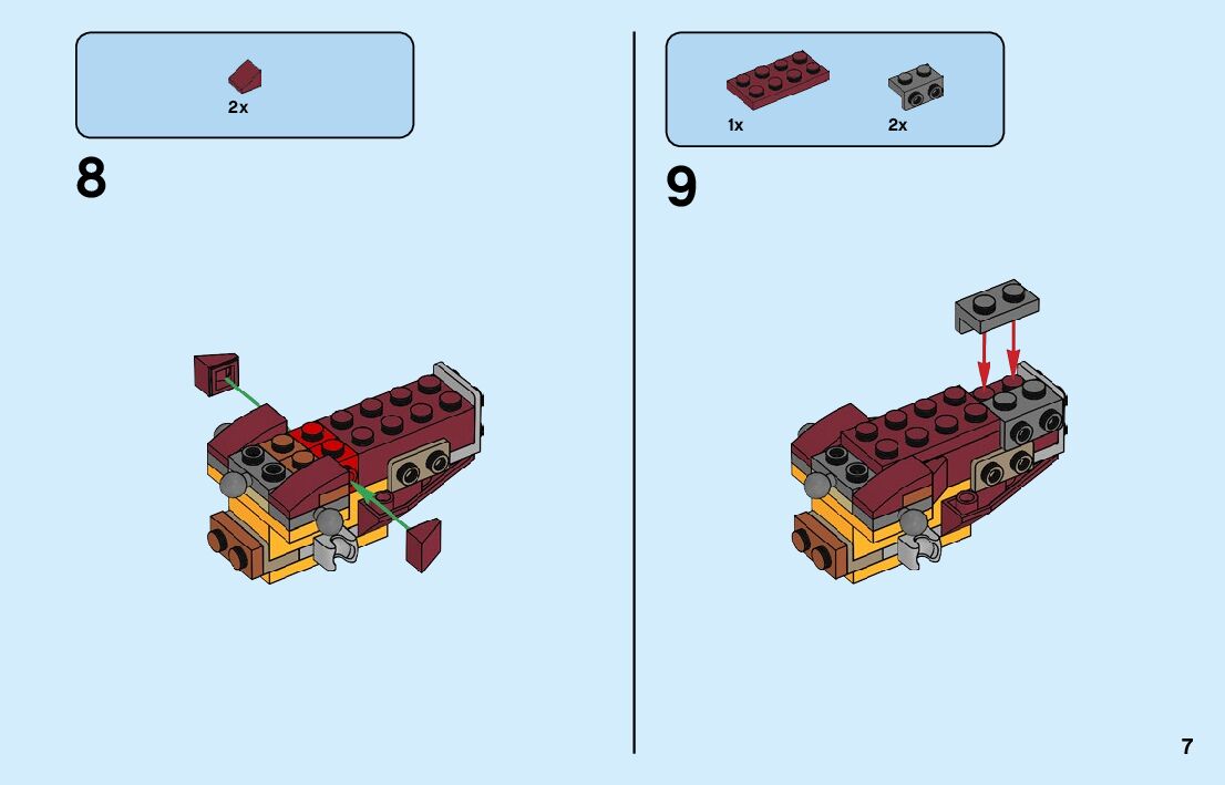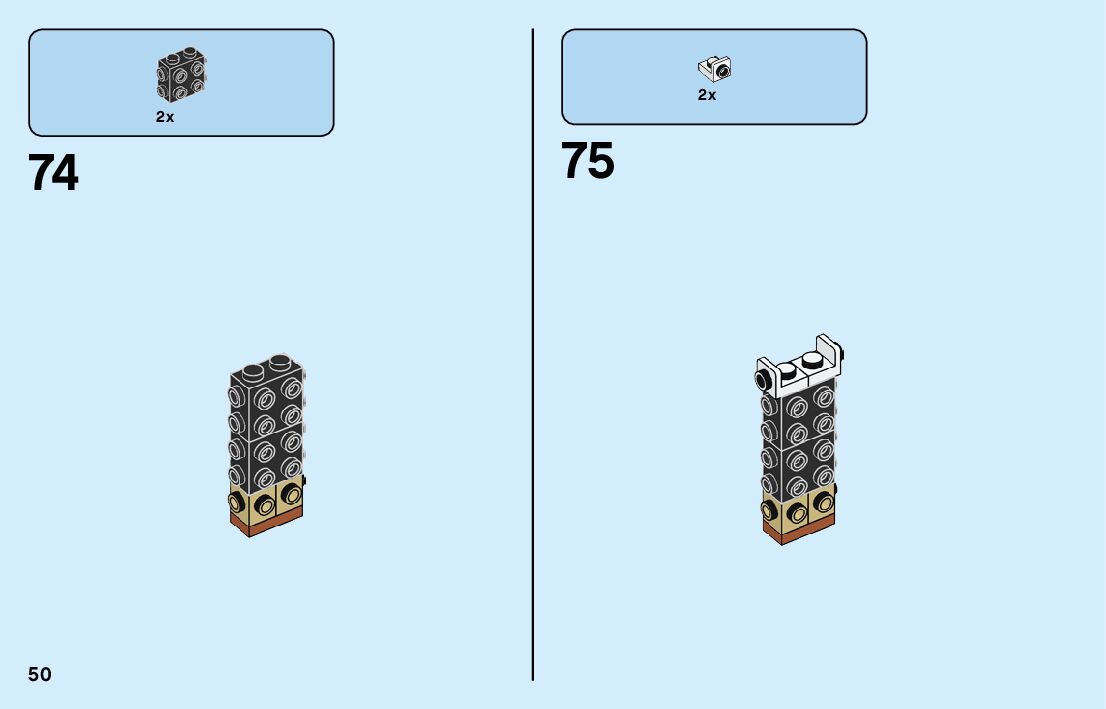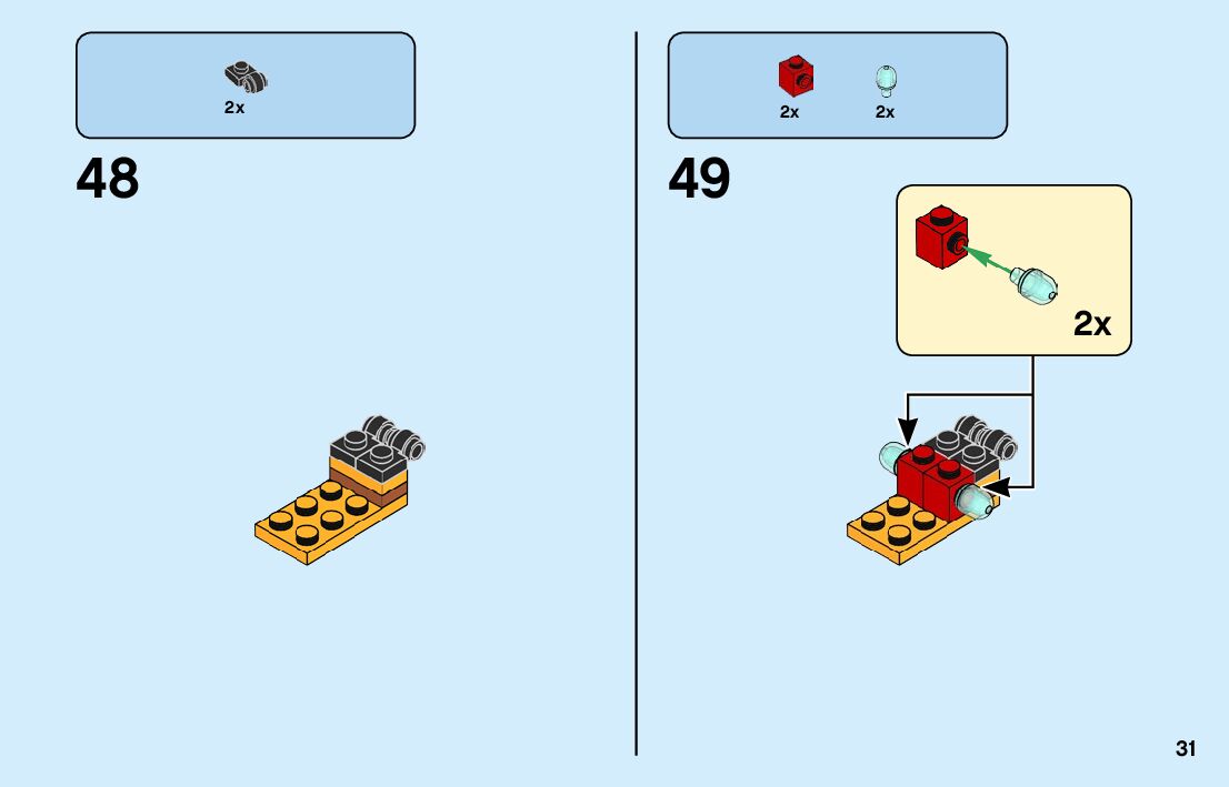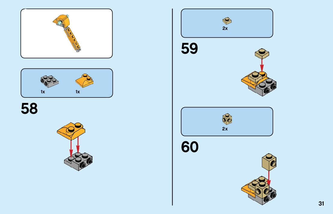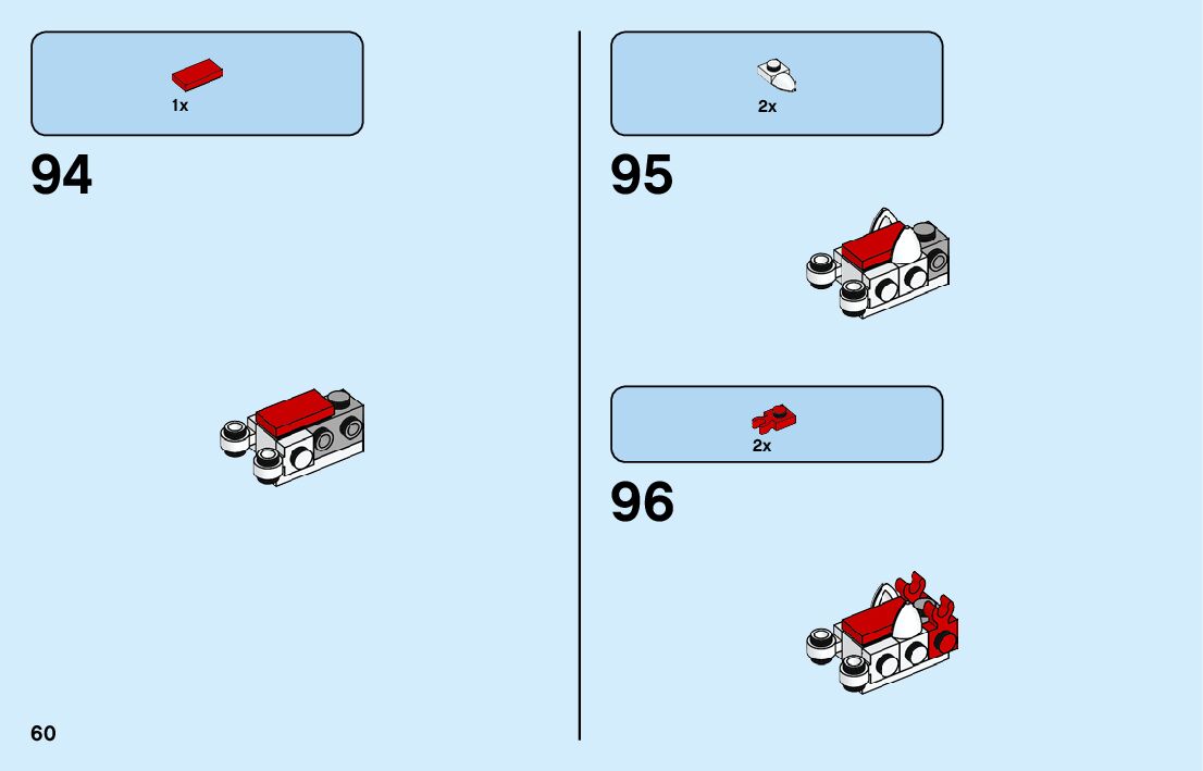 The assembly guide is prepared in a very understandable way for children and adult LEGO enthusiasts. A total of 148 picture galleries are shown, explaining the step-by-step construction stages for 3 different structures.