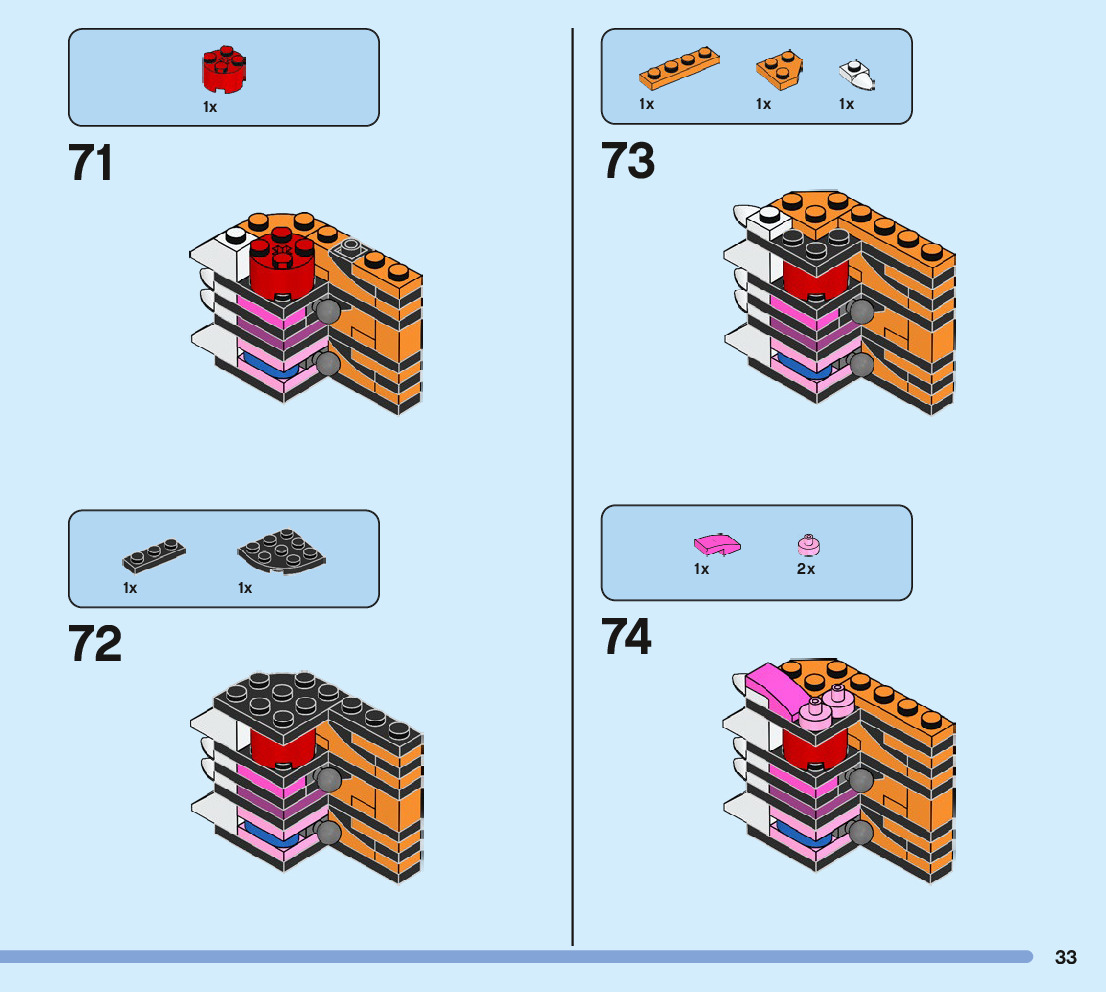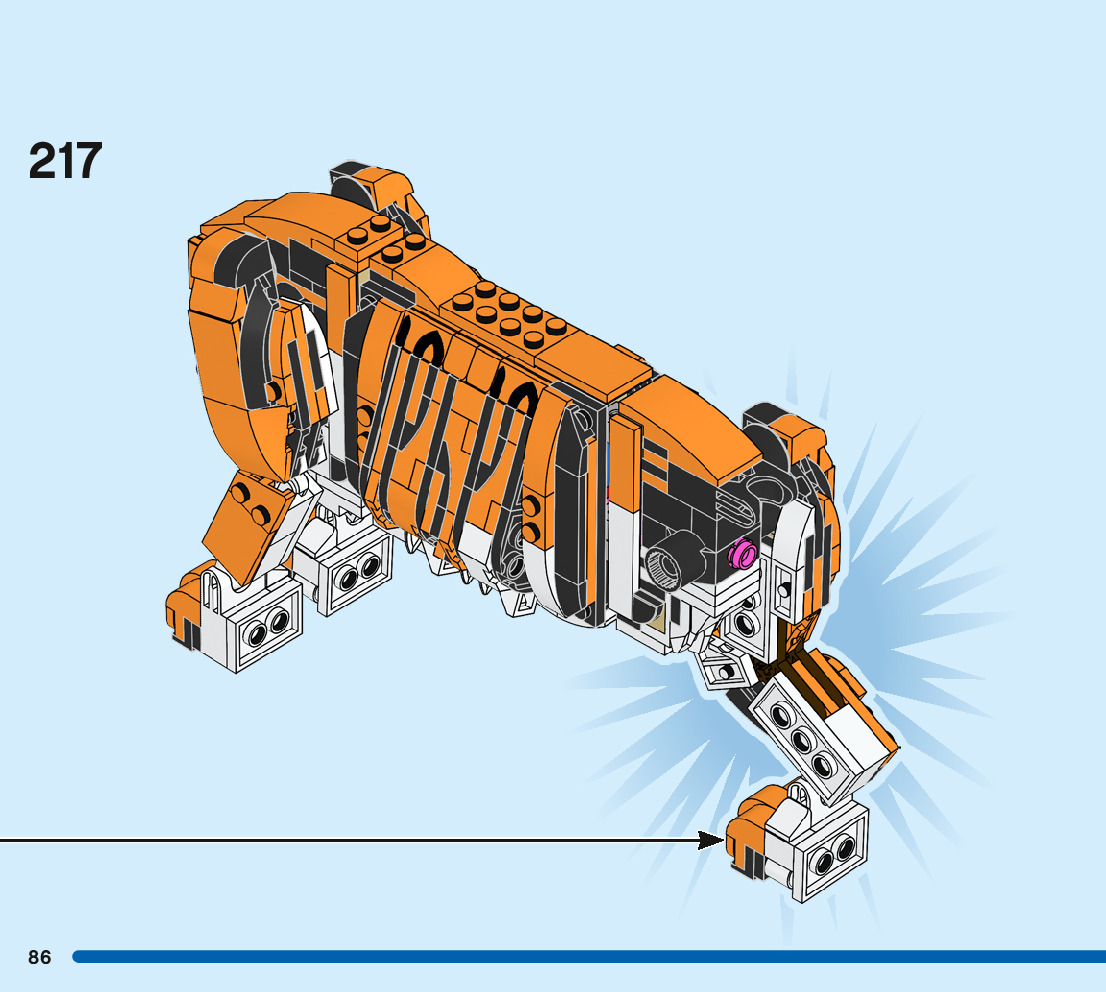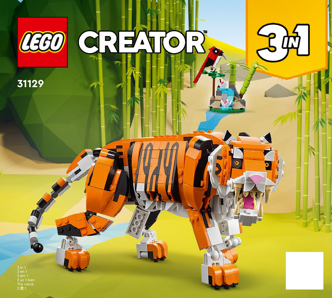 This page shares information about LEGO 31129 Majestic Tiger manual, LEGO 31129 PDF instructions, LEGO 31129 Majestic Tiger building guide online, How to build 31129 Majestic Tiger LEGO.