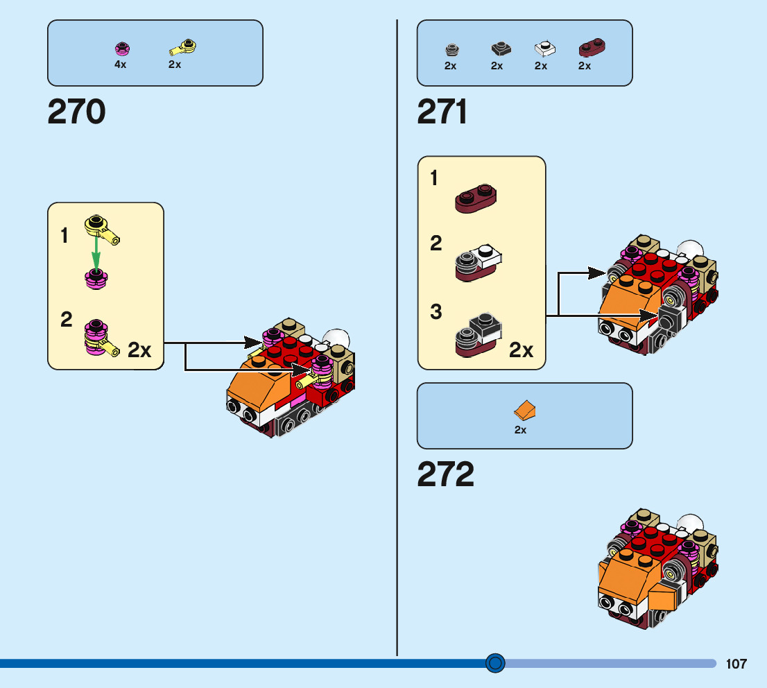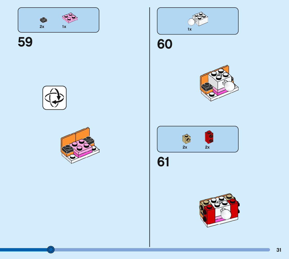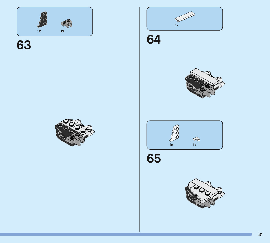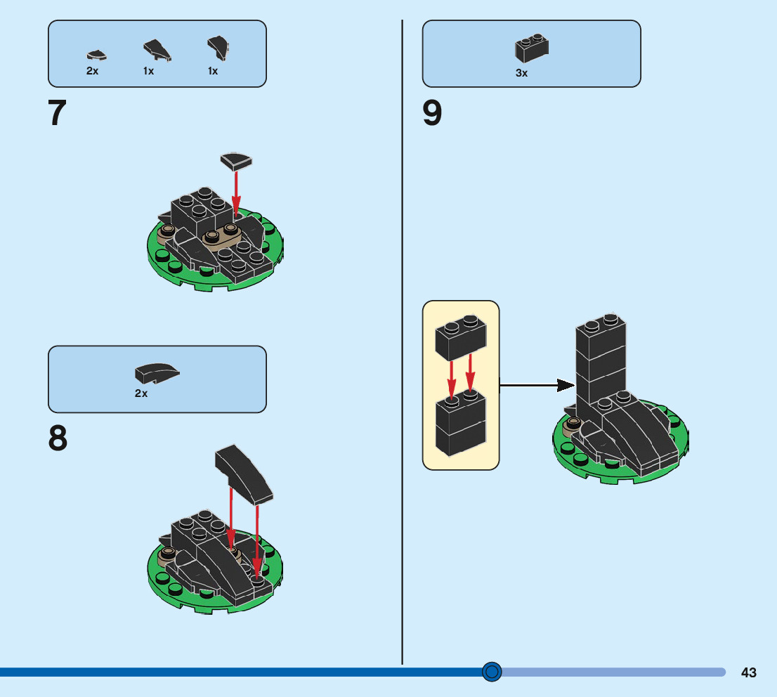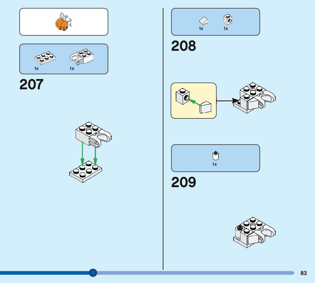 The assembly guide is prepared in a very understandable way for children and adult LEGO enthusiasts. A total of 244 picture galleries are shown, explaining the step-by-step construction stages for 3 different structures.
