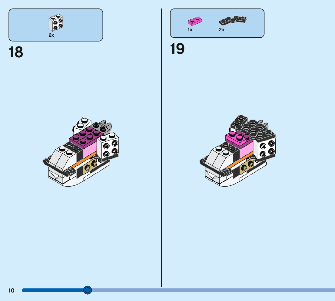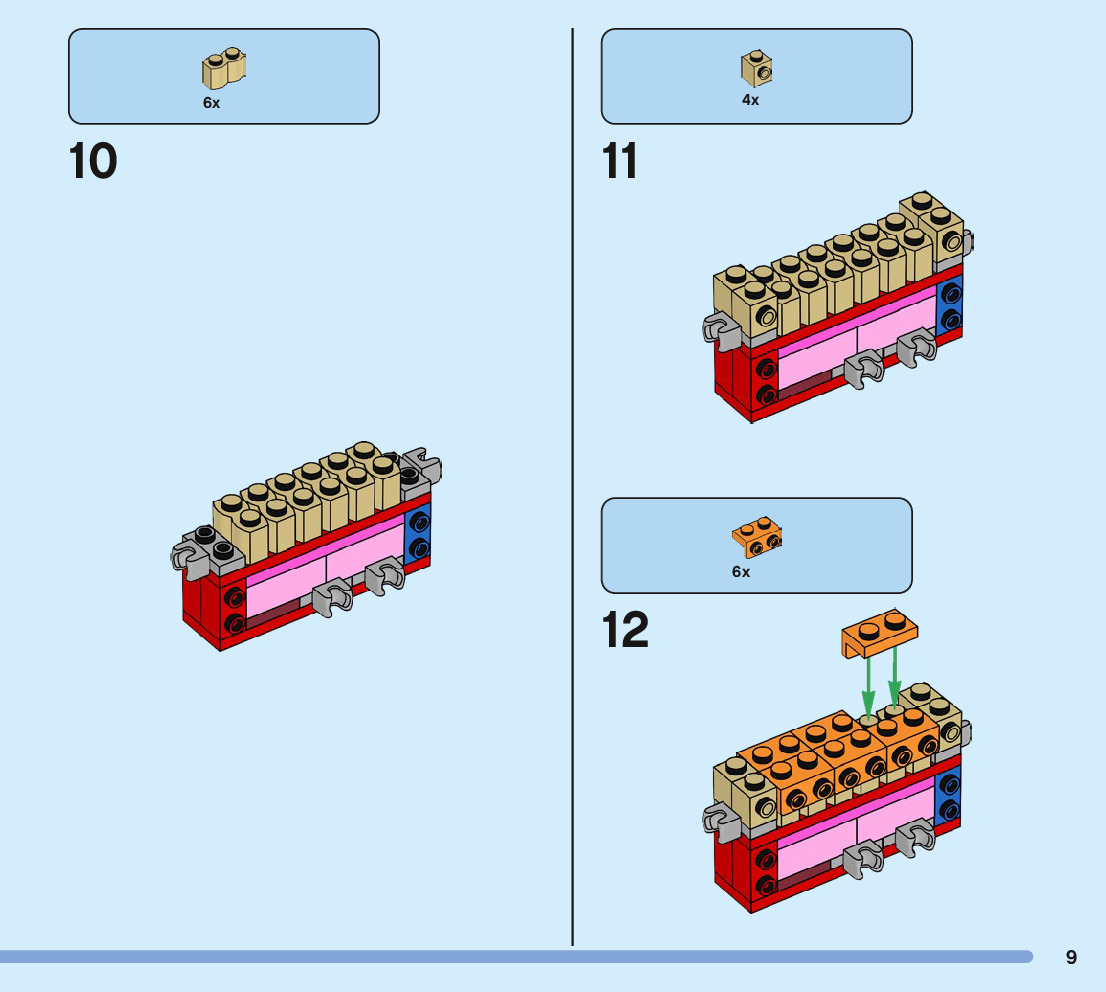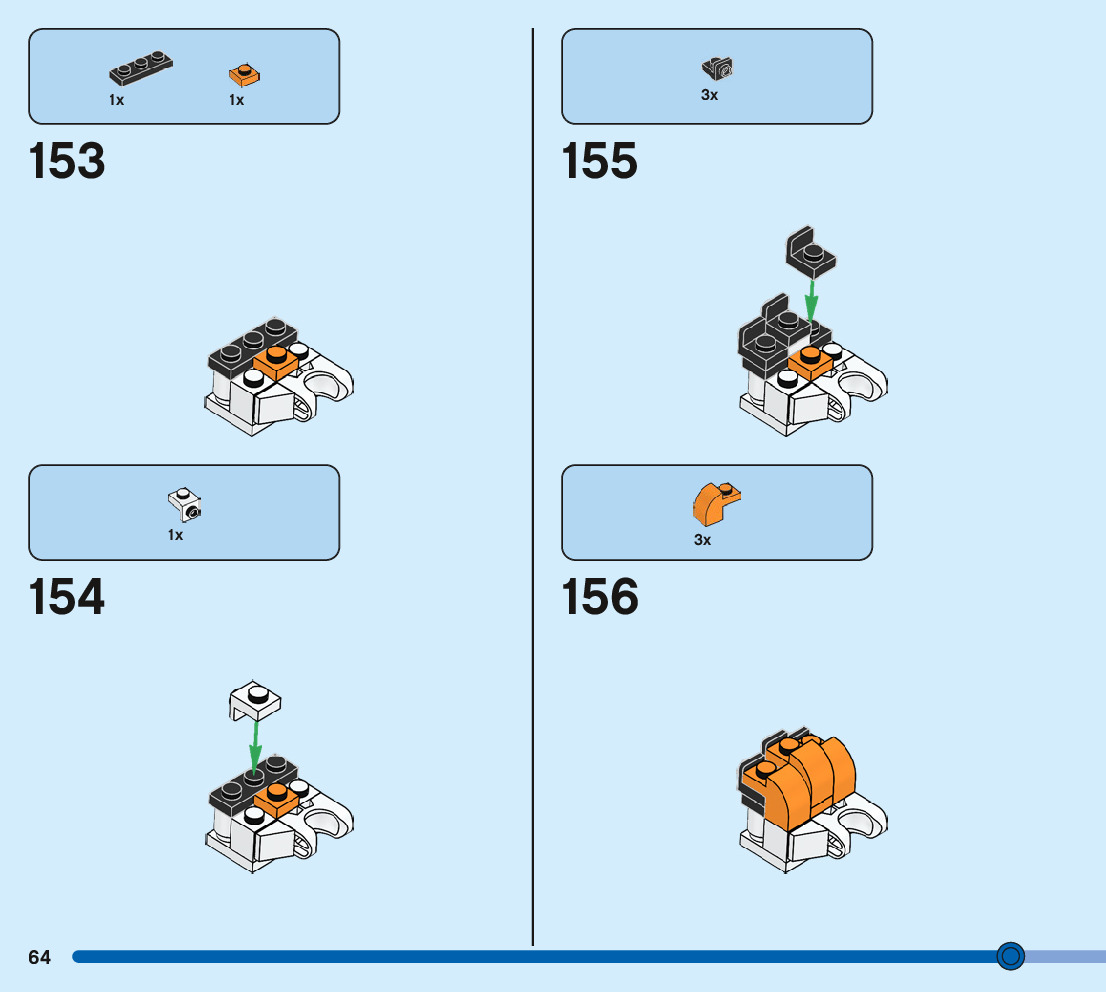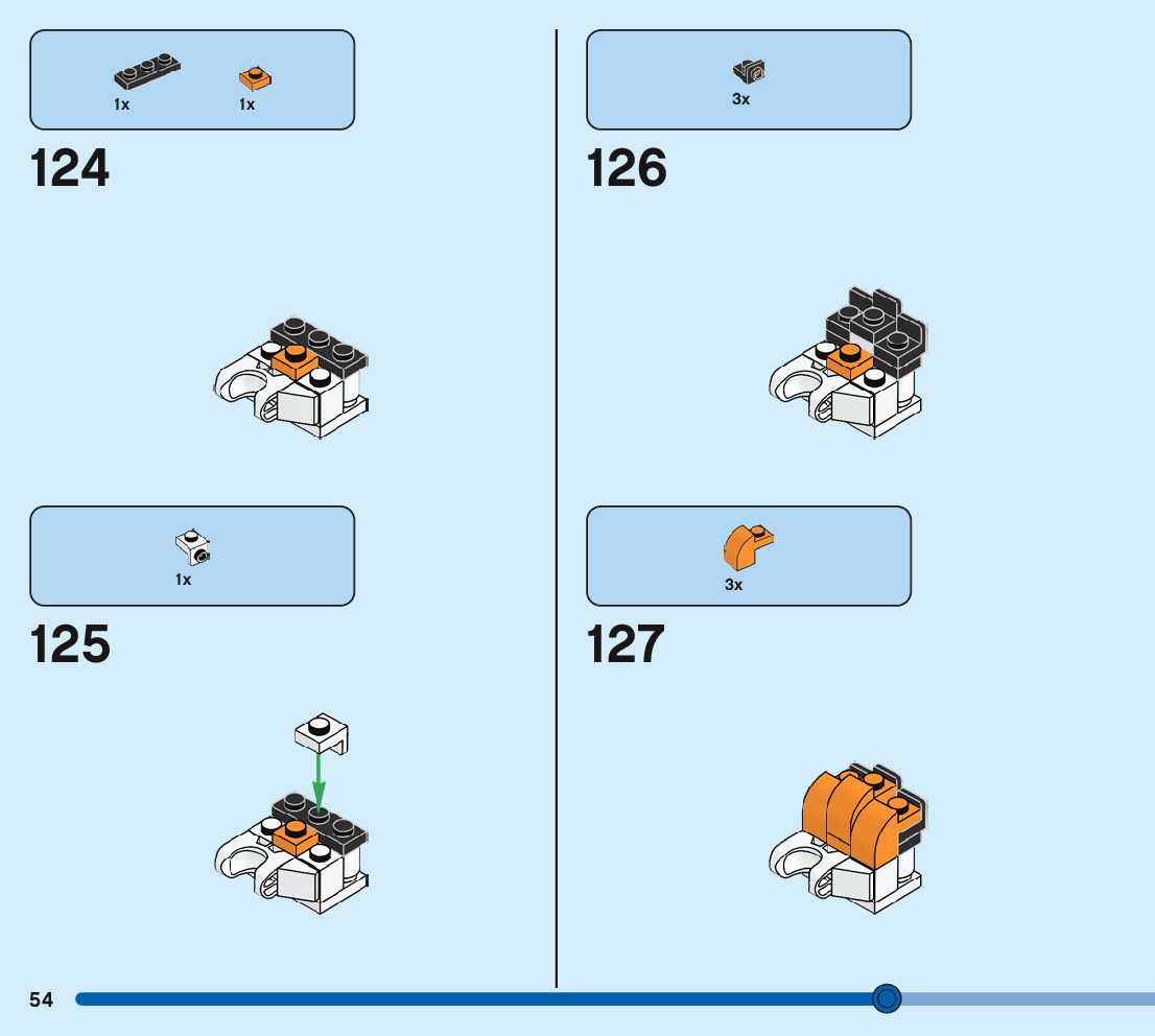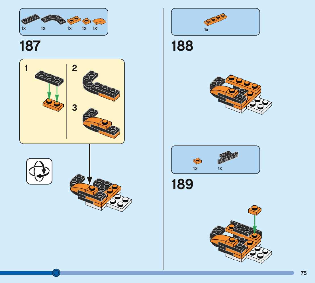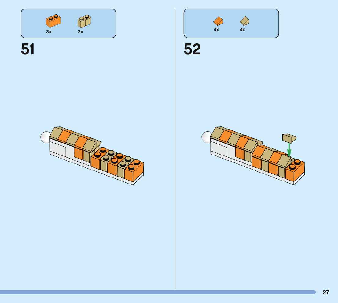 The assembly guide is prepared in a very understandable way for children and adult LEGO enthusiasts. A total of 244 picture galleries are shown, explaining the step-by-step construction stages for 3 different structures.