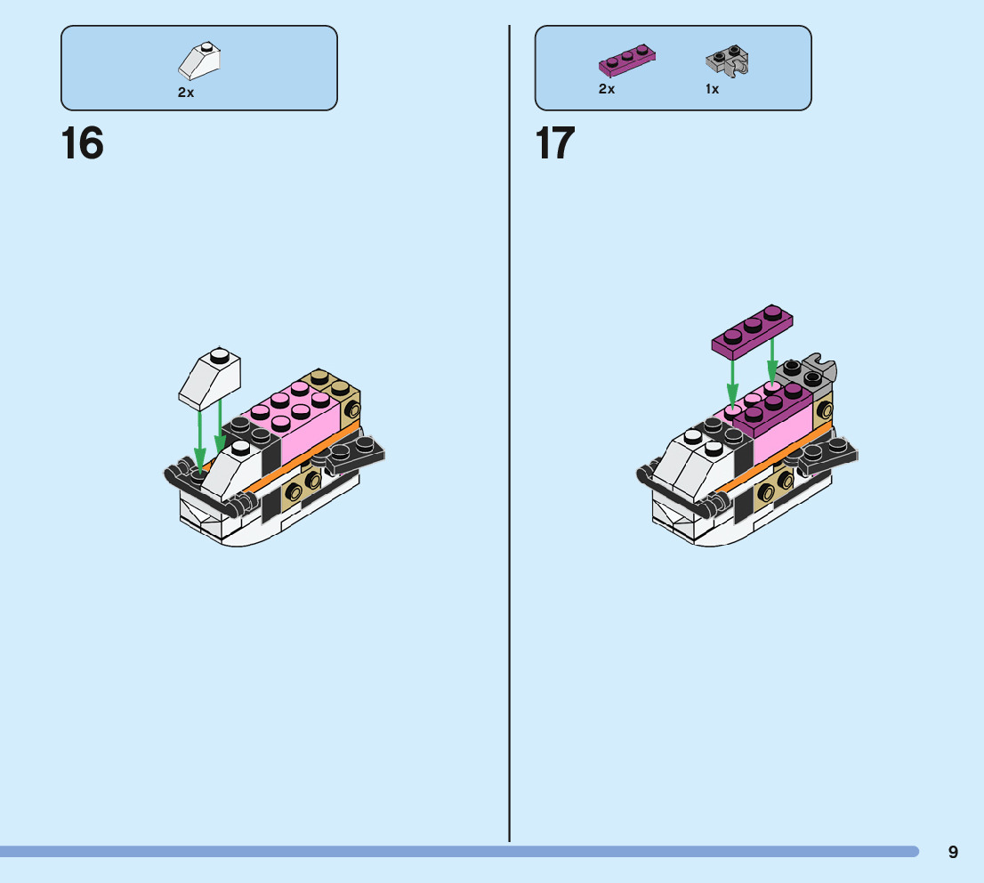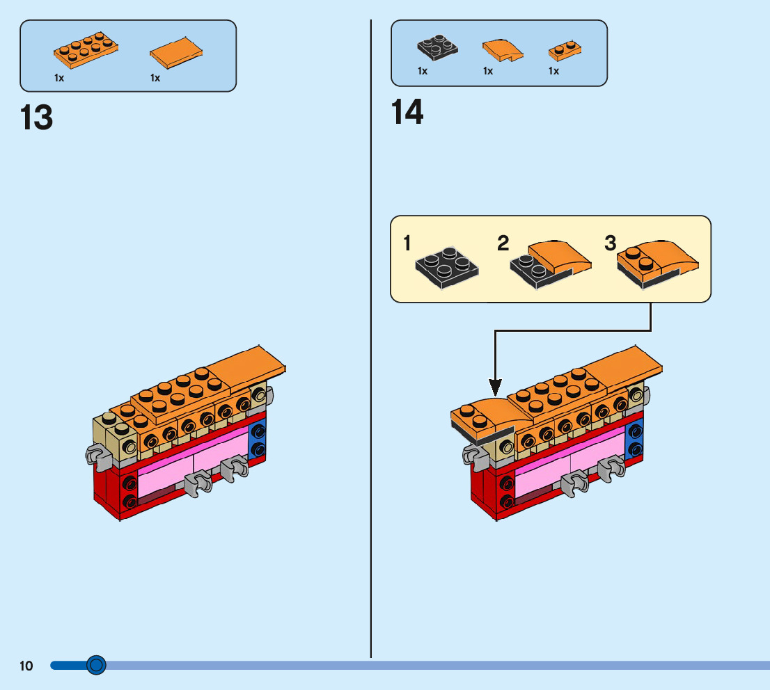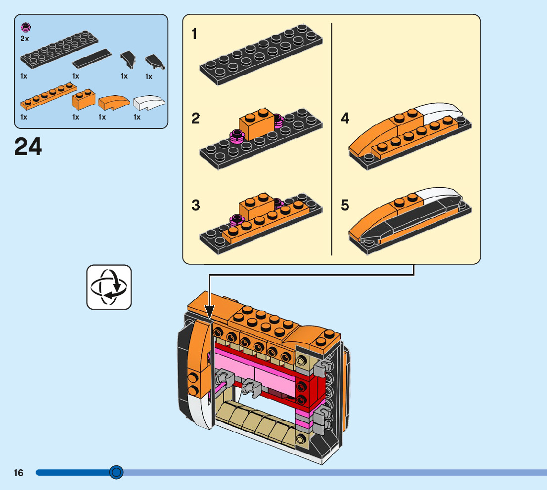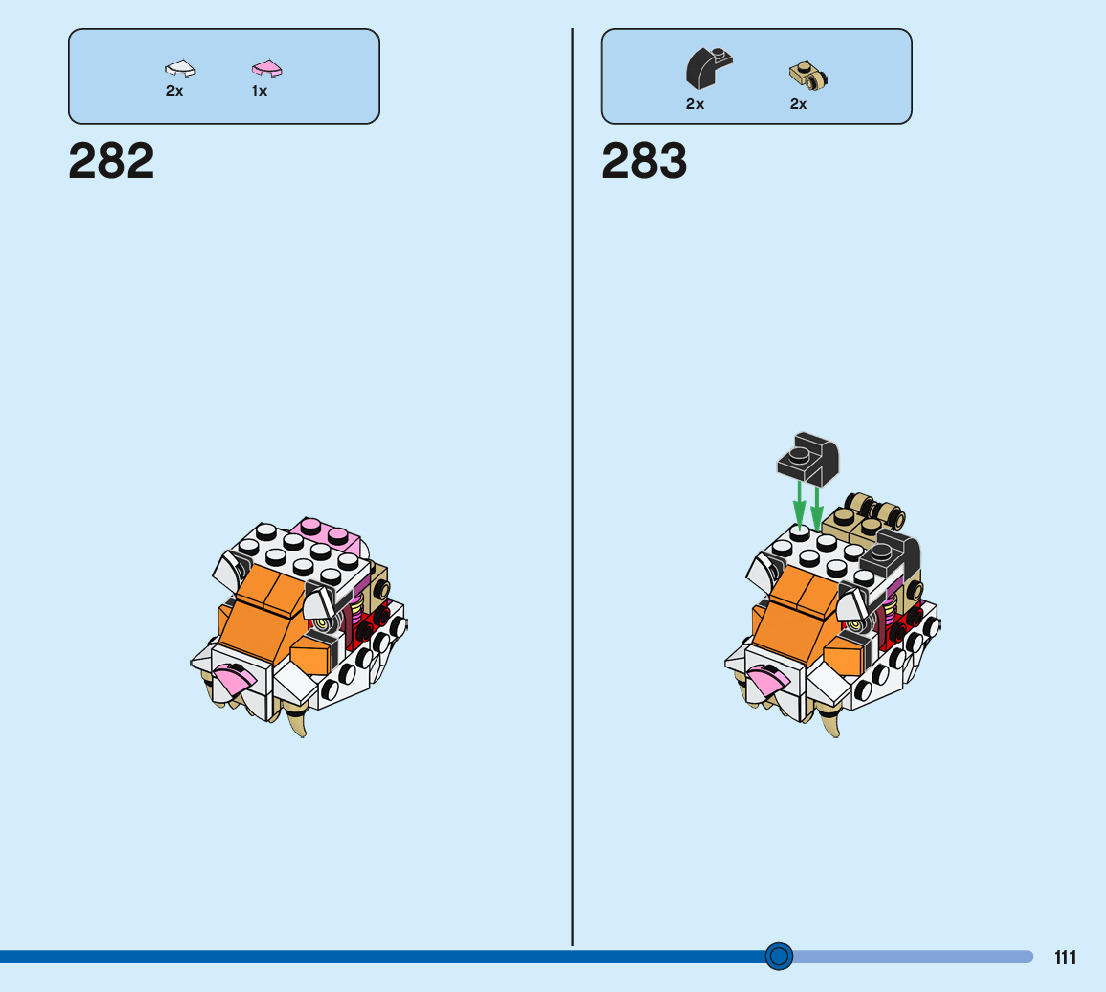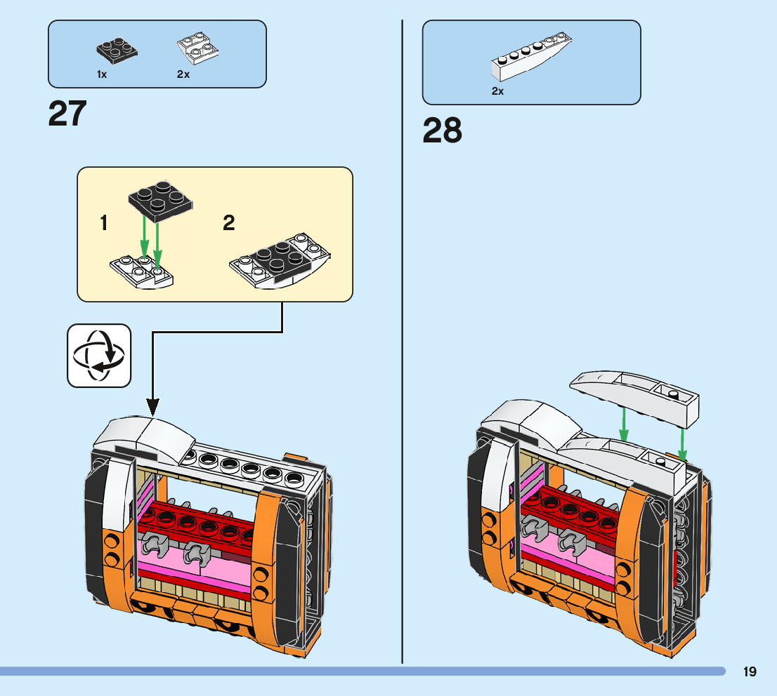 The assembly guide is prepared in a very understandable way for children and adult LEGO enthusiasts. A total of 244 picture galleries are shown, explaining the step-by-step construction stages for 3 different structures.
