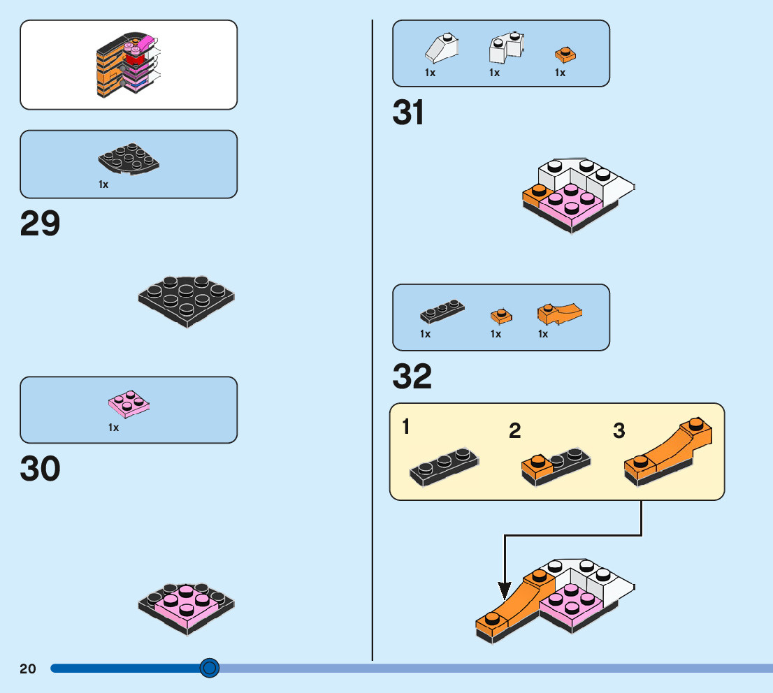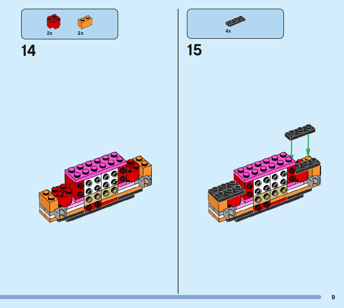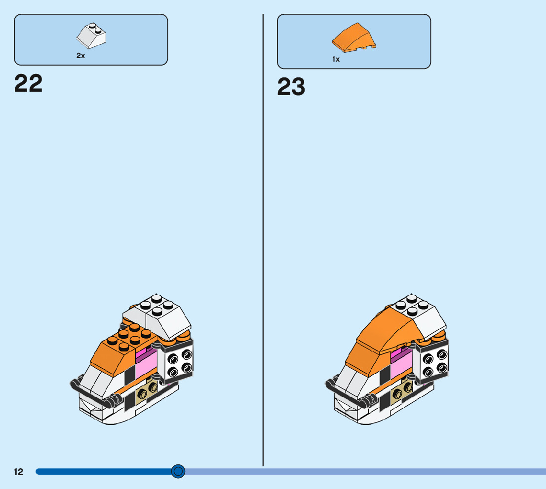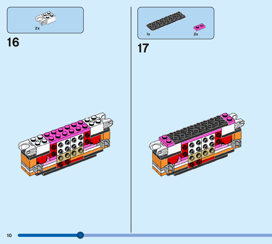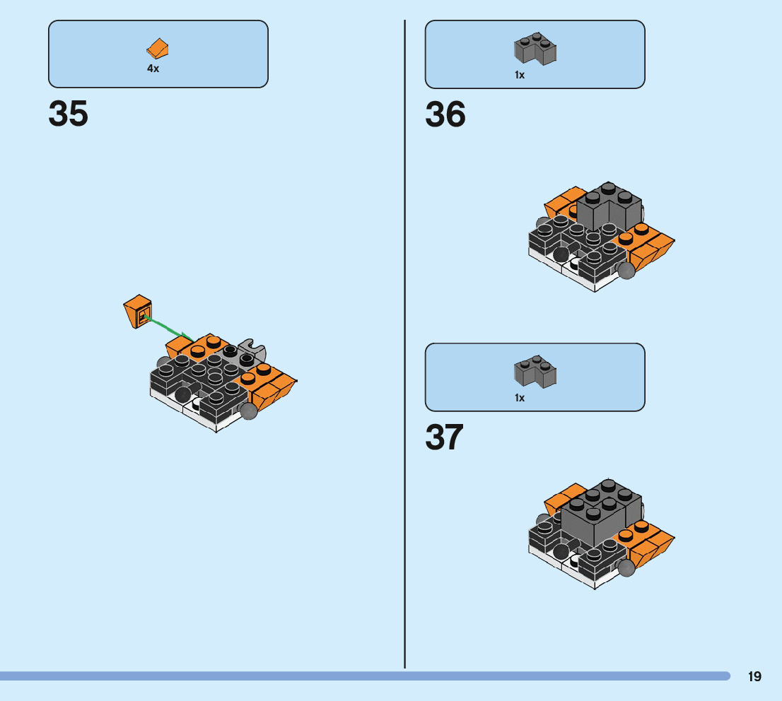 The assembly guide is prepared in a very understandable way for children and adult LEGO enthusiasts. A total of 244 picture galleries are shown, explaining the step-by-step construction stages for 3 different structures.