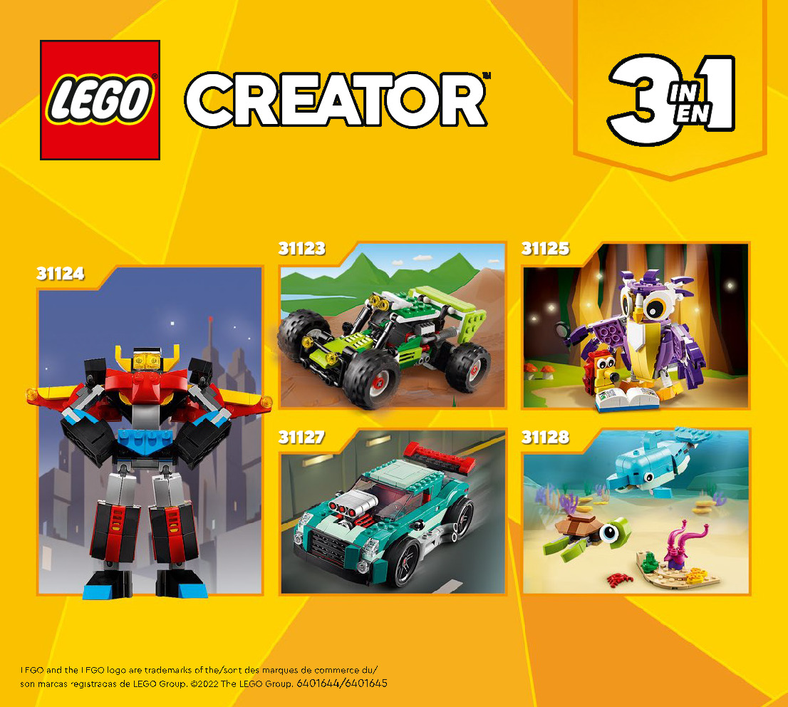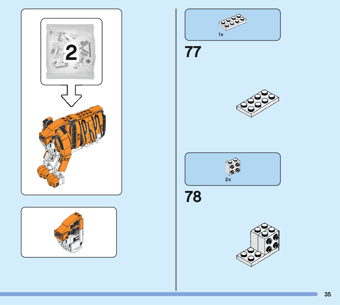 On this page you can find the original construction manual for the LEGO 31129 set. With the assembly manual you can easily learn how to build the 31129 Majestic Tiger step by step. The set was released in 2022.