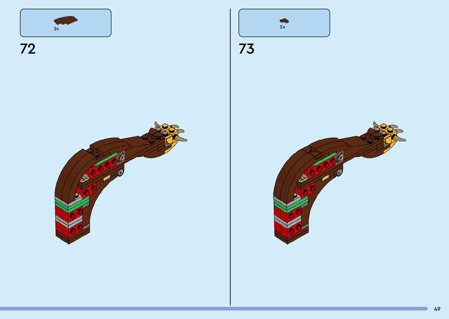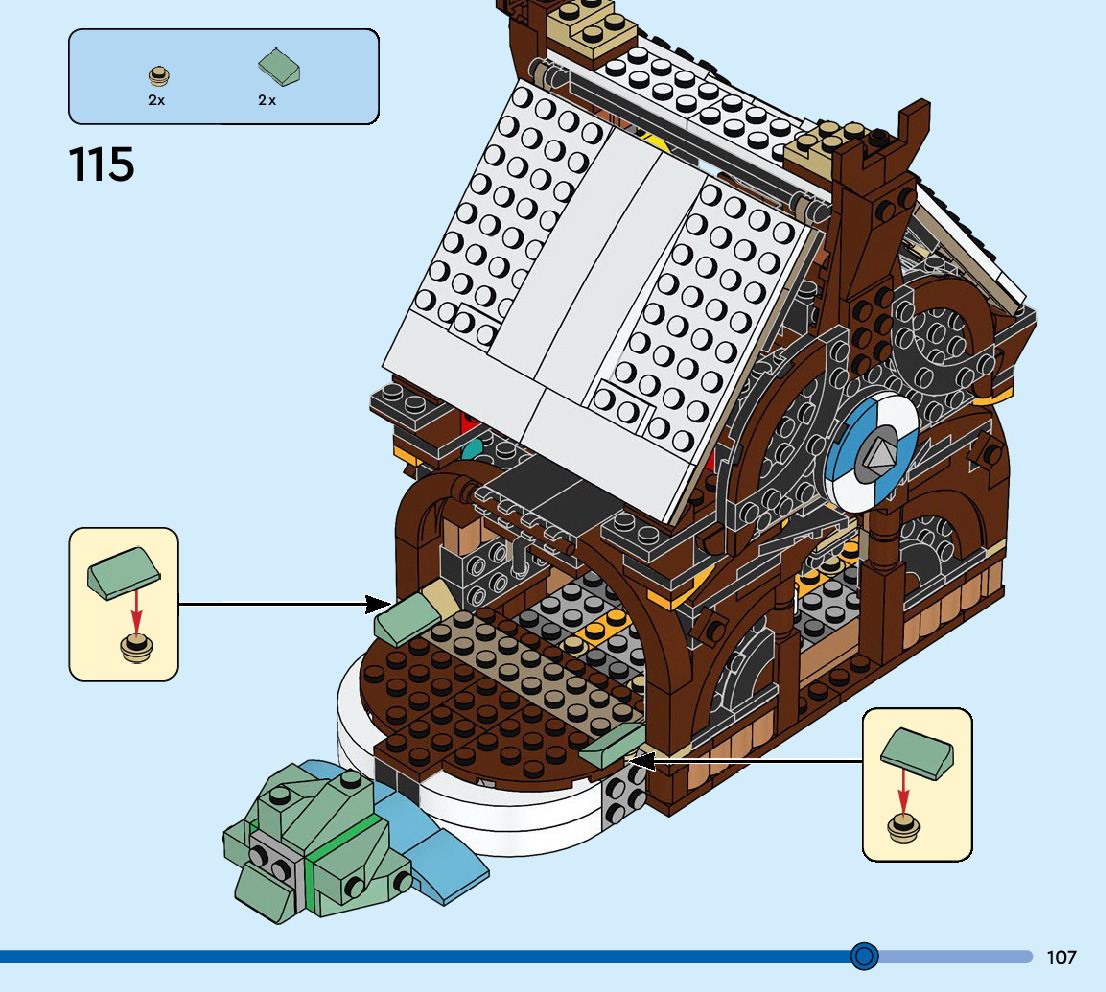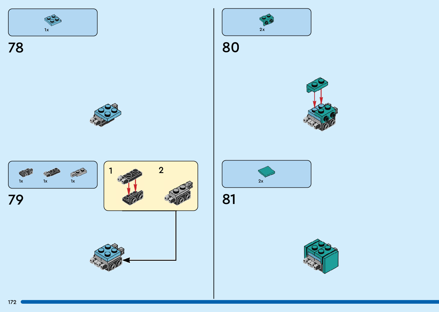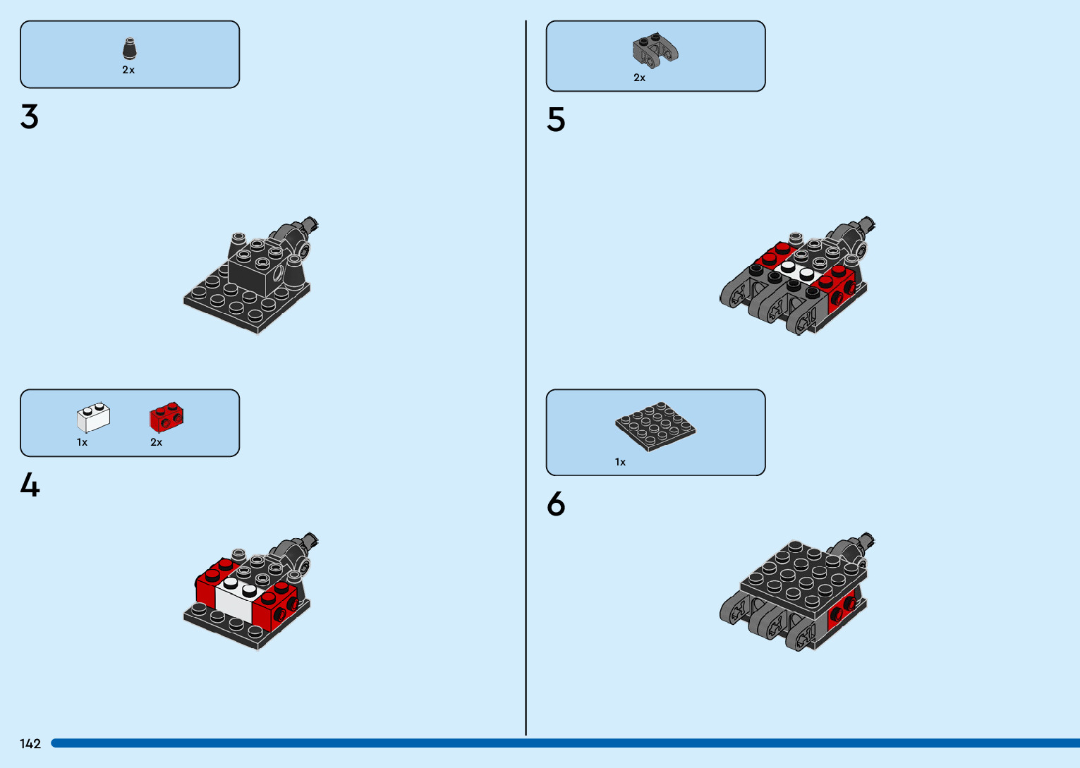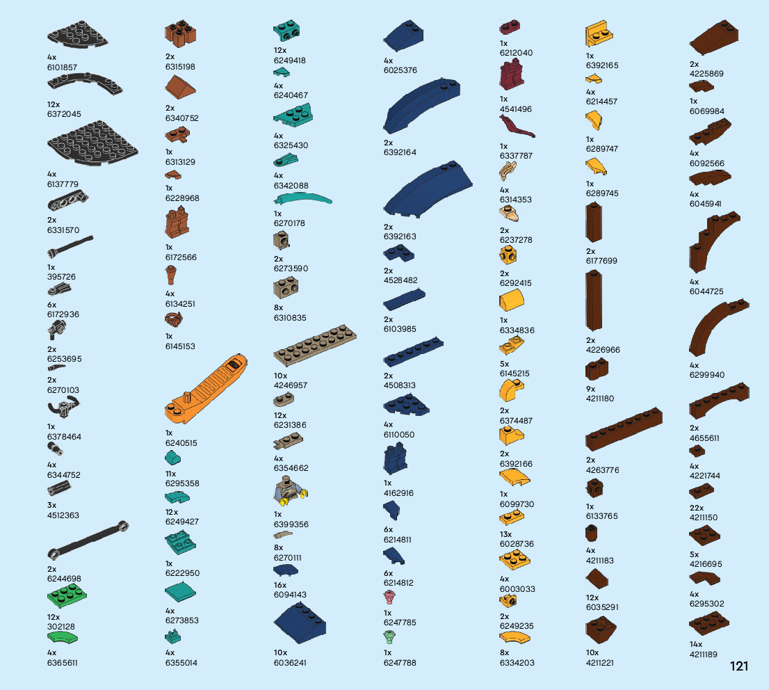 The assembly guide is prepared in a very understandable way for children and adult LEGO enthusiasts. A total of 388 picture galleries are shown, explaining the step-by-step construction stages for 3 different structures.