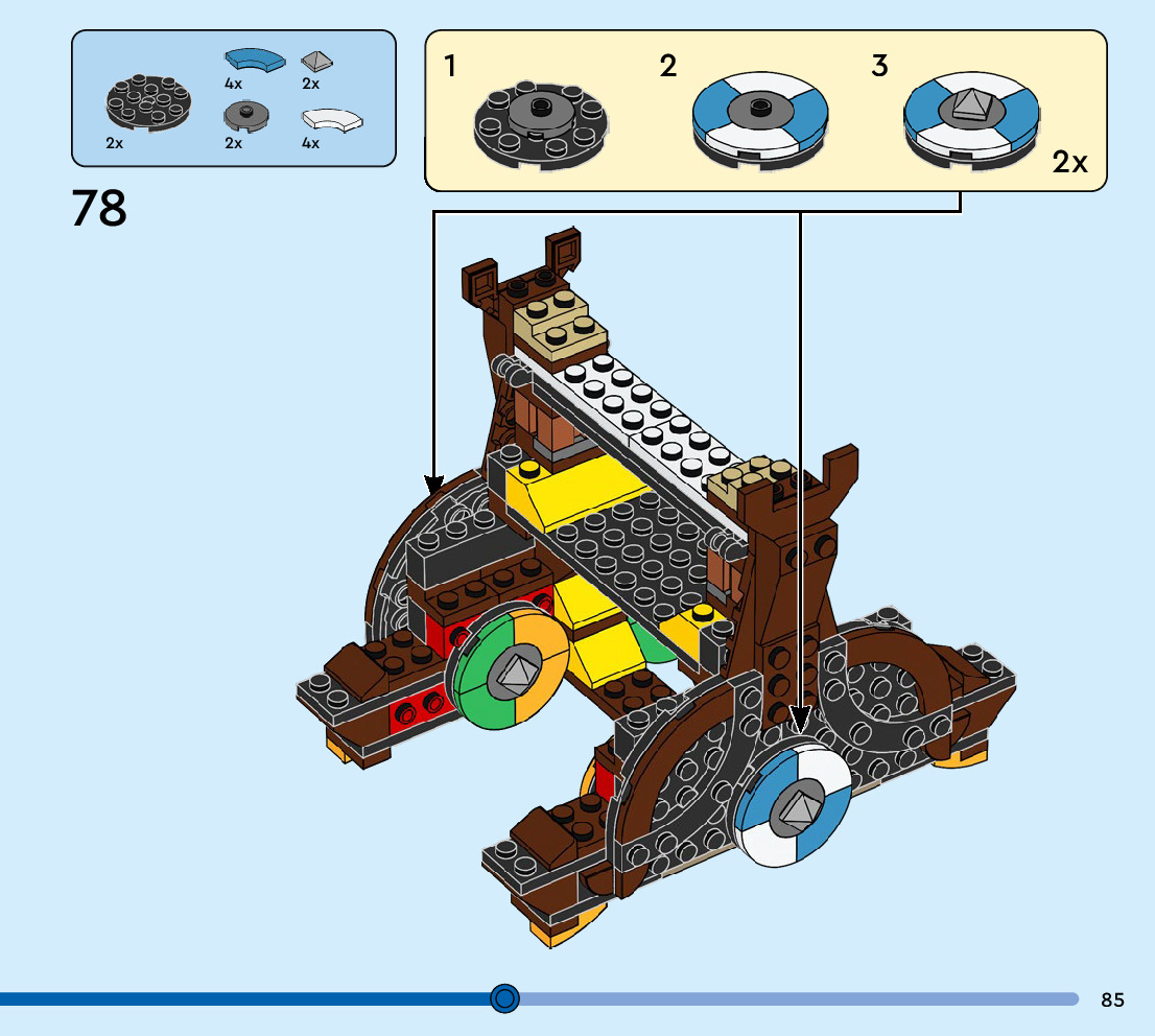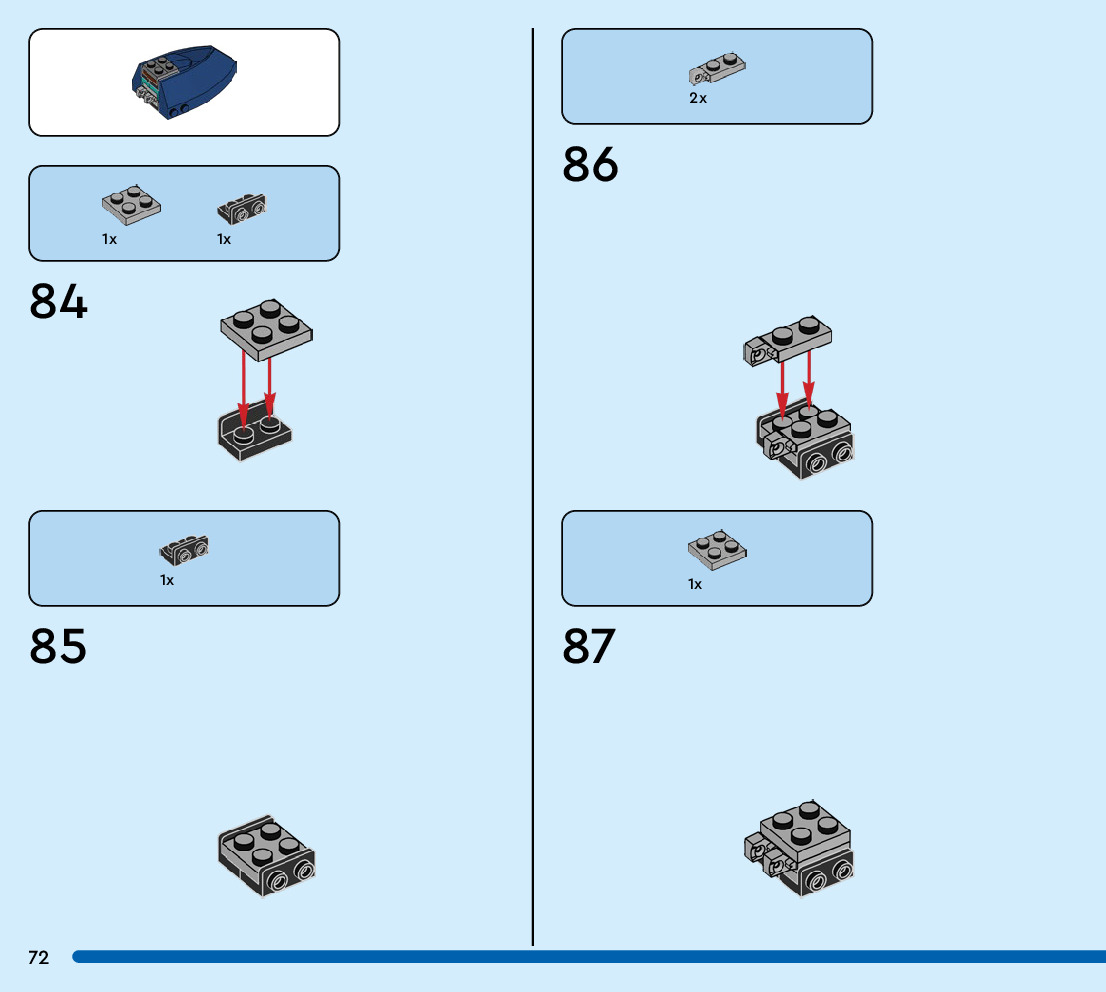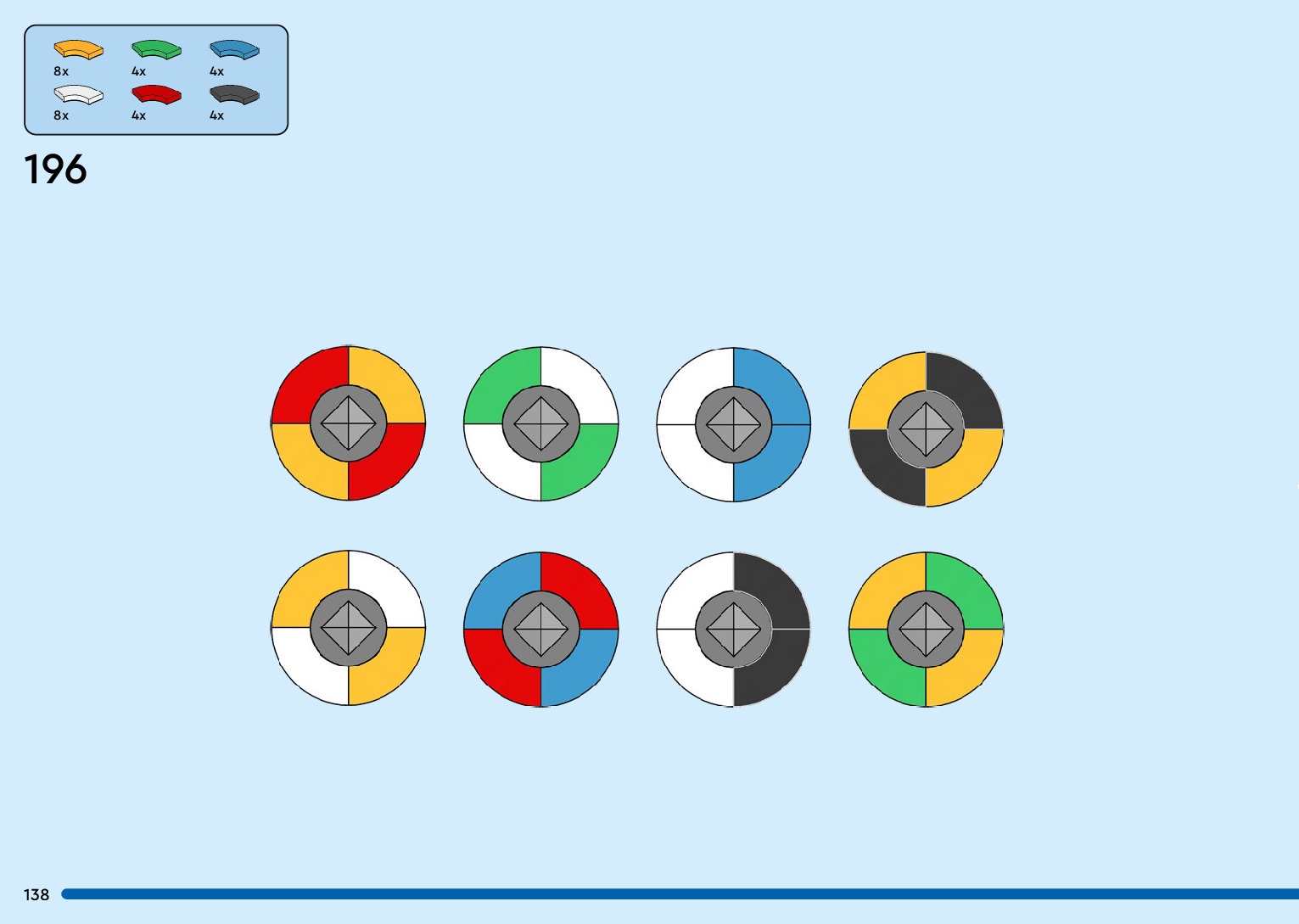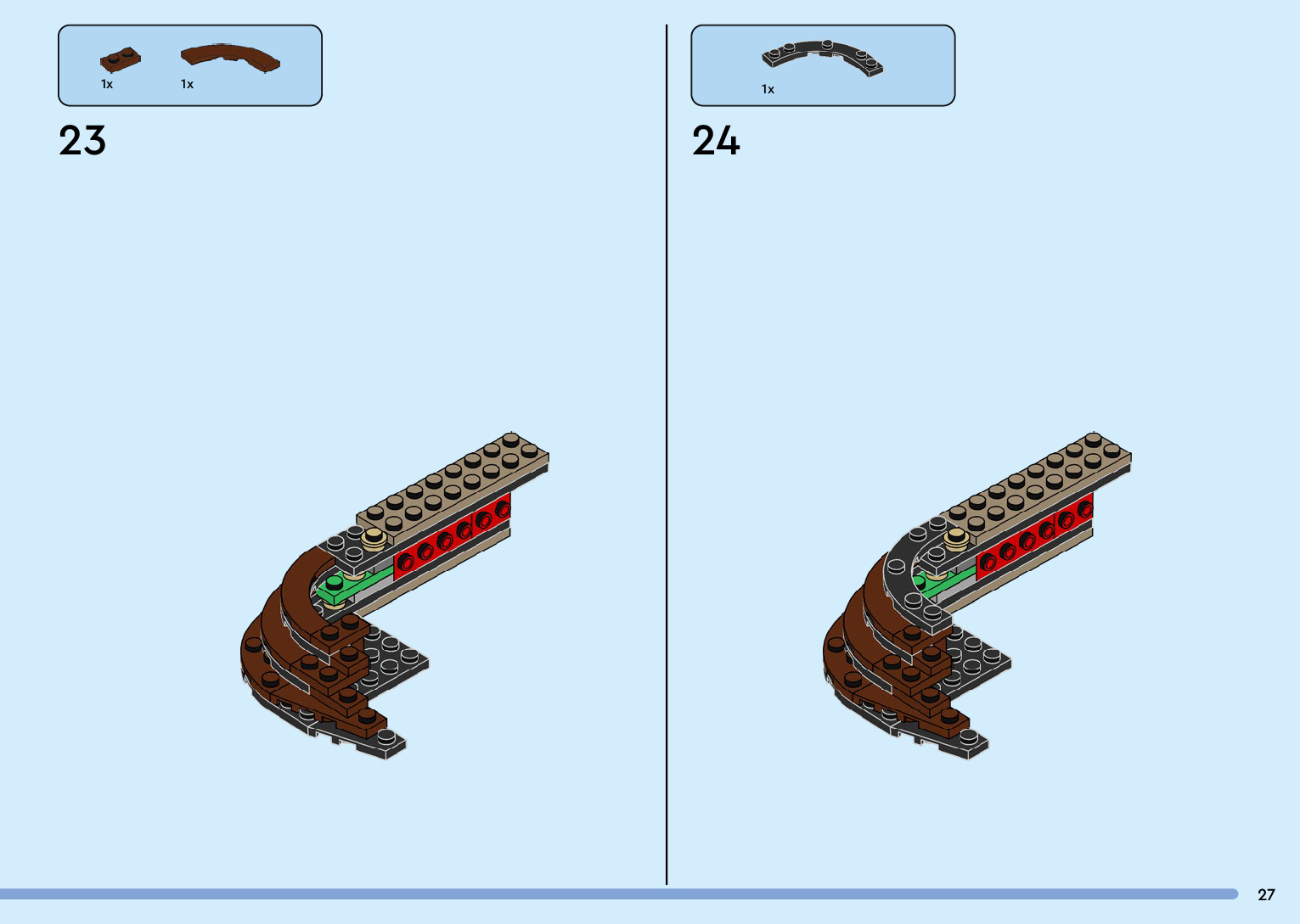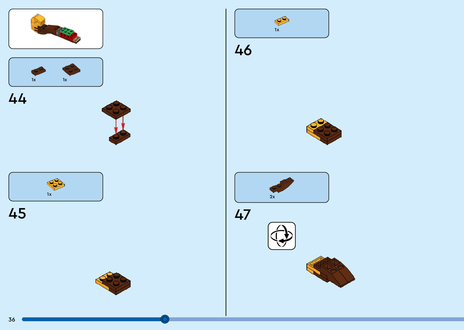 The assembly guide is prepared in a very understandable way for children and adult LEGO enthusiasts. A total of 388 picture galleries are shown, explaining the step-by-step construction stages for 3 different structures.
